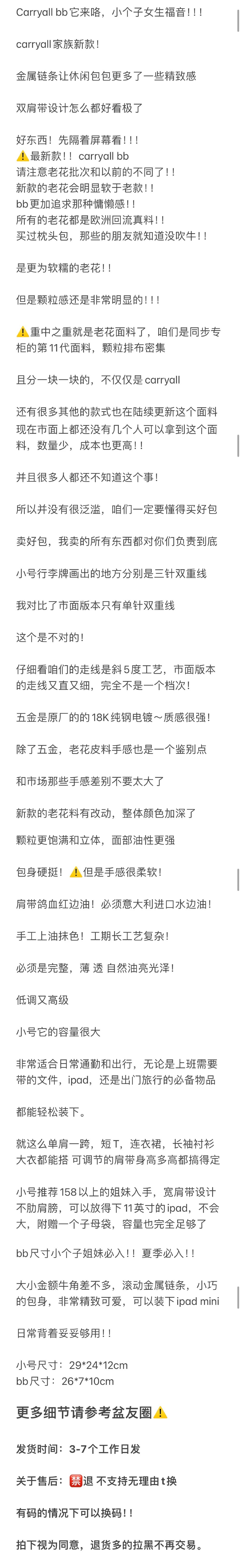 重磅渠道 carryall系列 小号/bb老花托特包 腋下包购物袋多功能包包