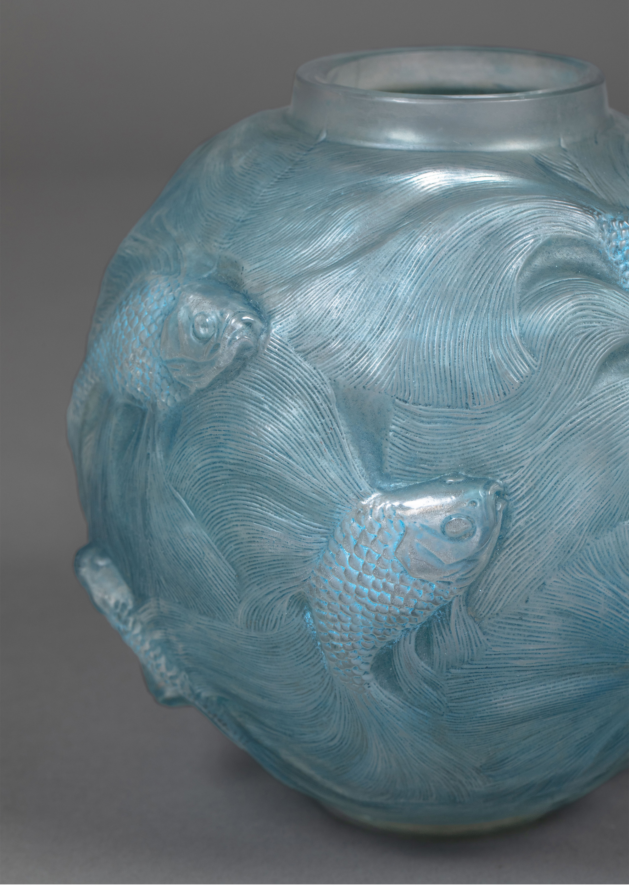 1924年法国水晶工坊莱俪LALIQUE设计出品「Formose锦鲤」主题蓝色水晶花瓶