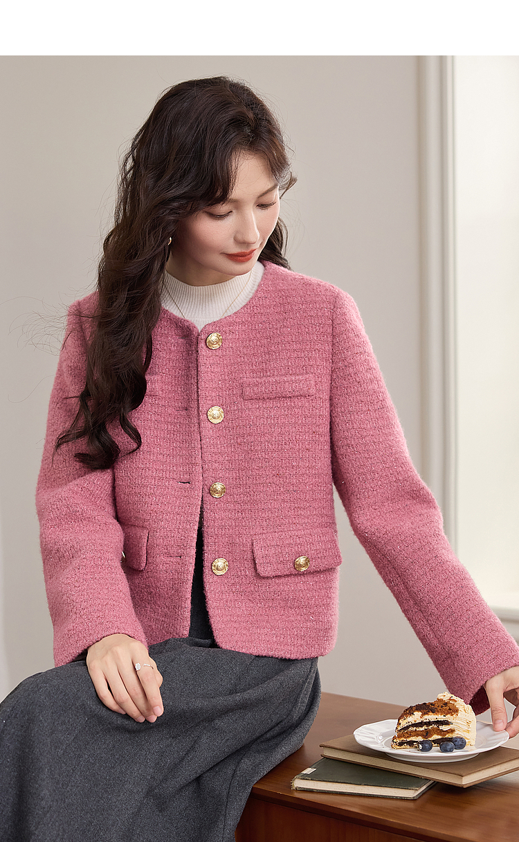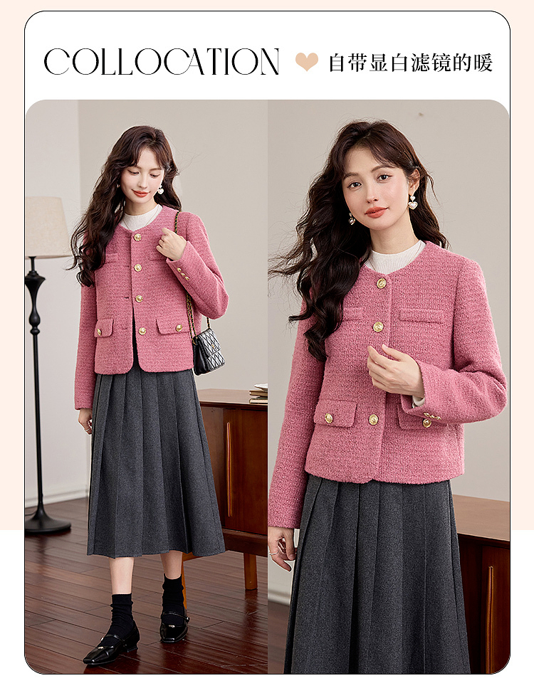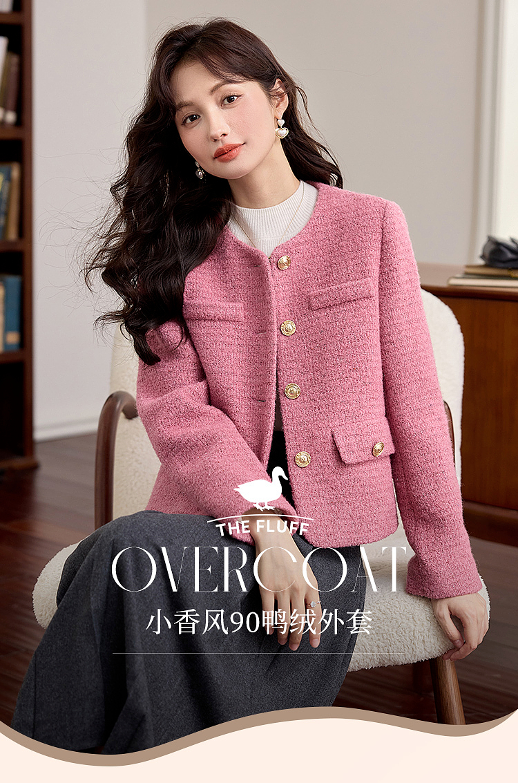 【年货节】熙世界小香风90白鸭绒外套小个子2025冬季新款粗花呢短款羽绒服