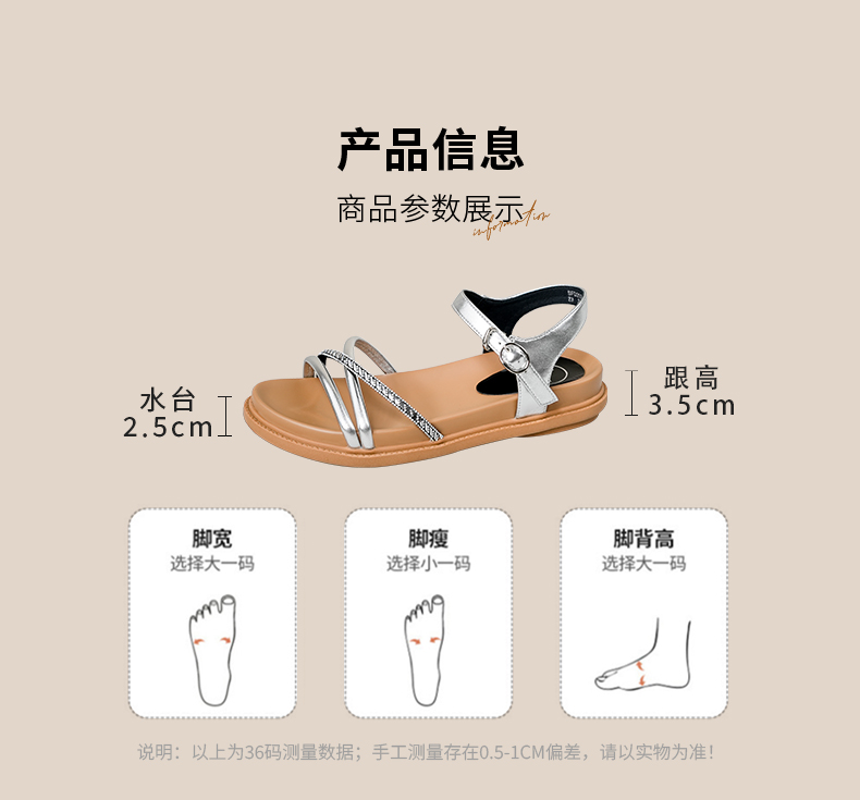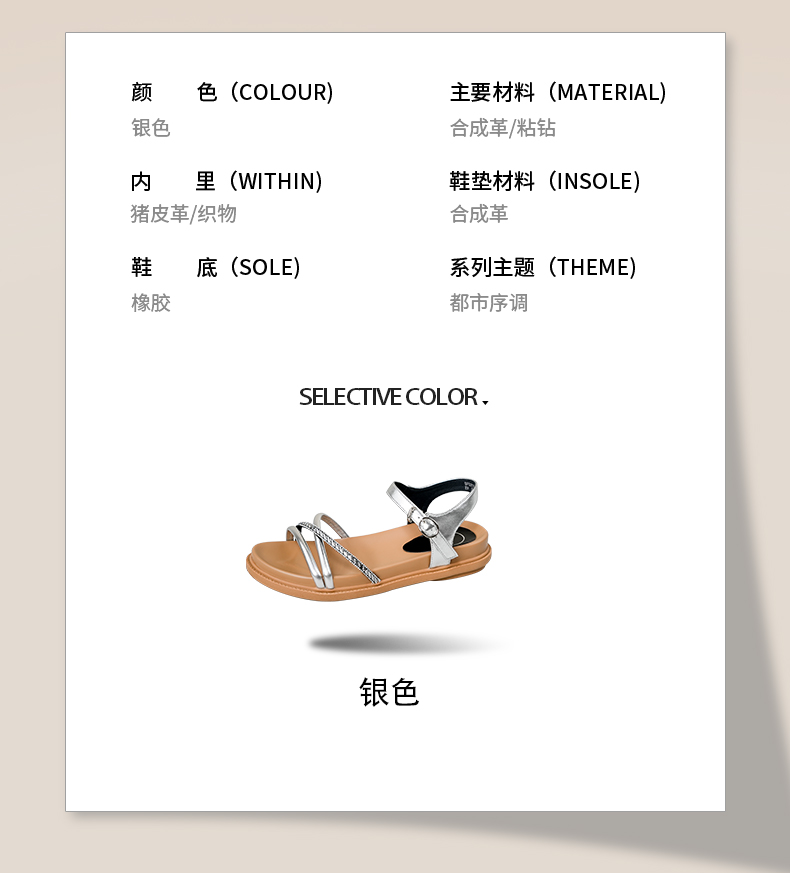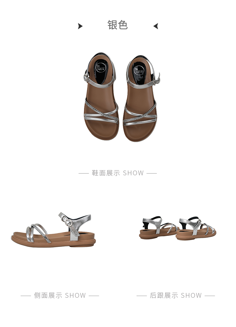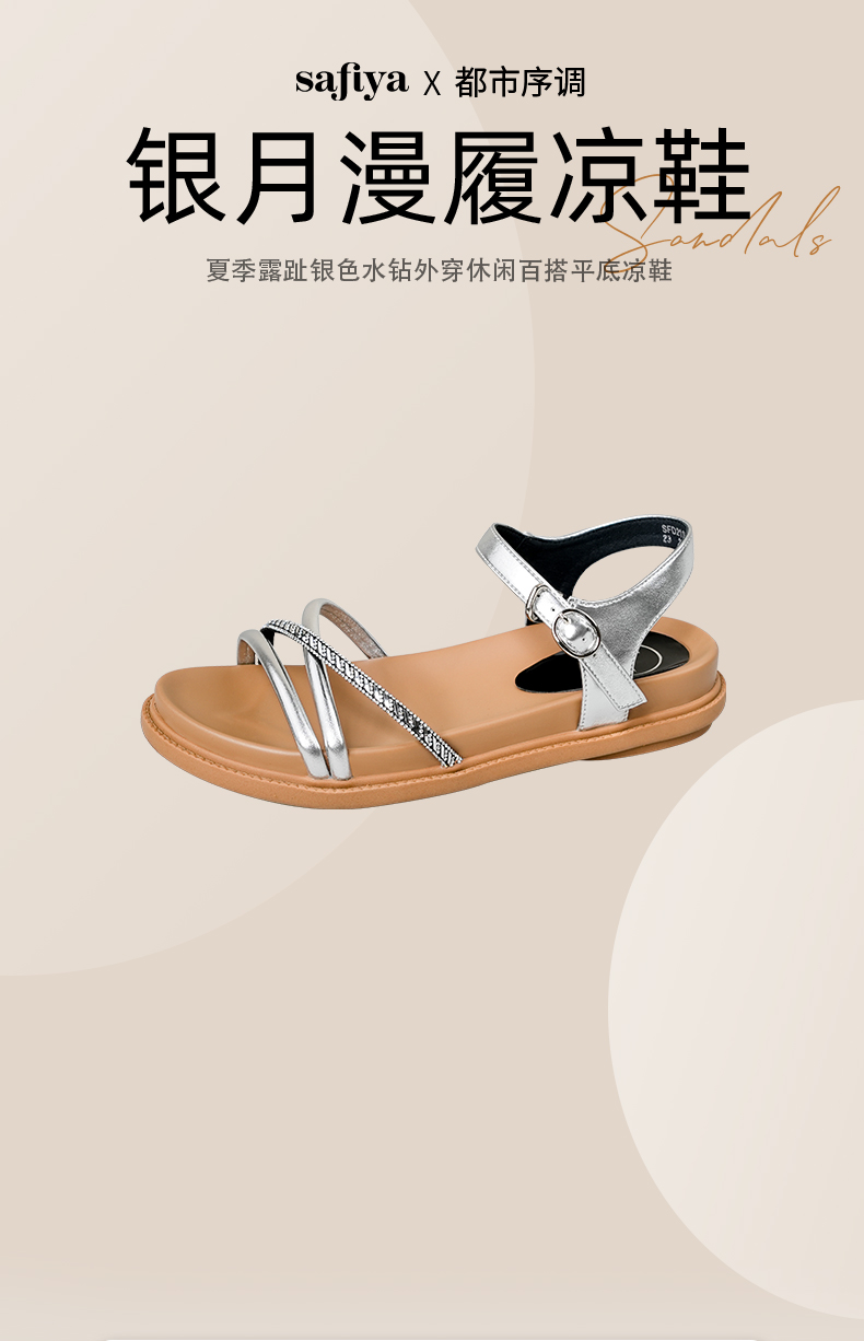 Safiya/索菲娅2025夏季露趾银色水钻外穿休闲百搭平底凉鞋SFD2115410