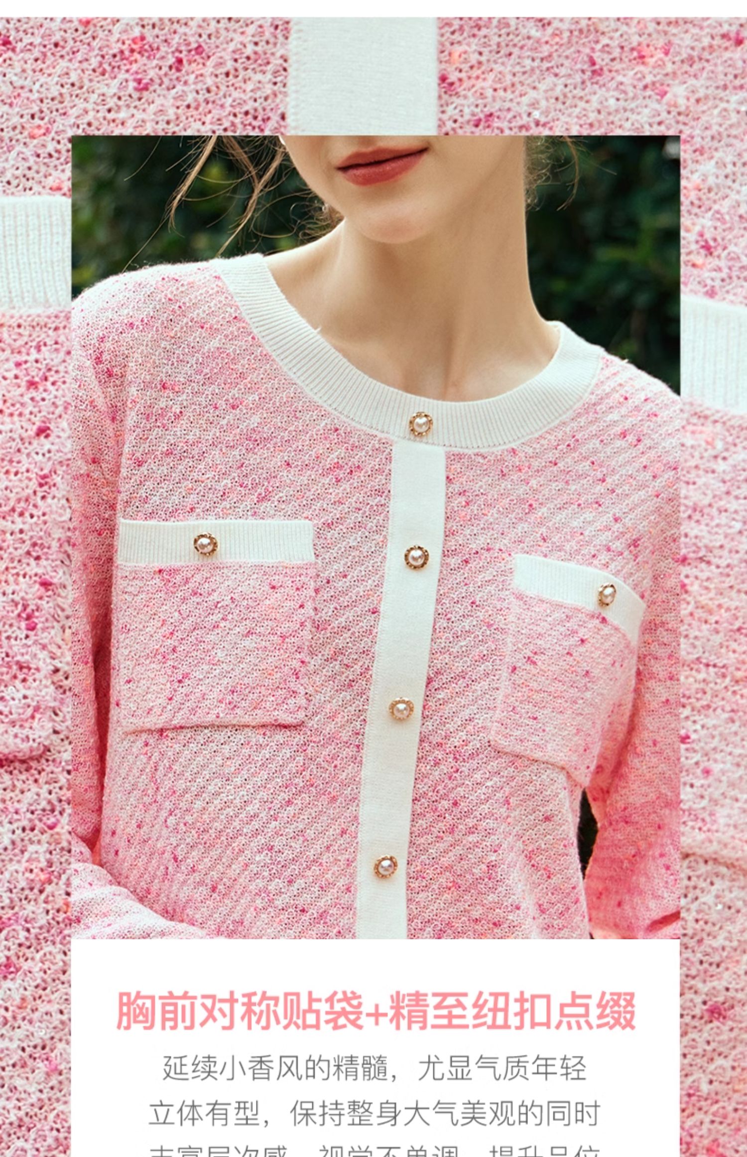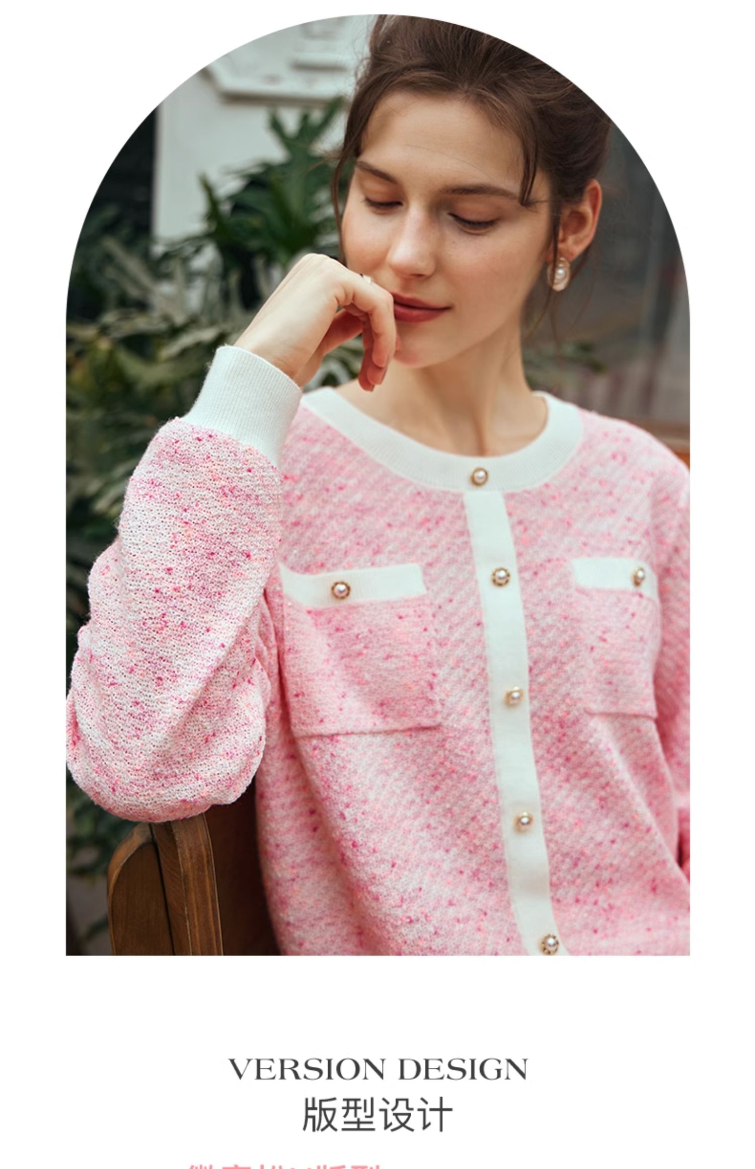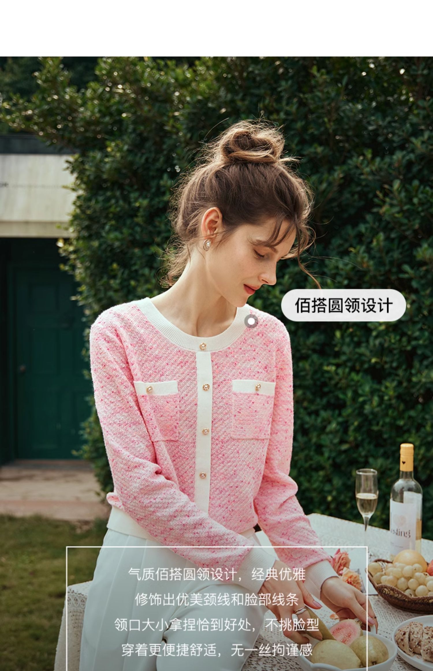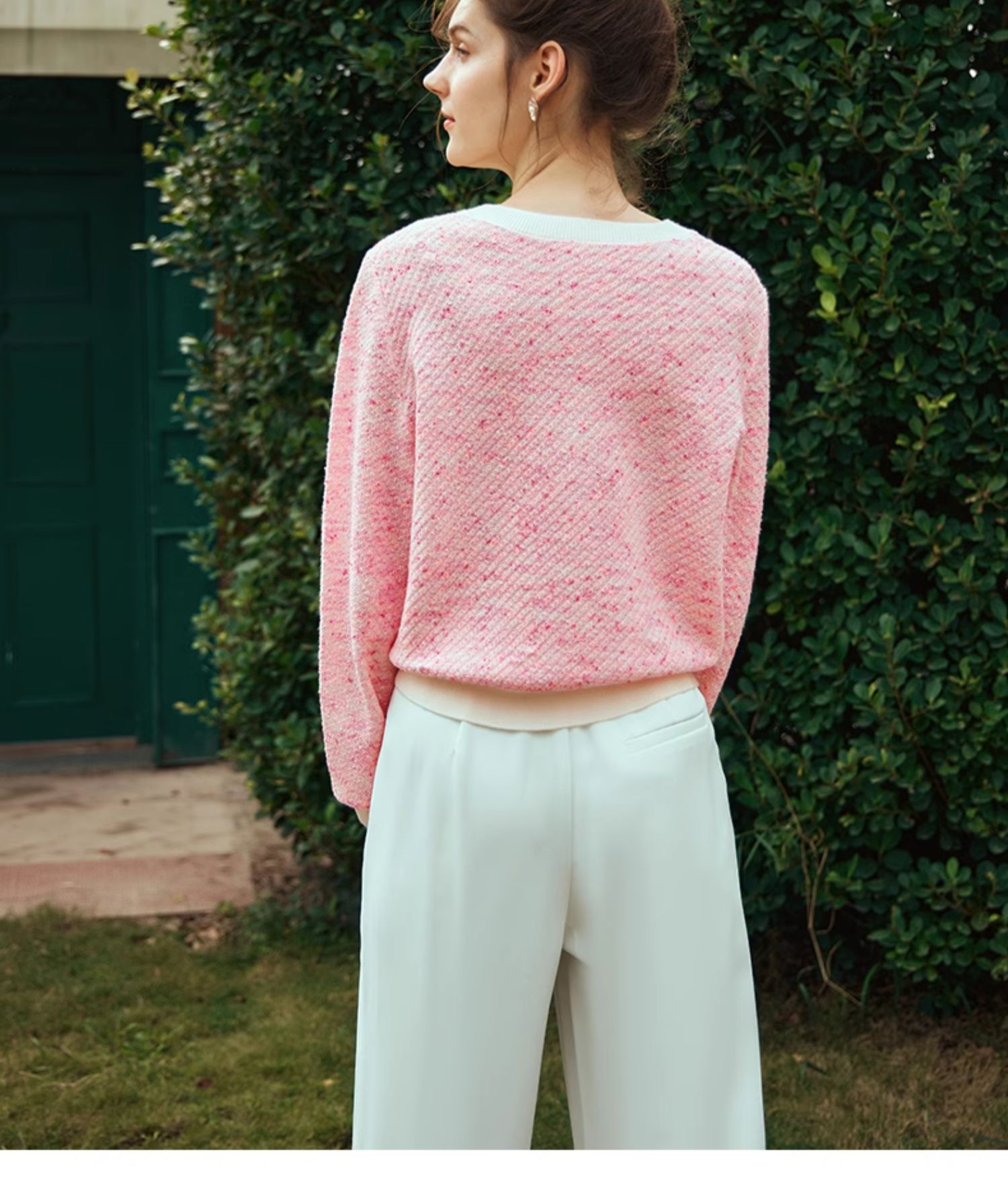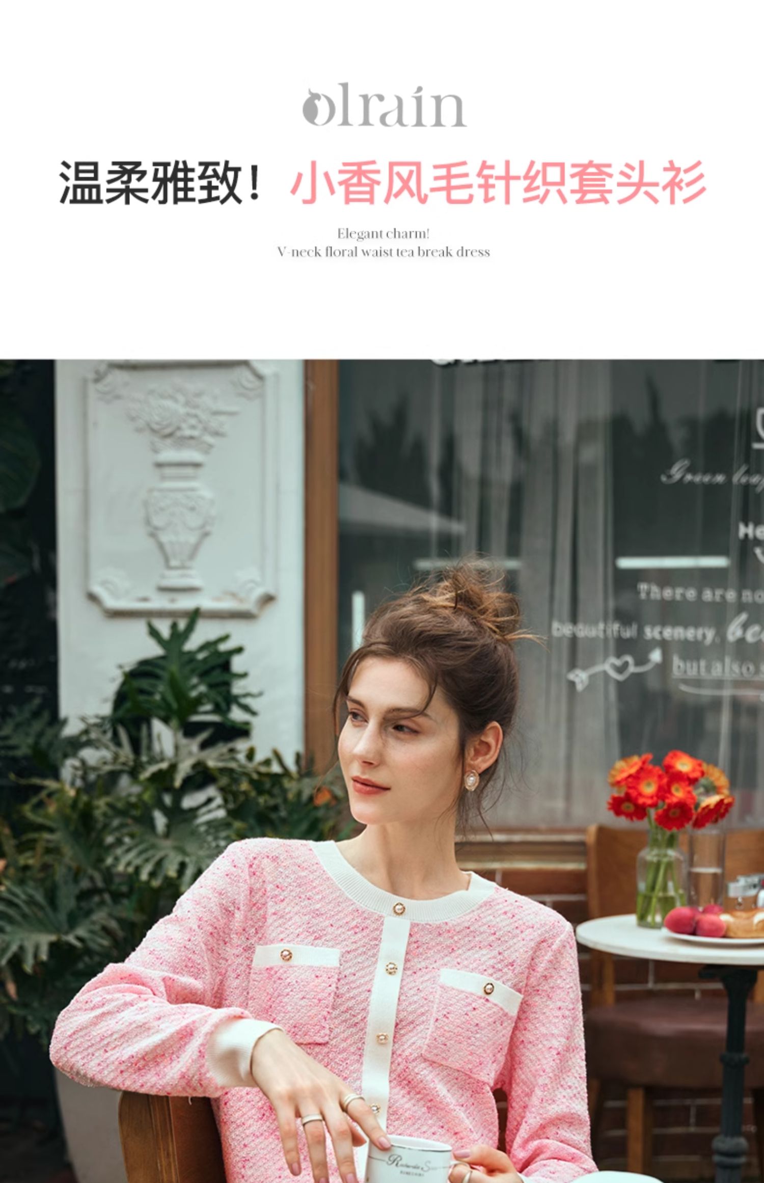 OLrain欧芮儿粉色小香风针织衫女早春2024年新款宽松别致套头毛衣