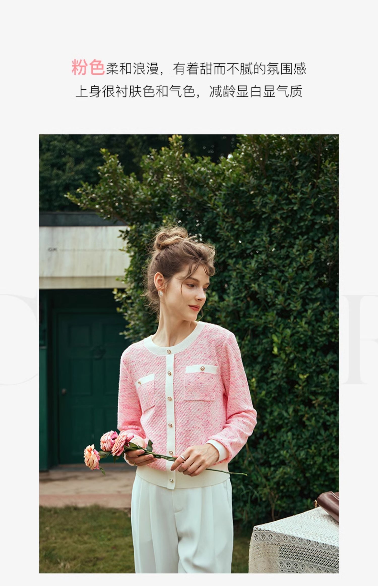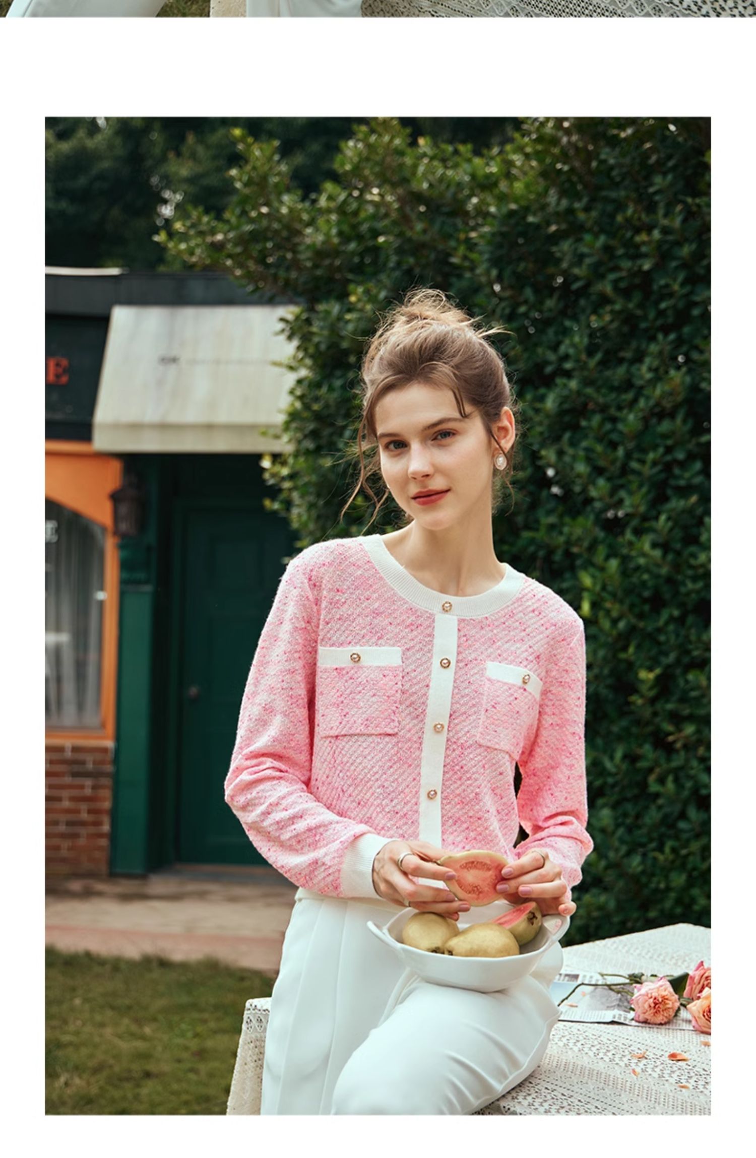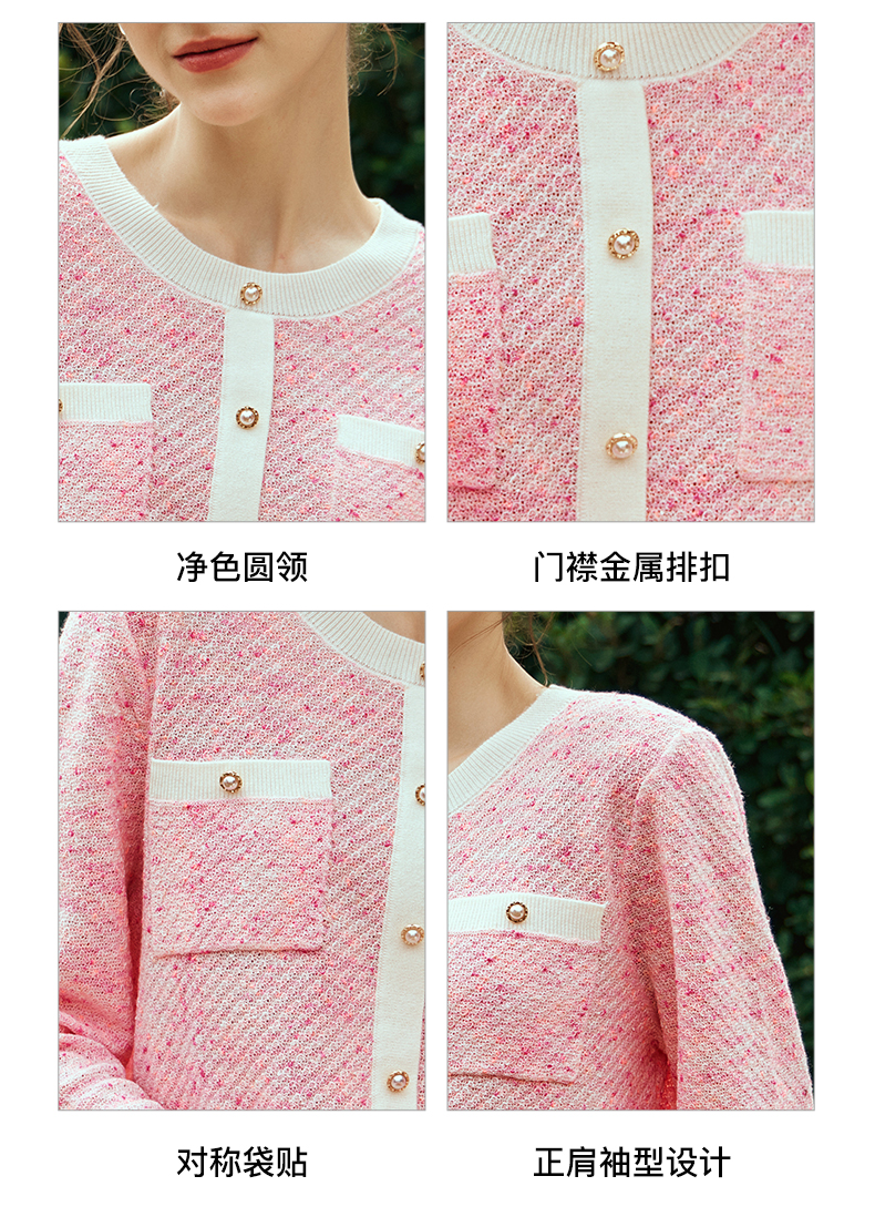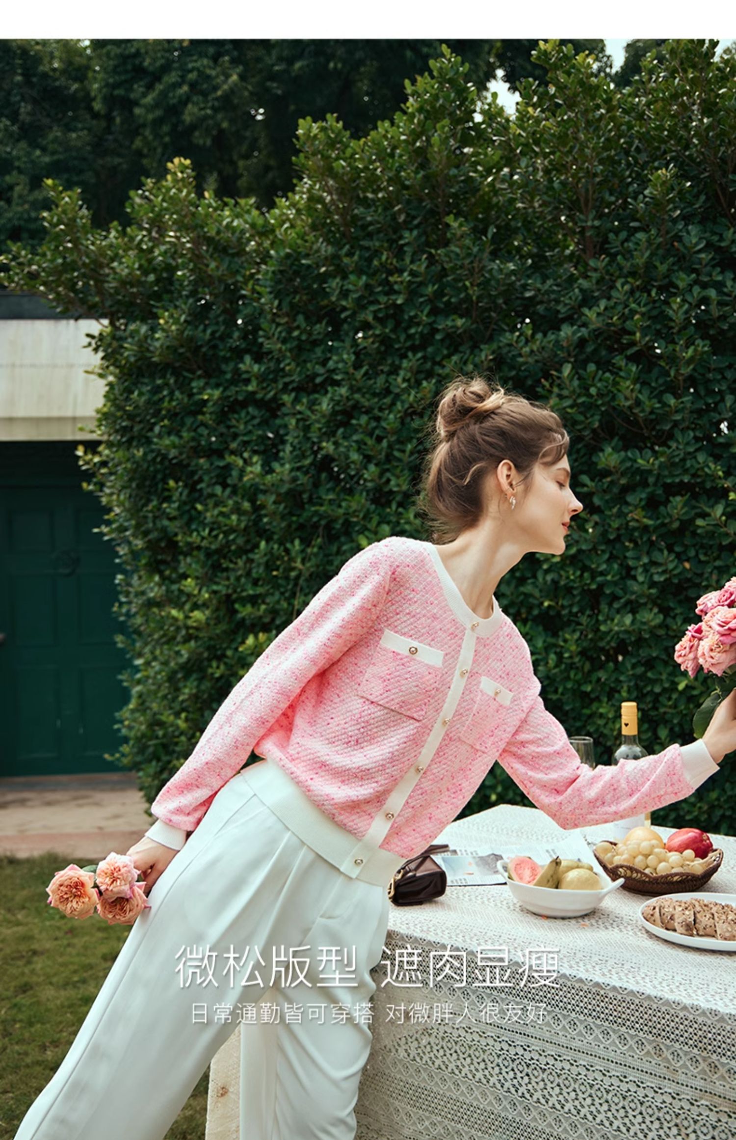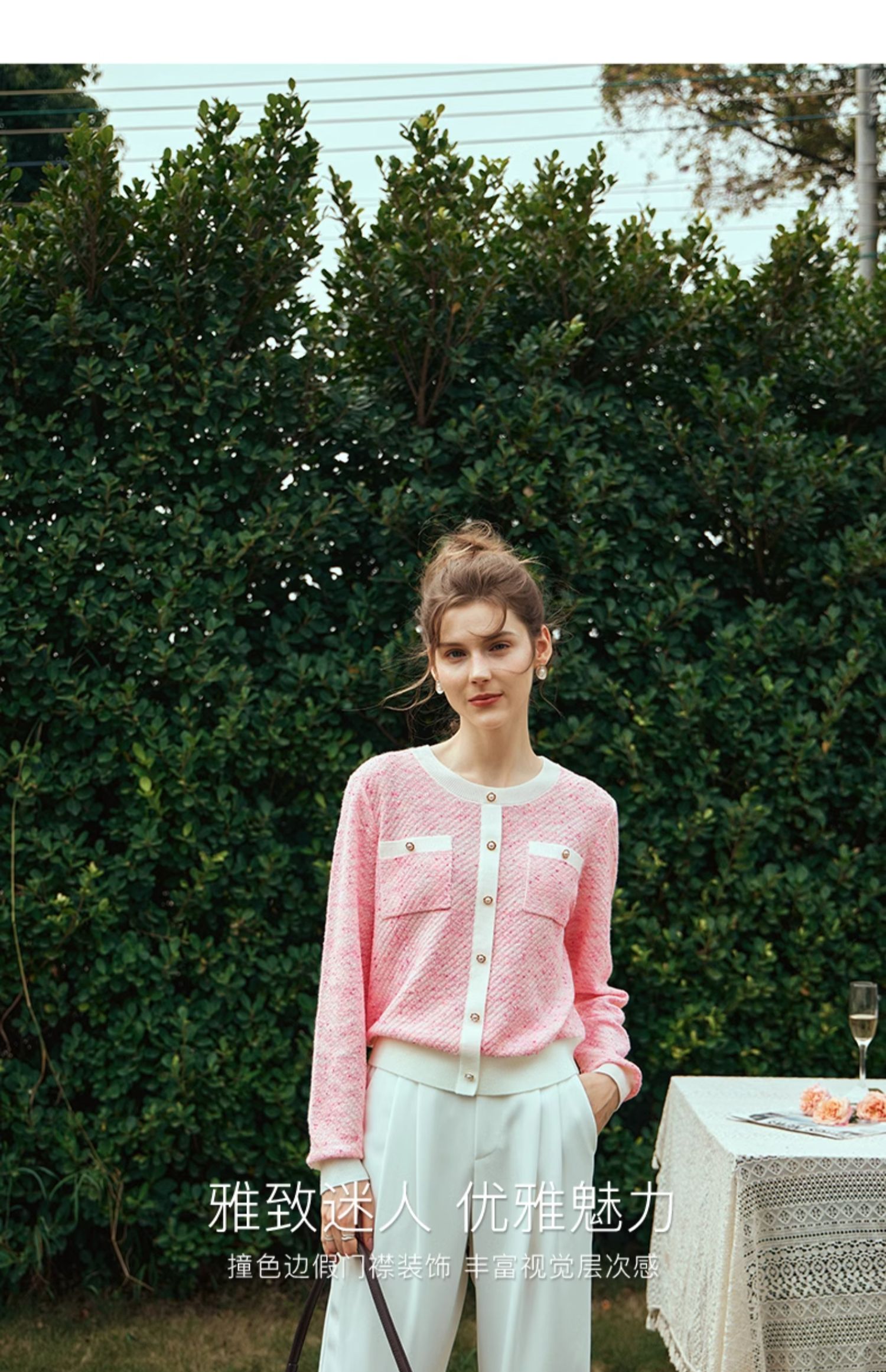 OLrain欧芮儿粉色小香风针织衫女早春2024年新款宽松别致套头毛衣