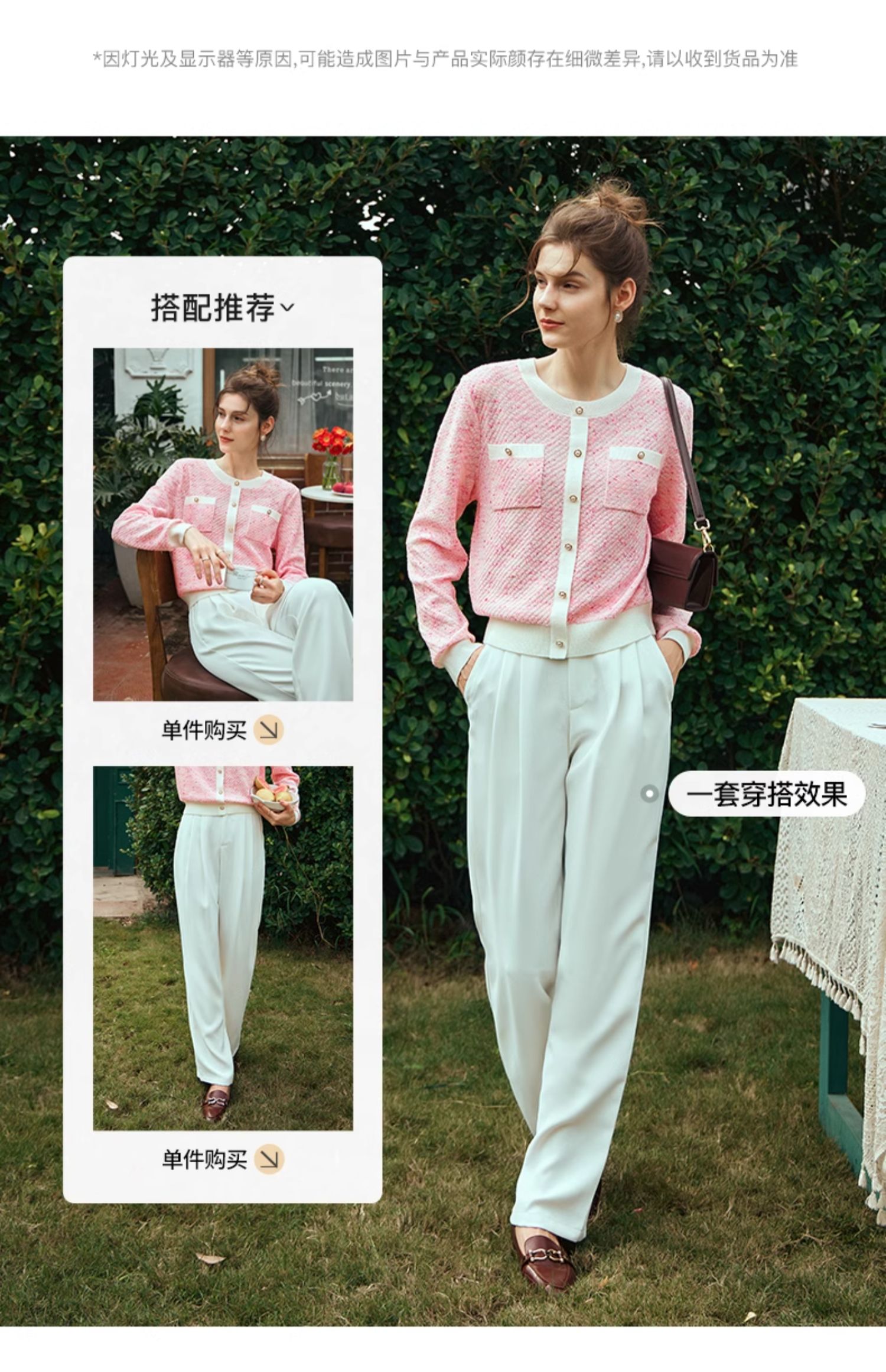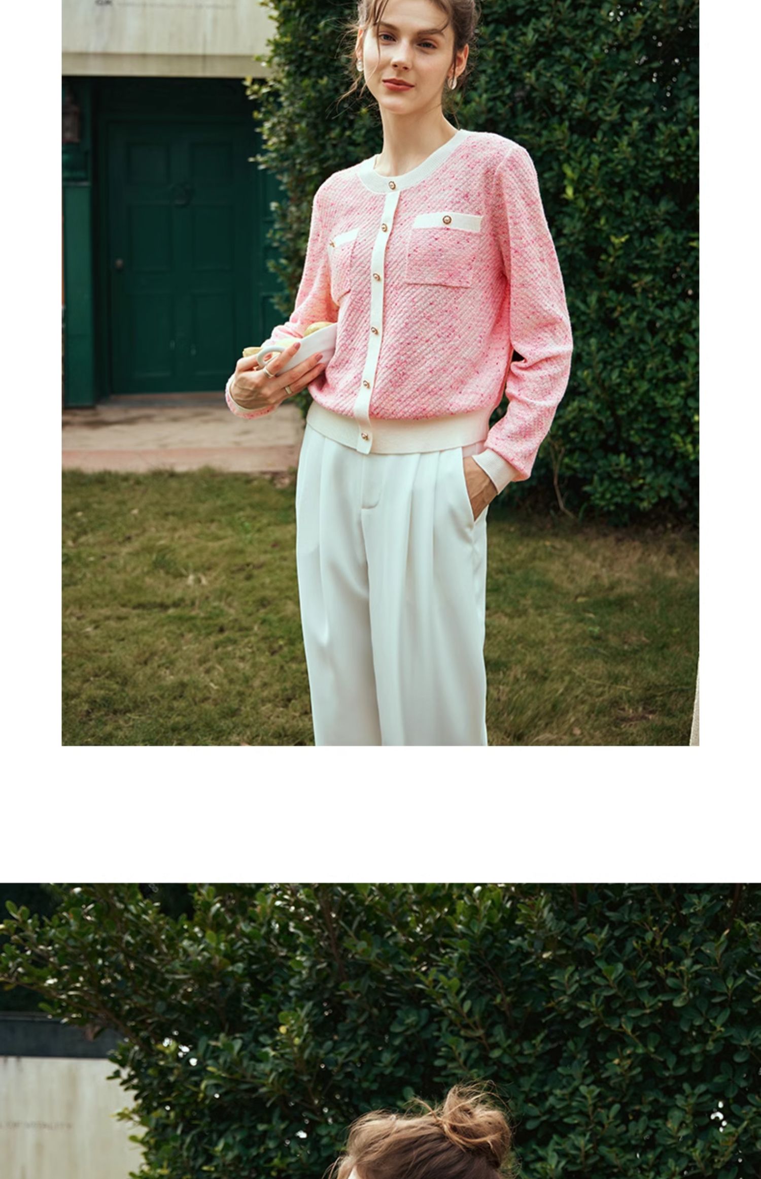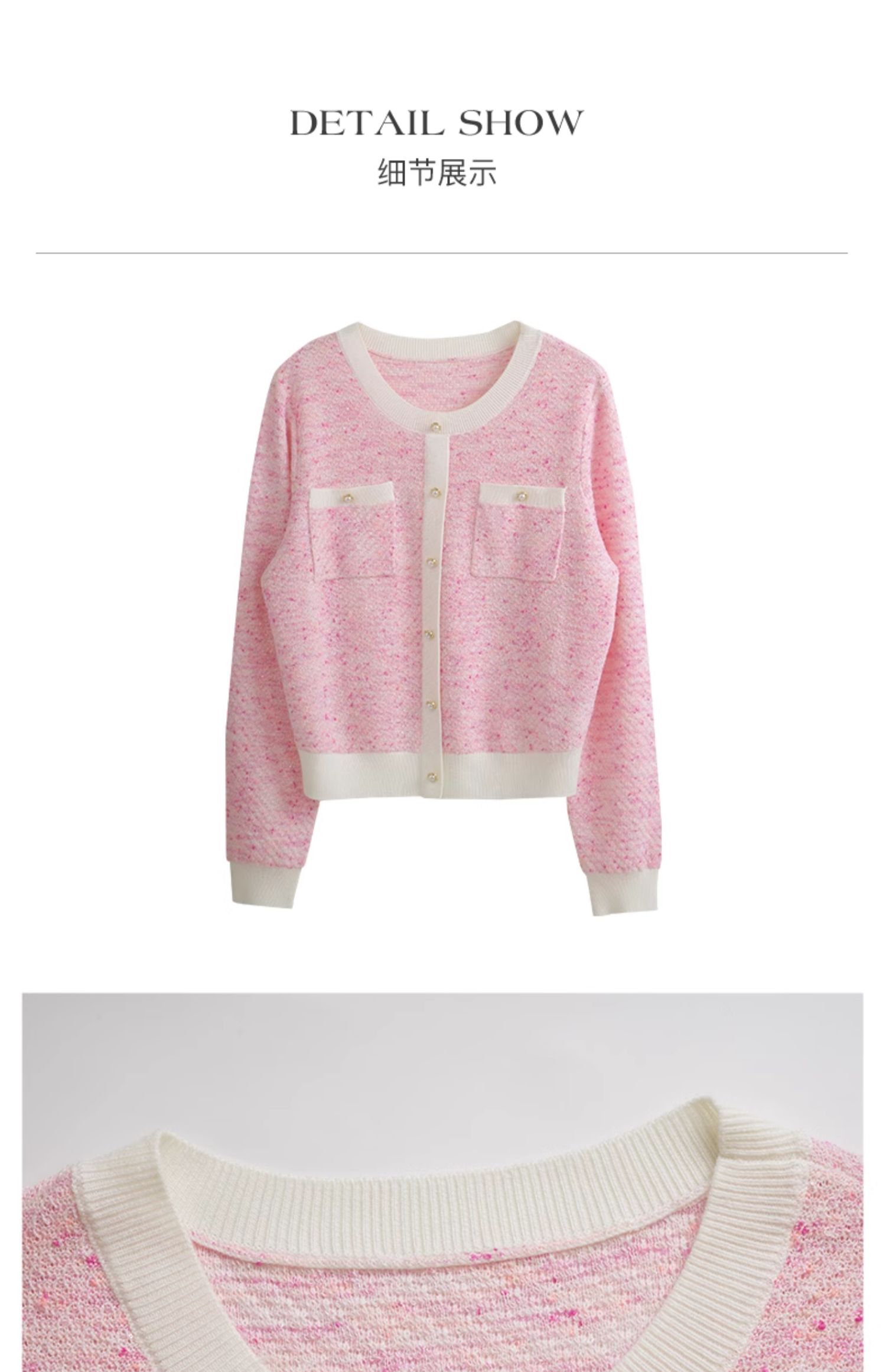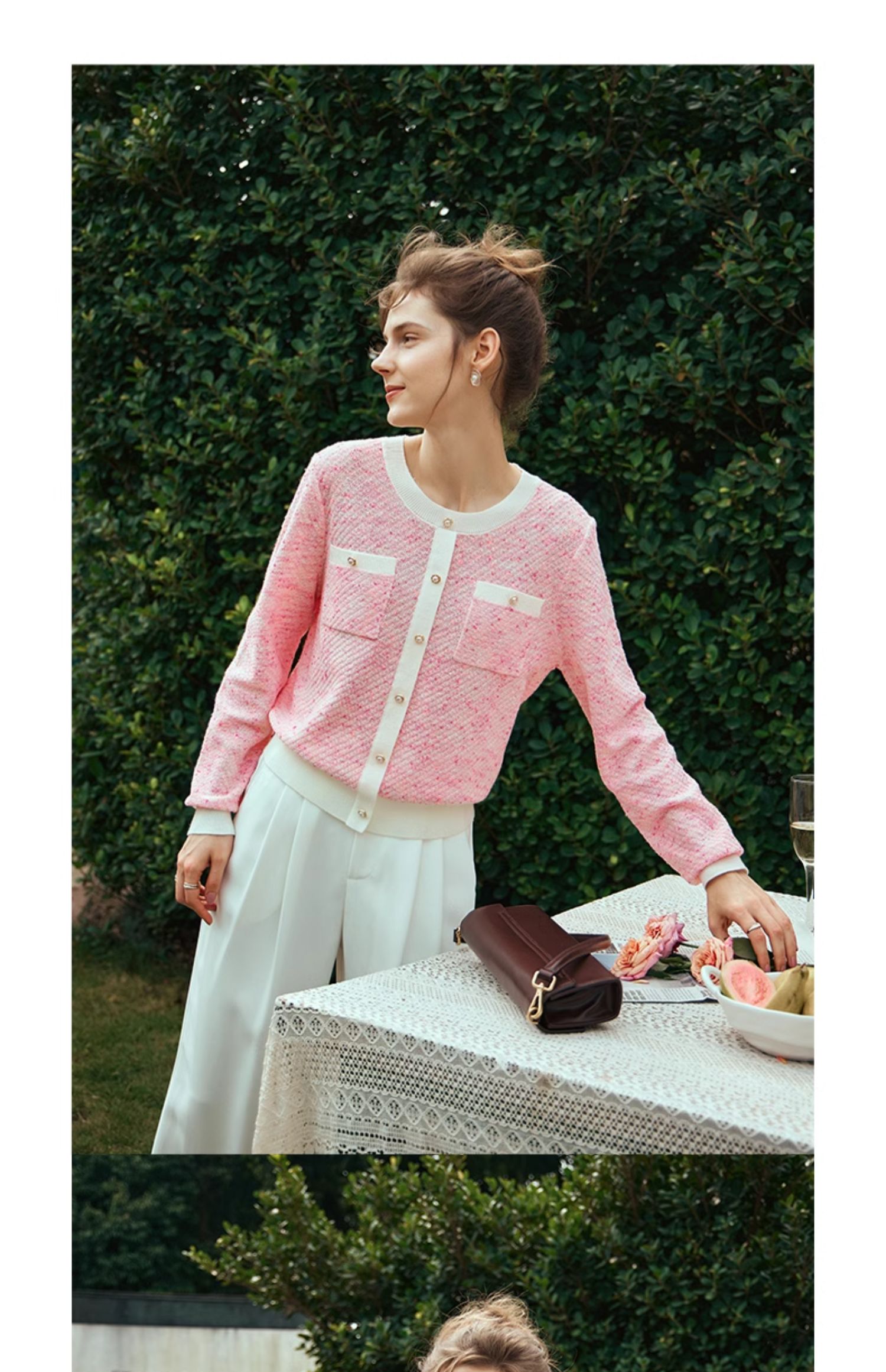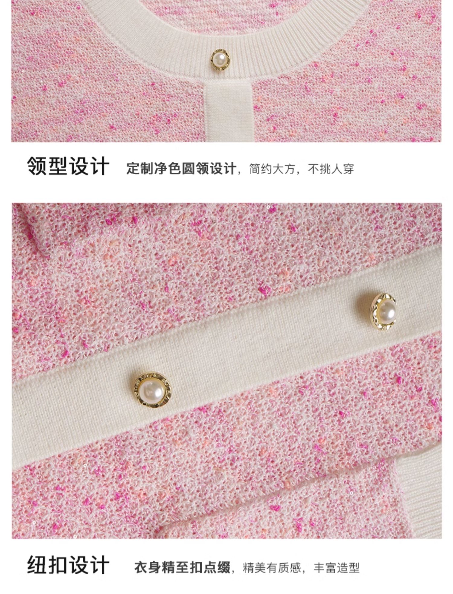 OLrain欧芮儿粉色小香风针织衫女早春2024年新款宽松别致套头毛衣