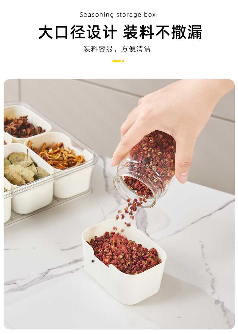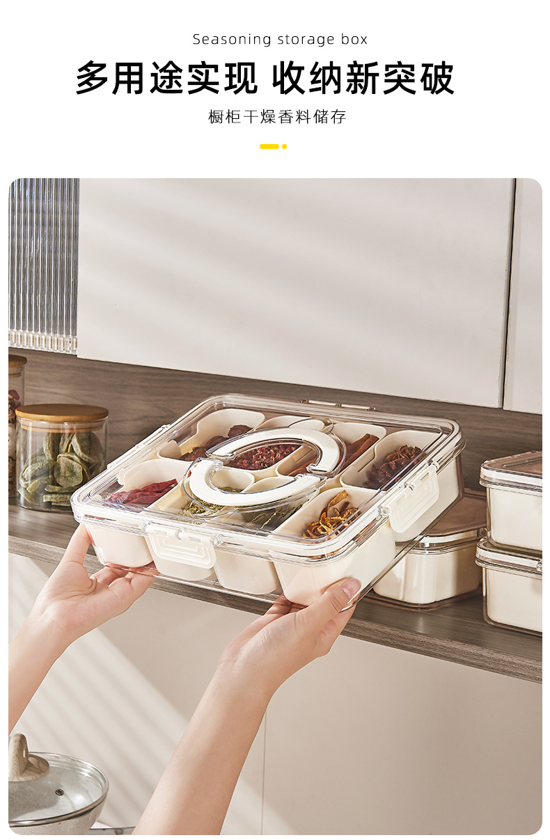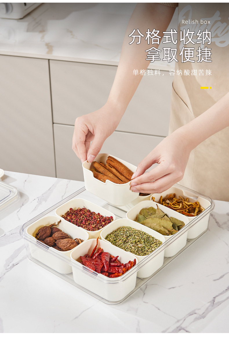 「分类收纳!卡扣设计」调味佐料防潮保鲜盒 分格储物盒手提商用食品冰粉配料盒厨房用品