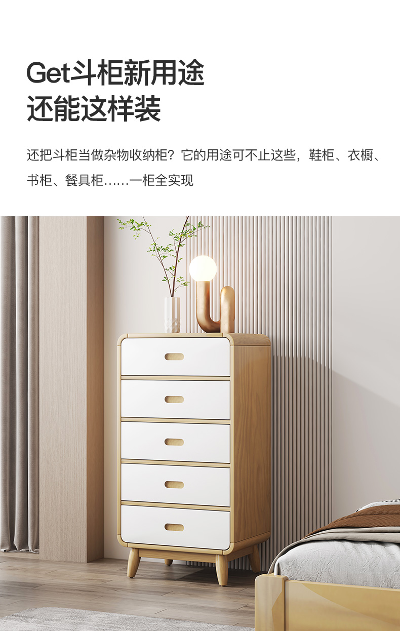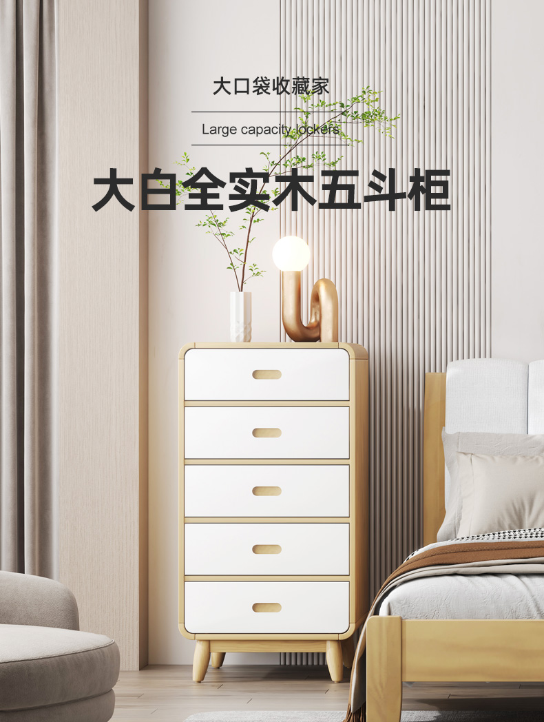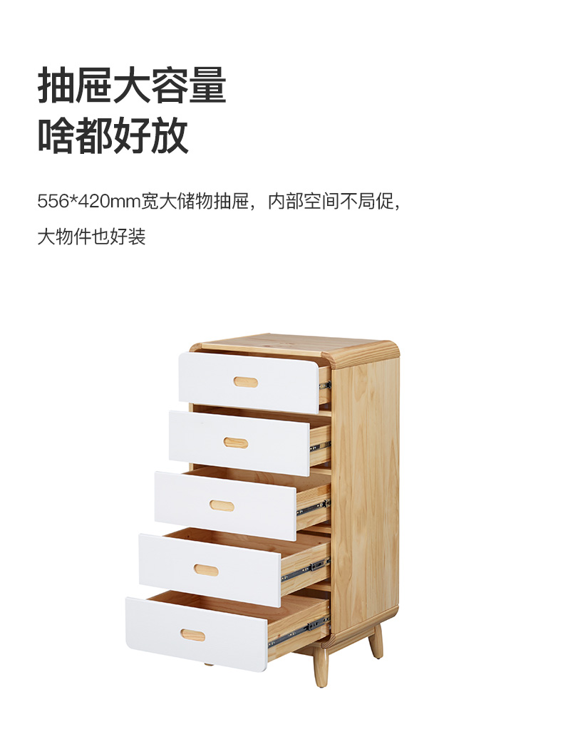喜梦宝家具全实木五斗柜卧室储物柜实木斗柜柜子大白