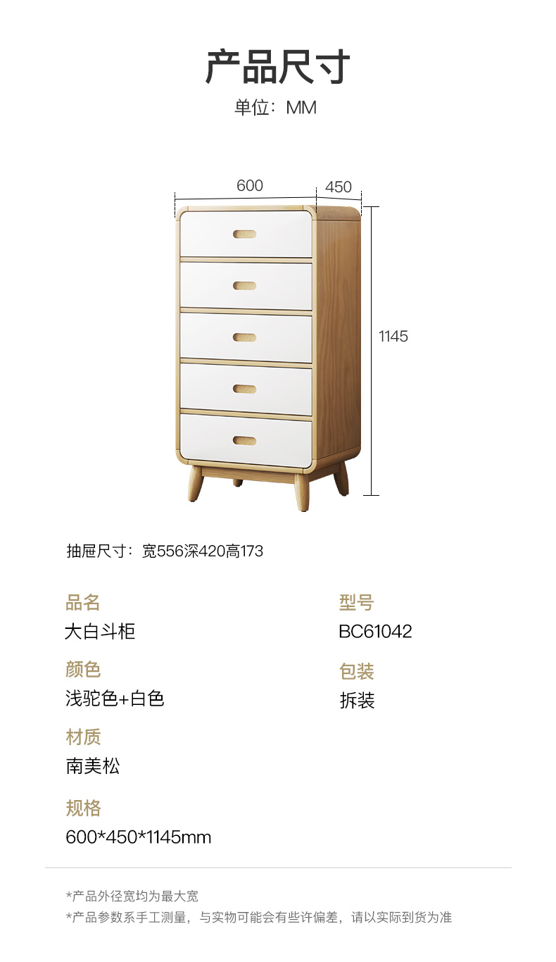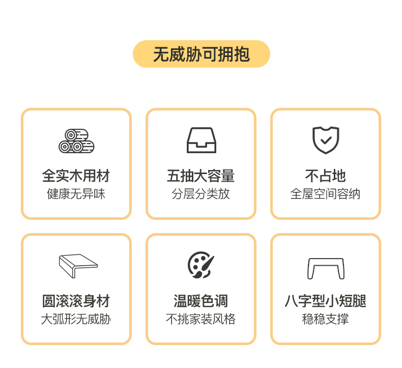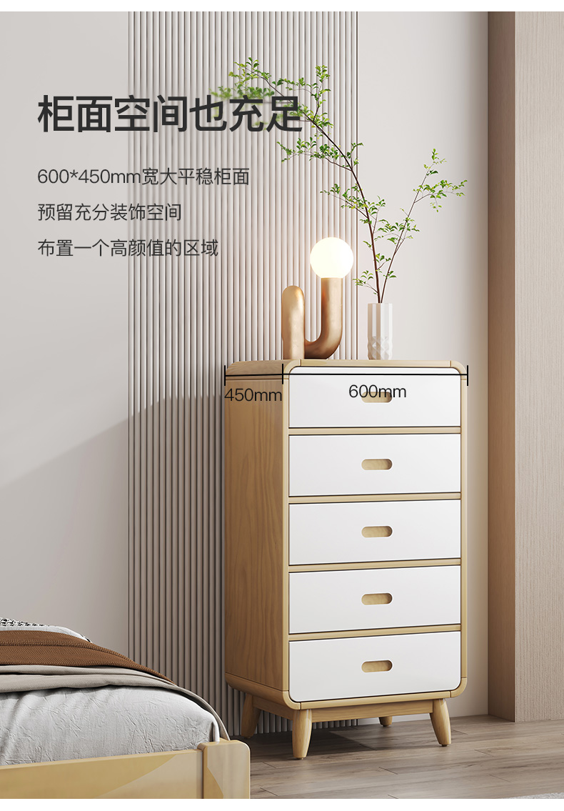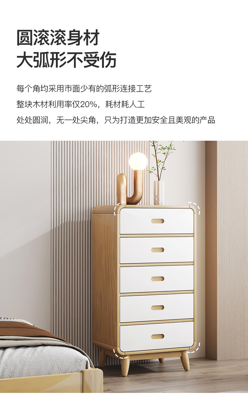 喜梦宝家具全实木五斗柜卧室储物柜实木斗柜柜子大白