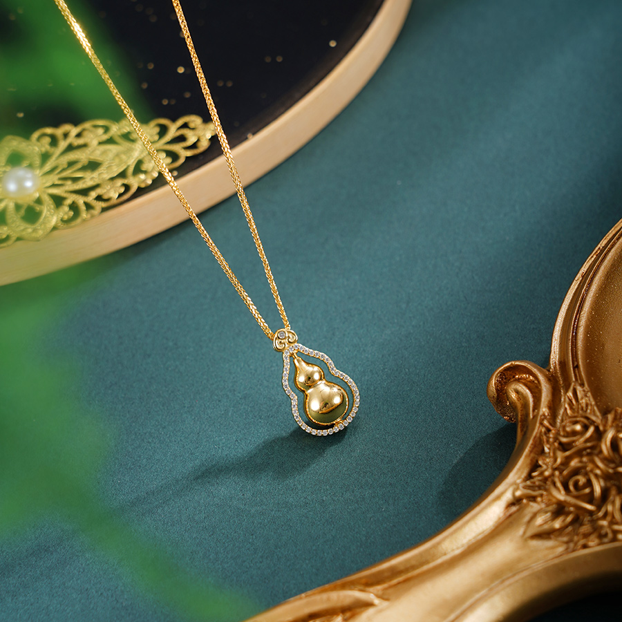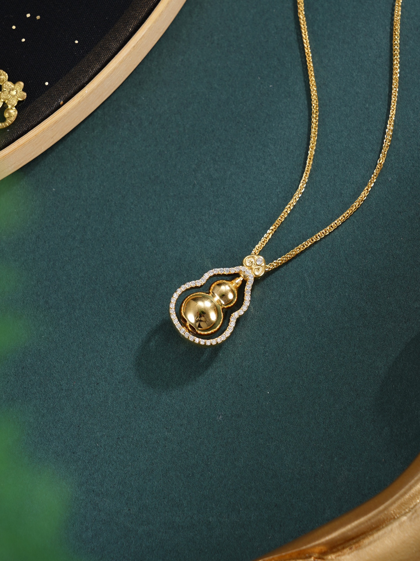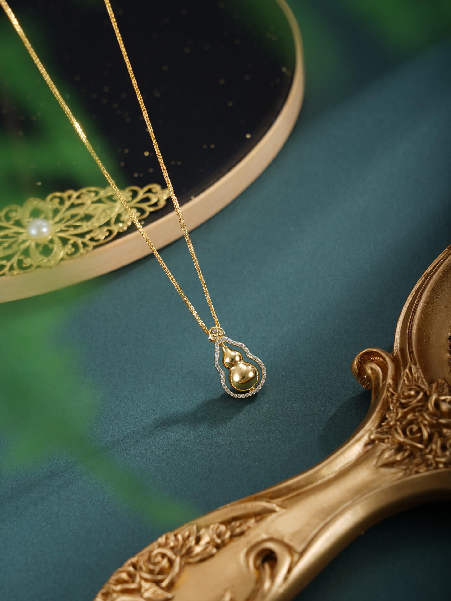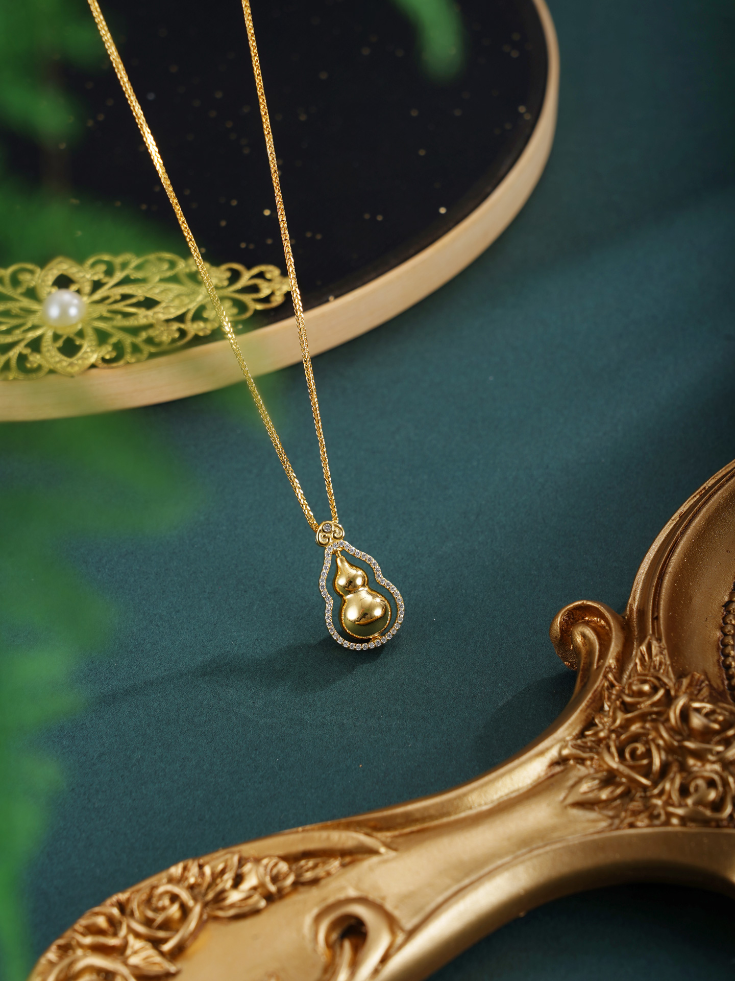 【寓意】:项链纯银材质,以“葫芦”为设计核心,象征"福禄双全",如意纹样巧妙融入,寓意人生如如意所绘,圆满而璀璨。