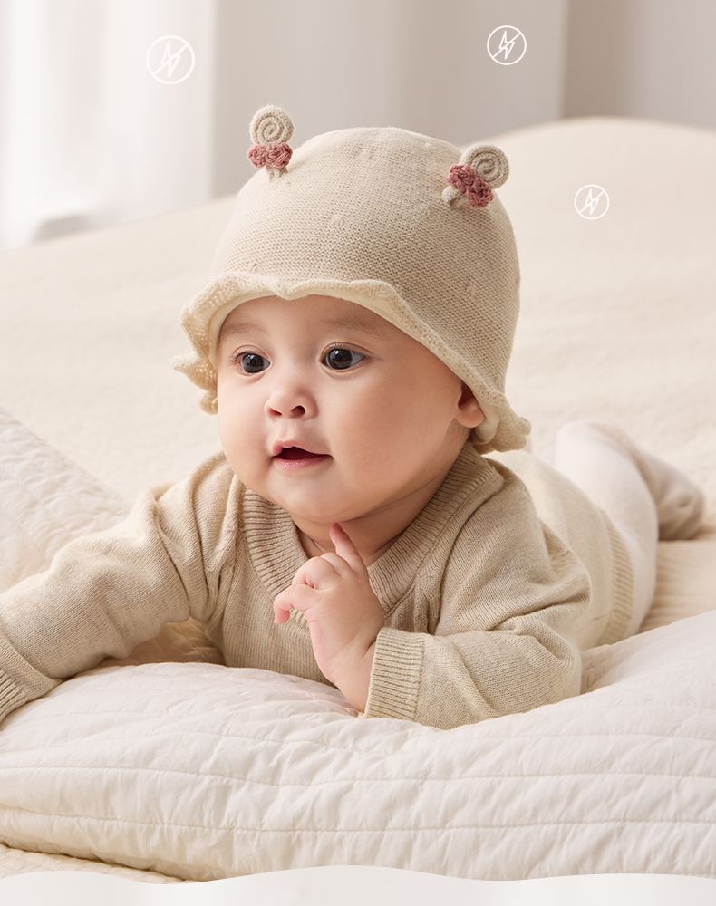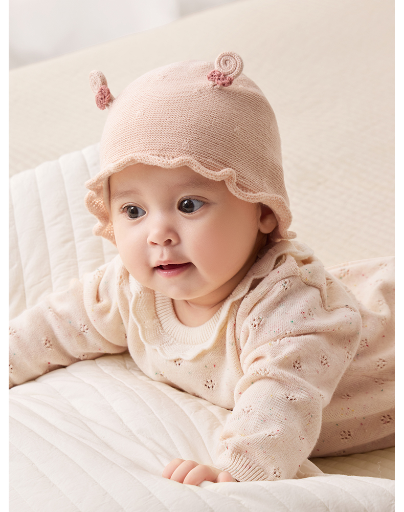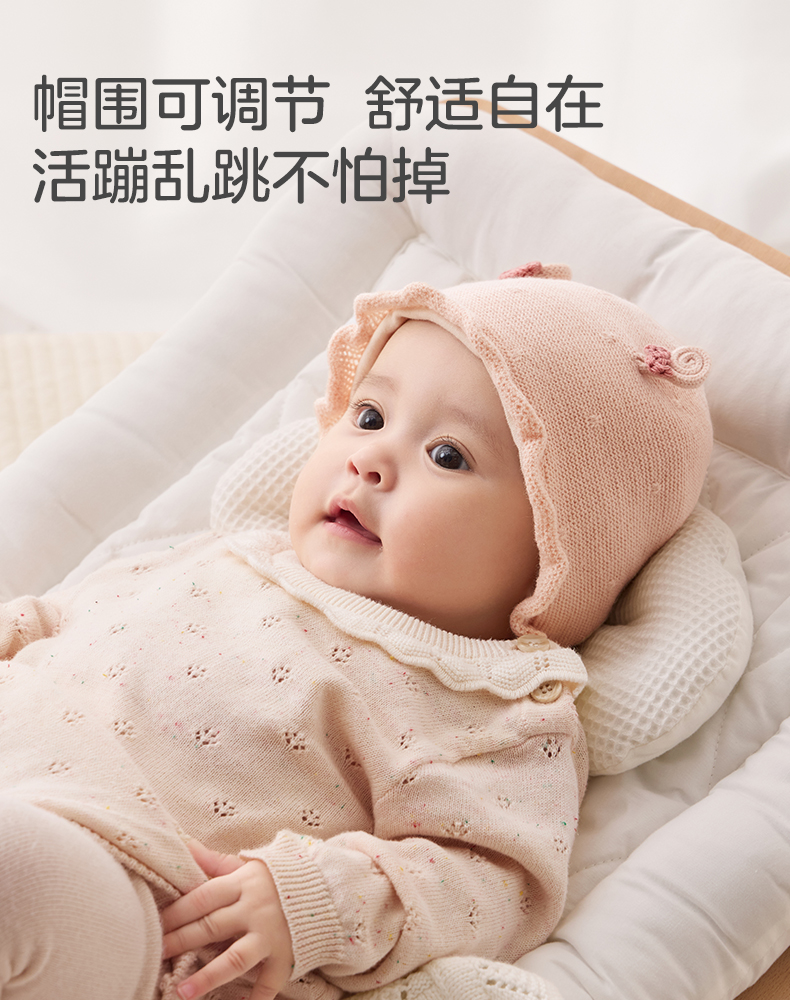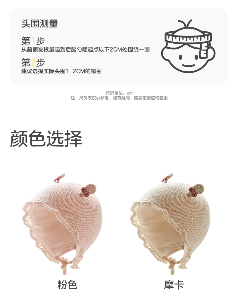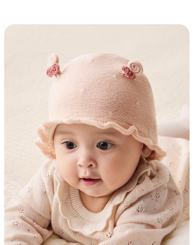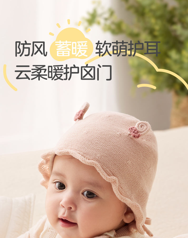 粒粒阳光婴儿帽子0到3个月新生公主帽羊毛保暖宝宝帽子秋