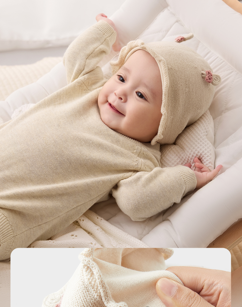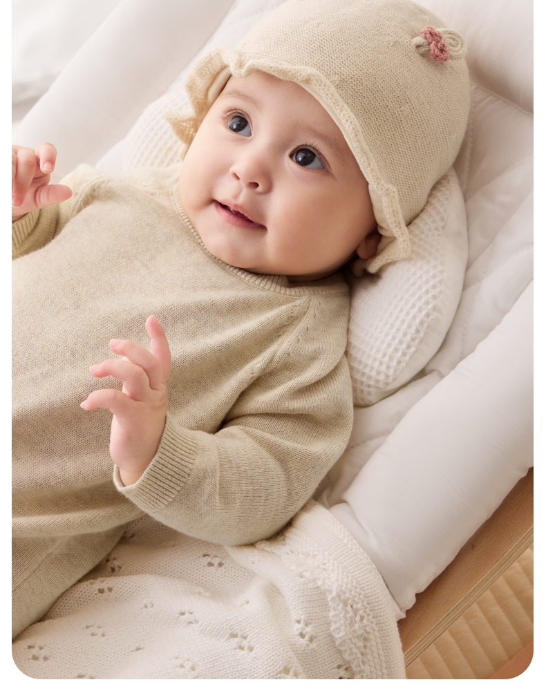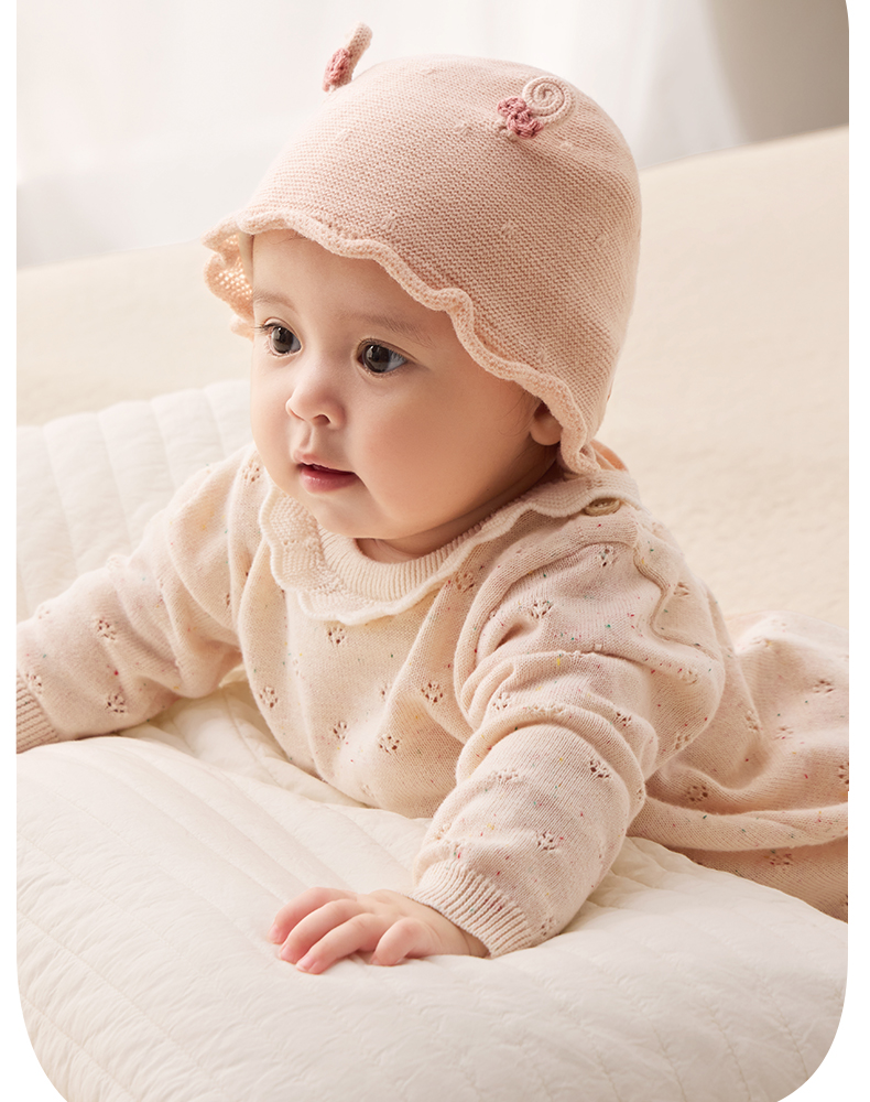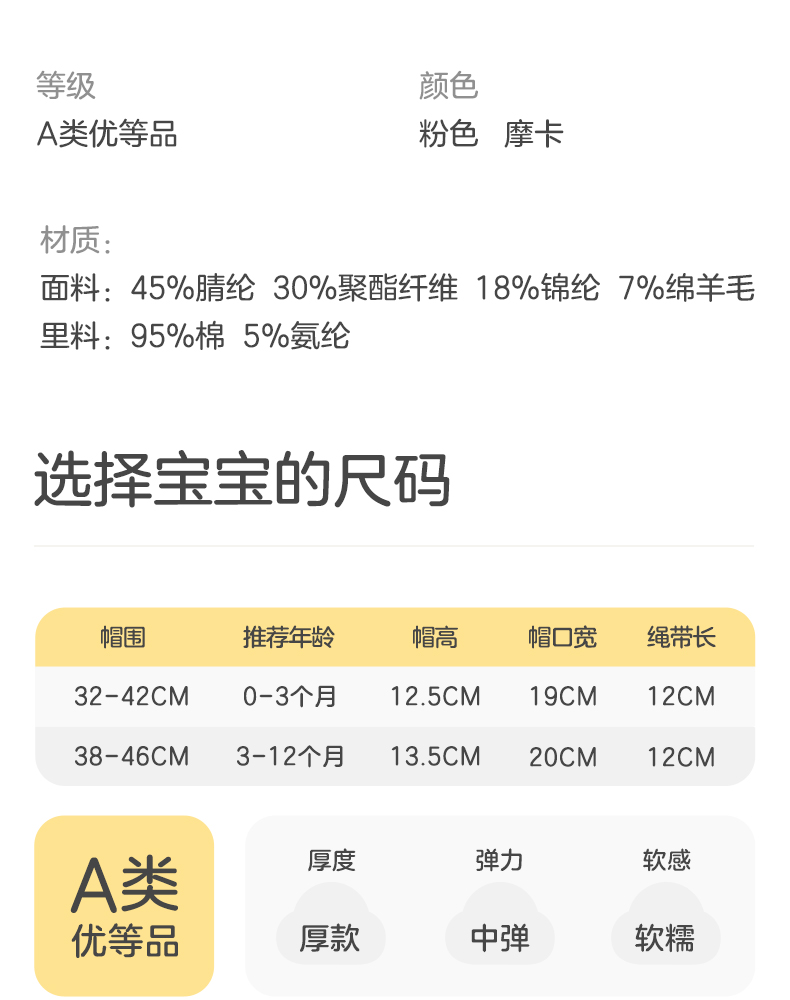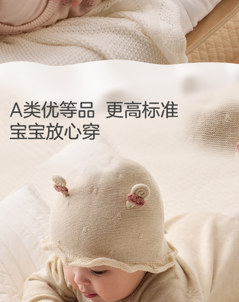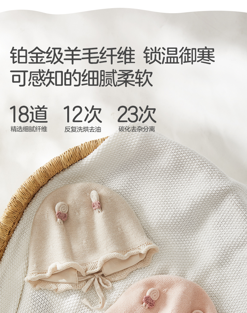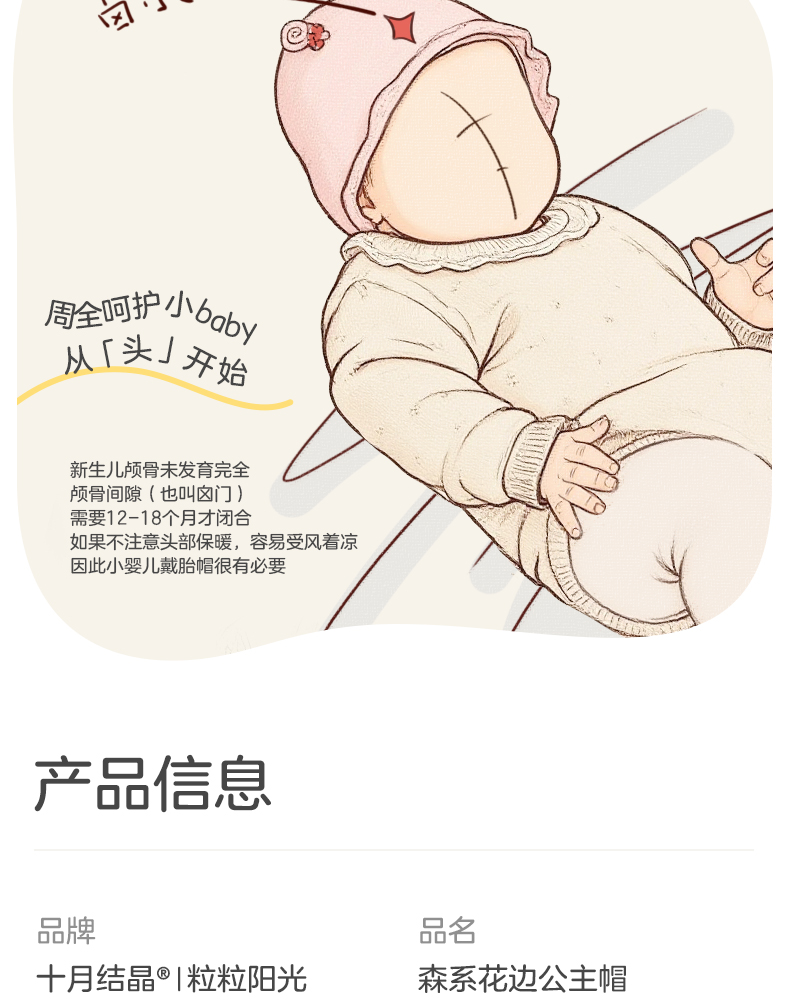 粒粒阳光婴儿帽子0到3个月新生公主帽羊毛保暖宝宝帽子秋