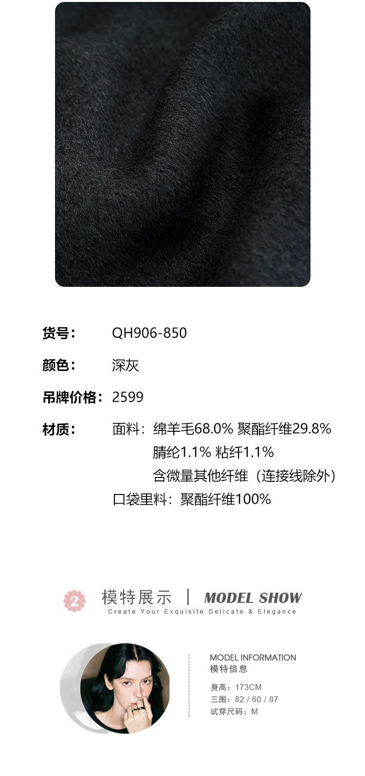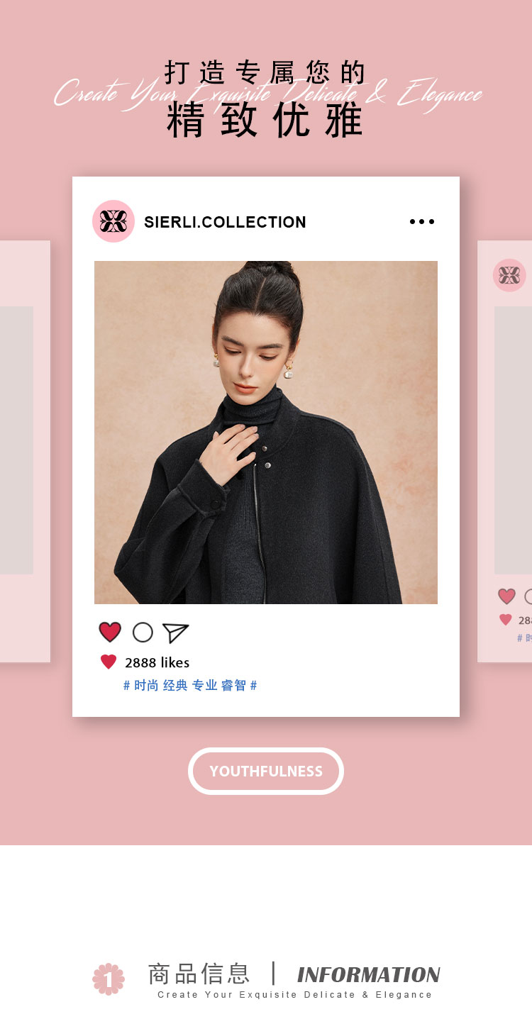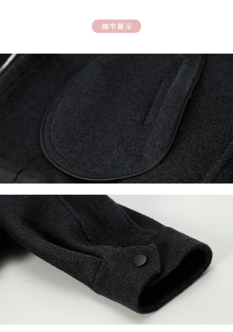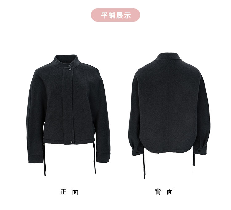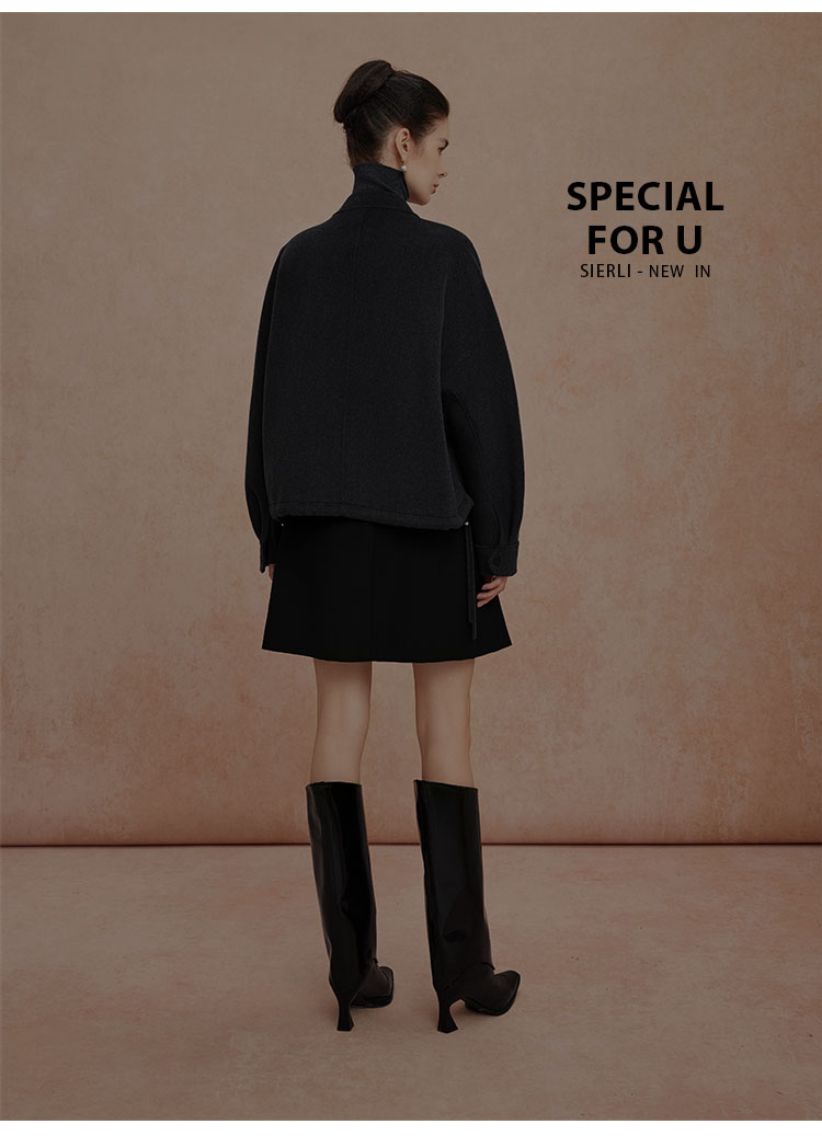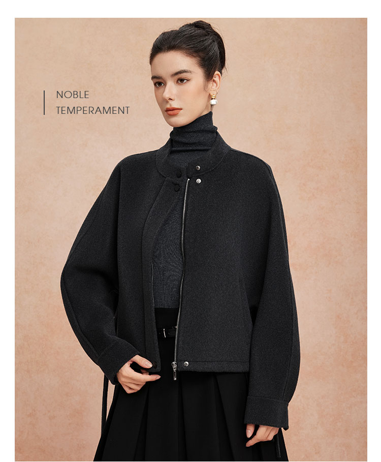 QH906斯尔丽2025新款宽松版时尚减龄显高经典小立领双面呢短款羊毛大衣
