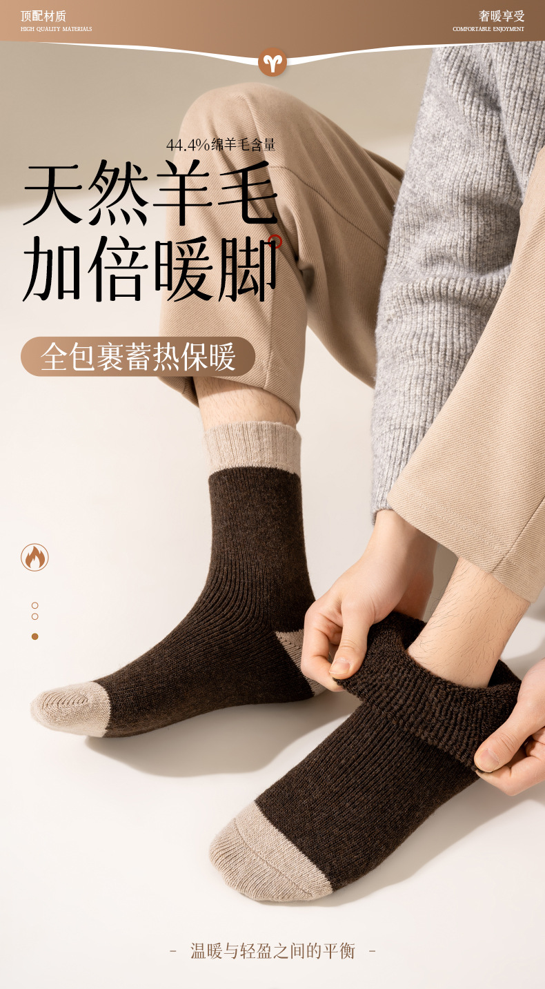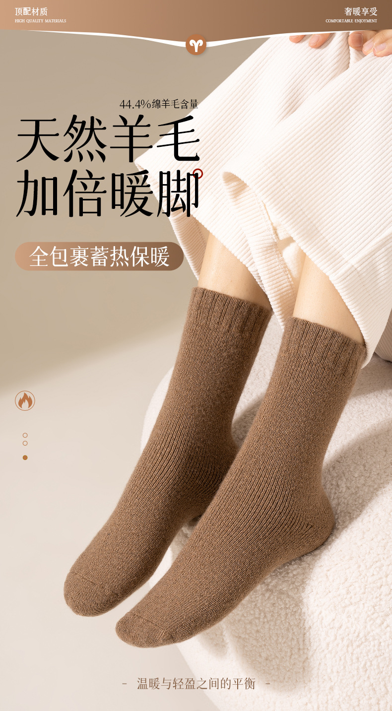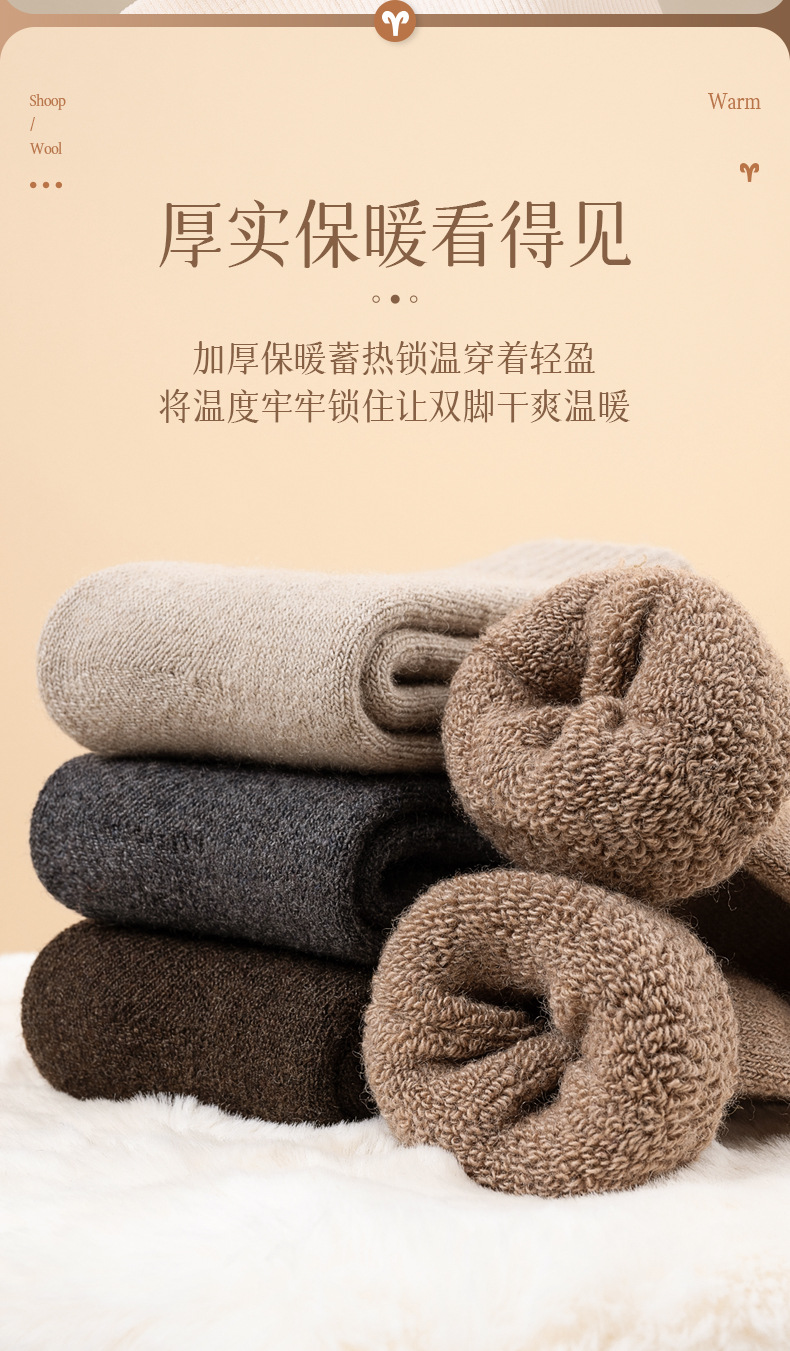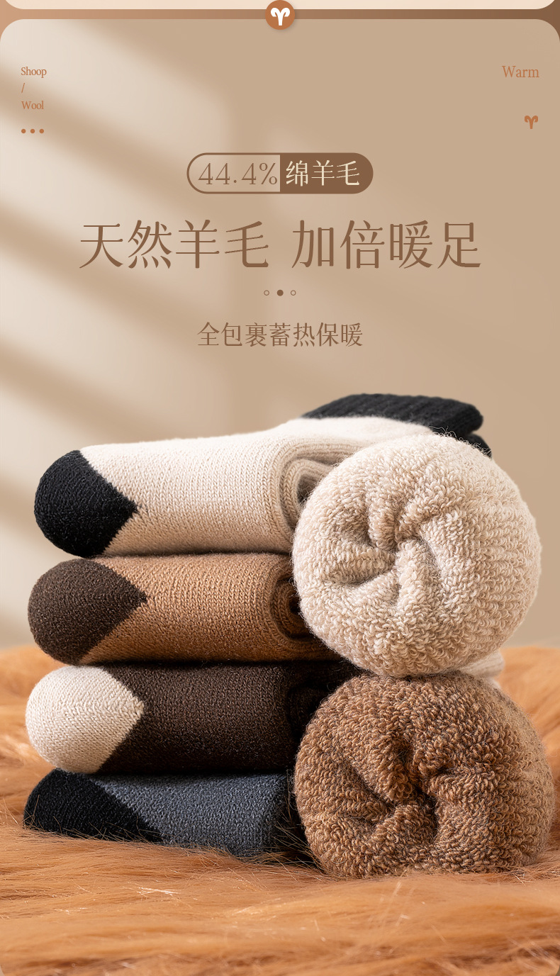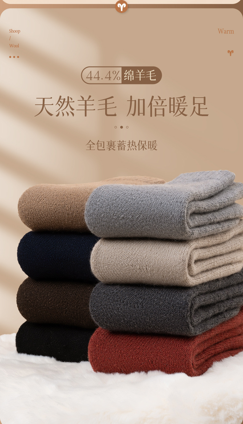 【天然羊毛 加倍暖足】男女款加厚羊毛袜子 44.4%高绵羊毛含量 10A抗菌 松软加厚暖脚 高弹不勒脚 男女均码 4双装