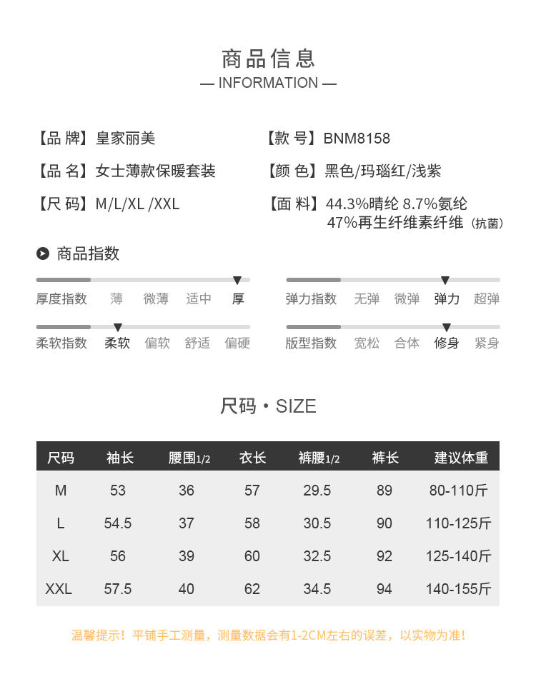 皇家丽美秋季女士德绒打底保暖套装 BNM8158