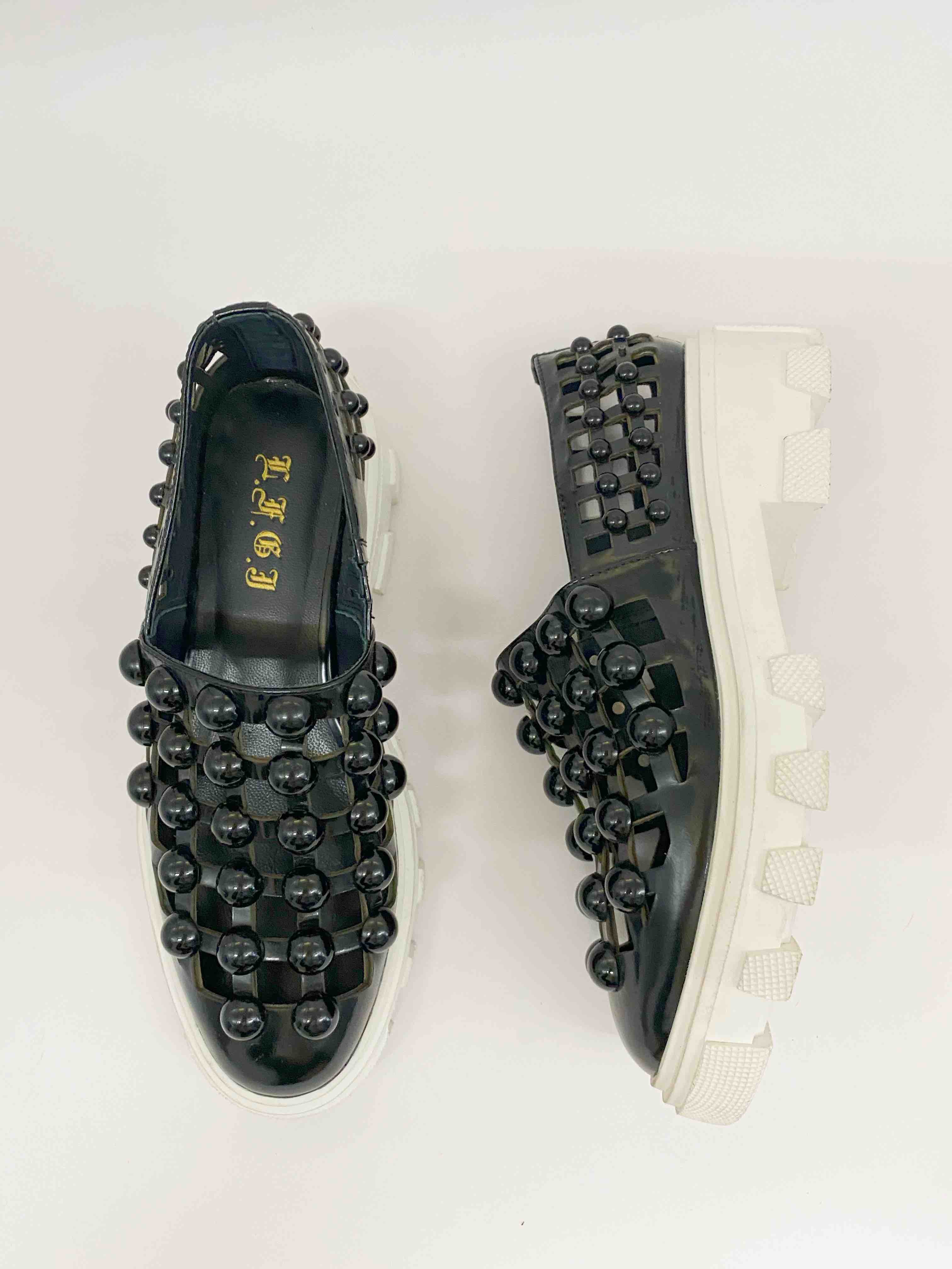 LFGJ 0213镂空乐福鞋单鞋松糕厚底一脚蹬懒人洞洞凉鞋