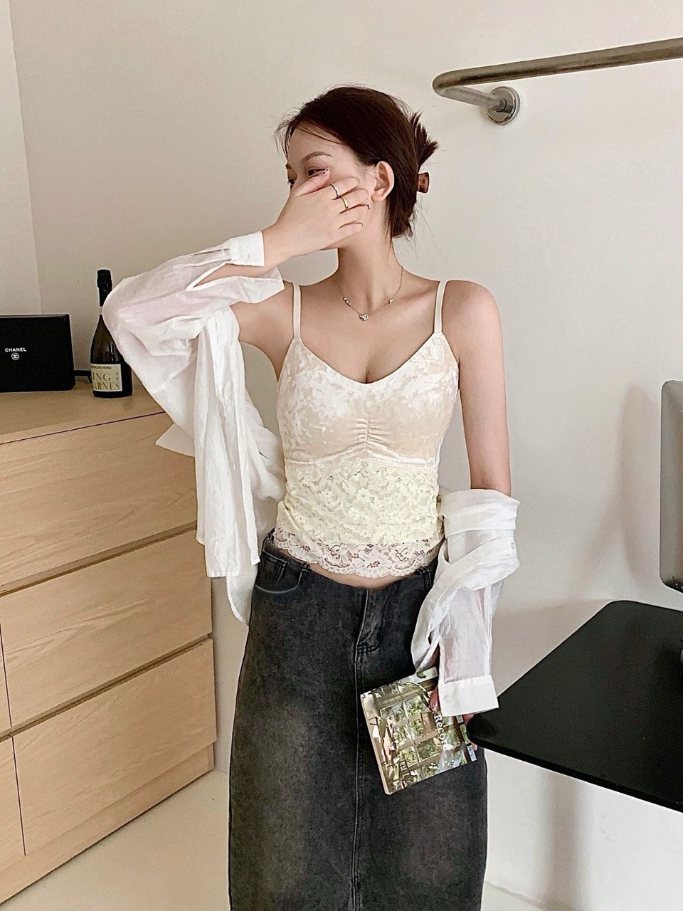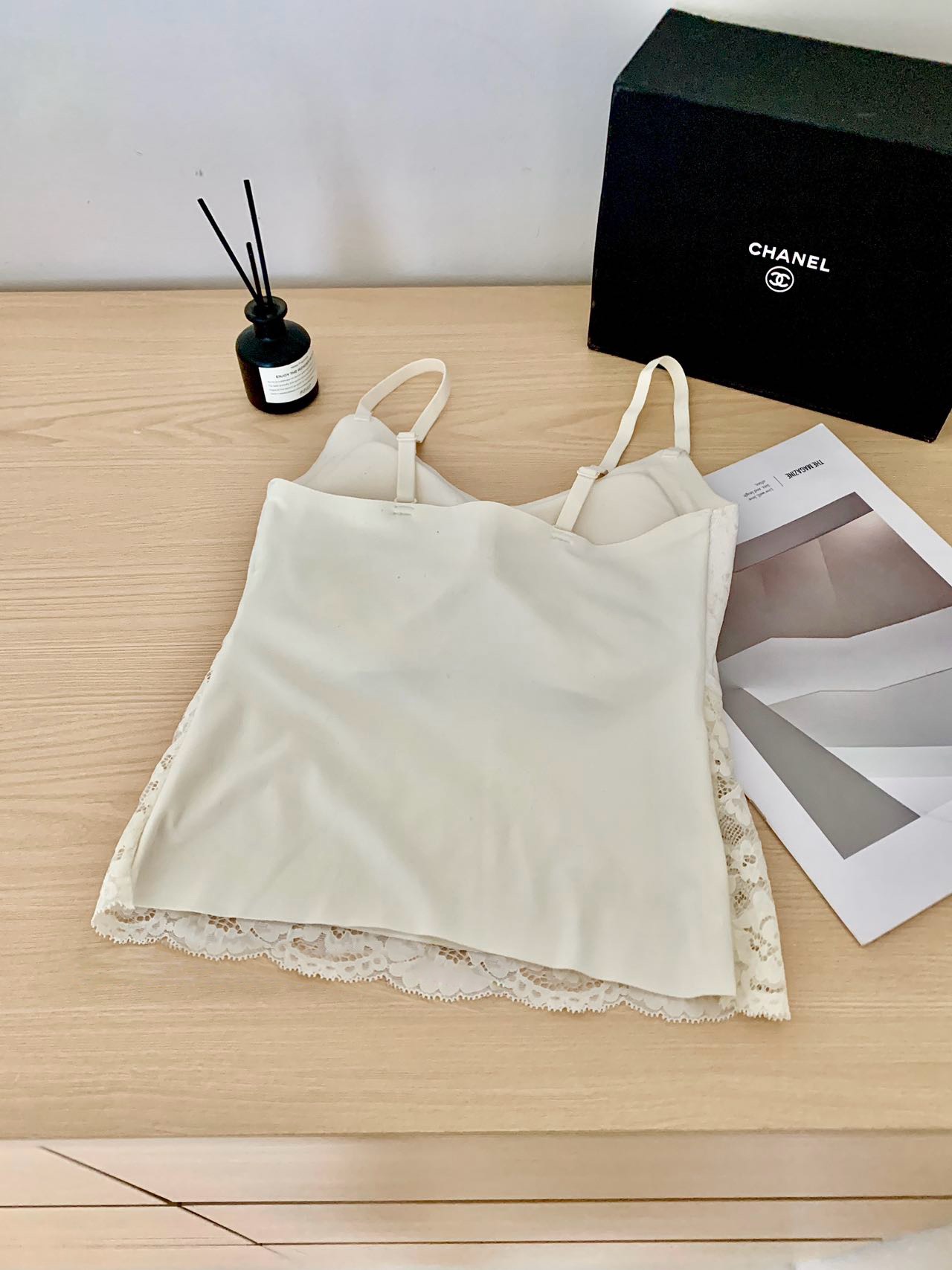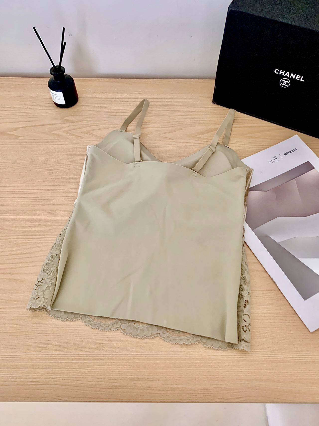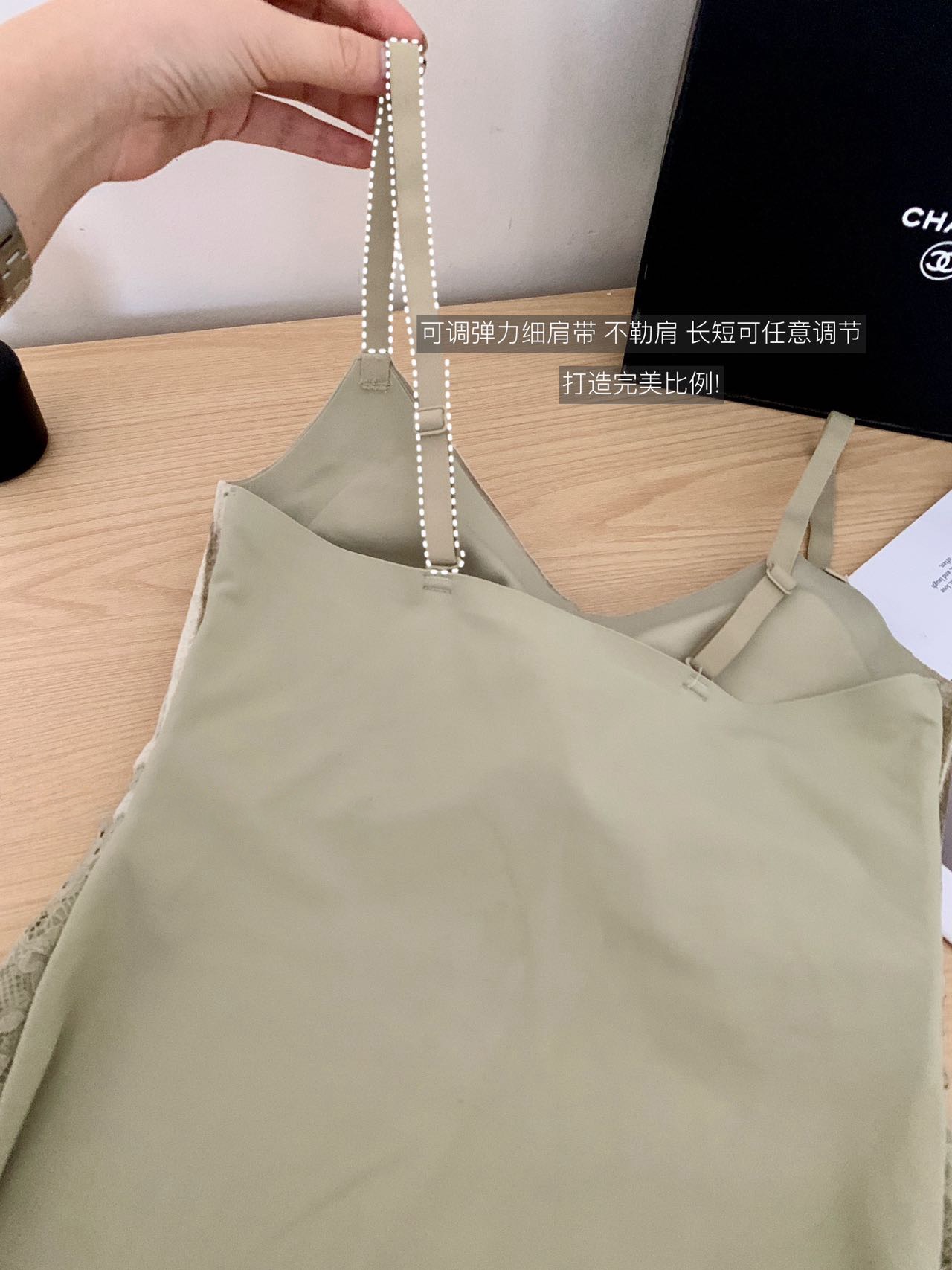 整件弹力很舒适,若有似无的轻盈包裹,微妙地透露出肩颈的优雅,好温柔,自带胸垫设计,是姐妹们都喜欢的。蕾丝性感中带点慵懒,蕾丝部位都有内衬,不会透,而且微微宽松的很遮小肚子,版型 好看,精致又好搭, 性价比nice!!