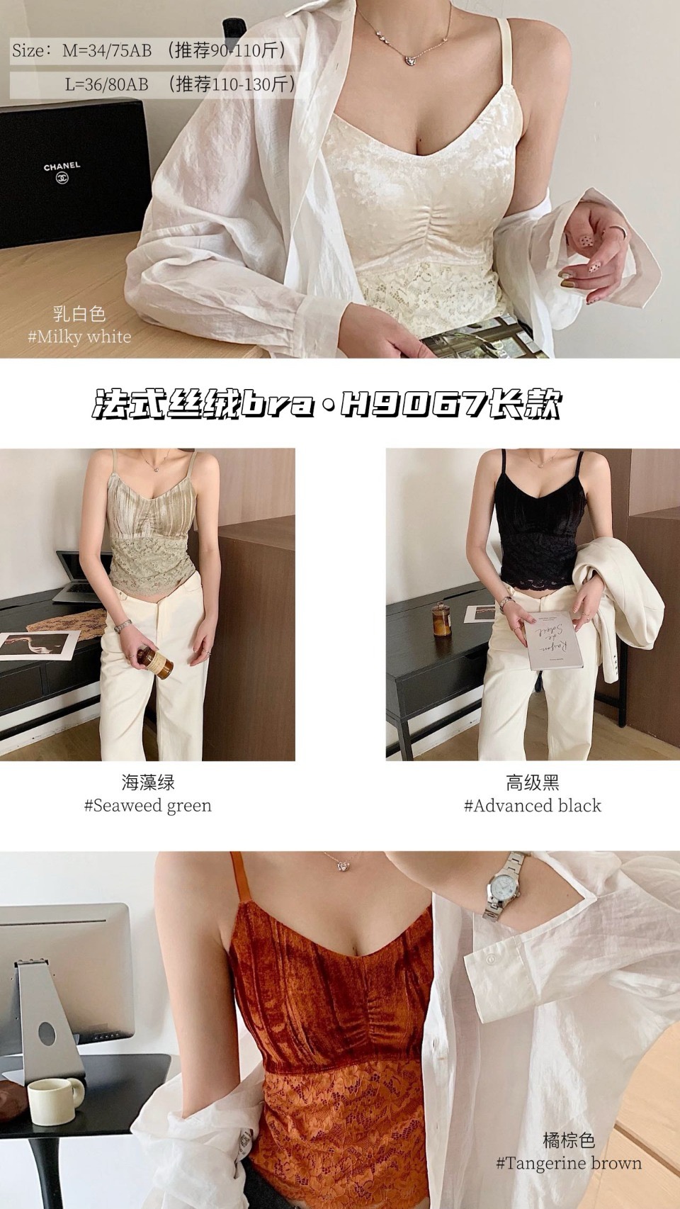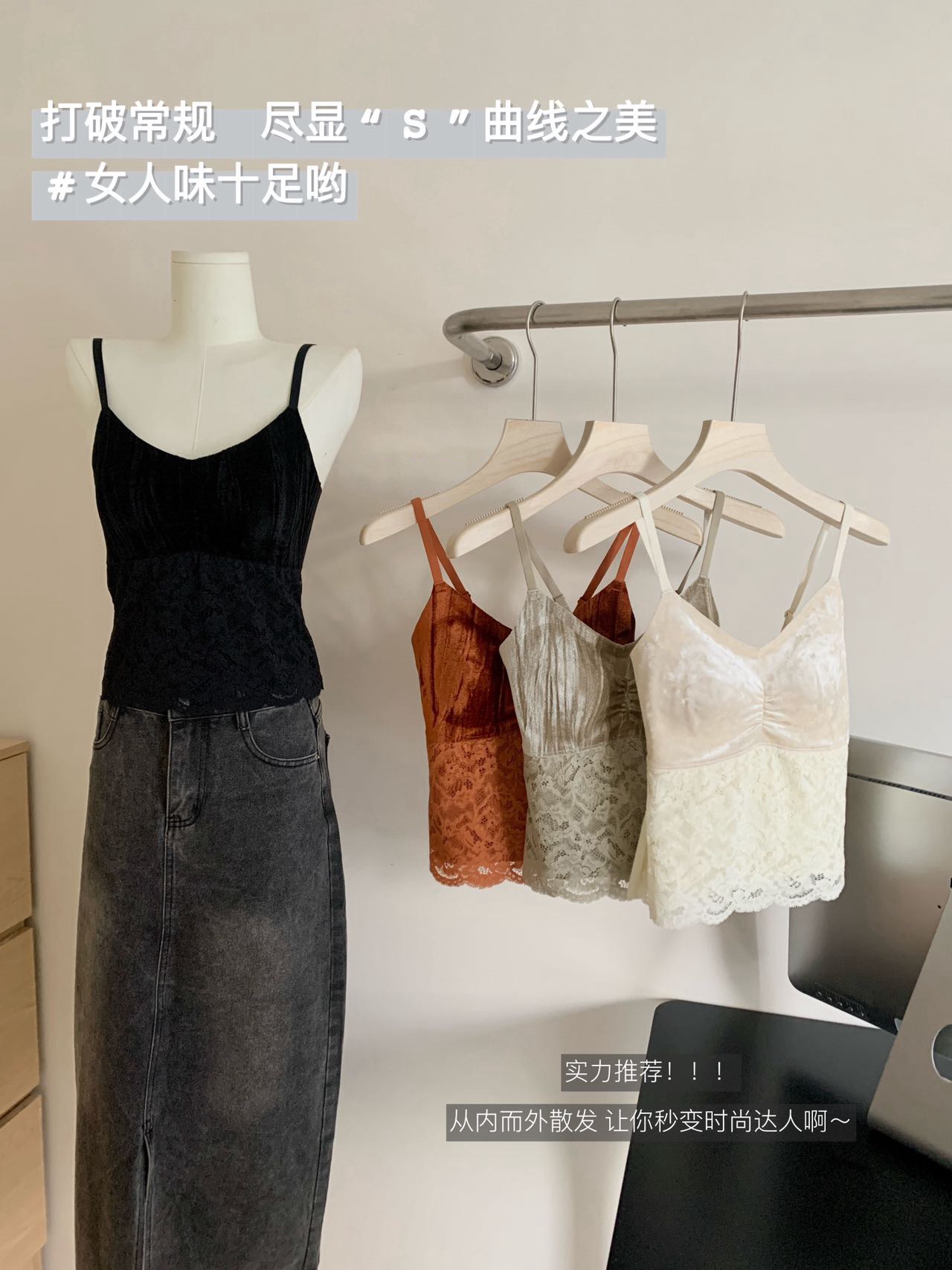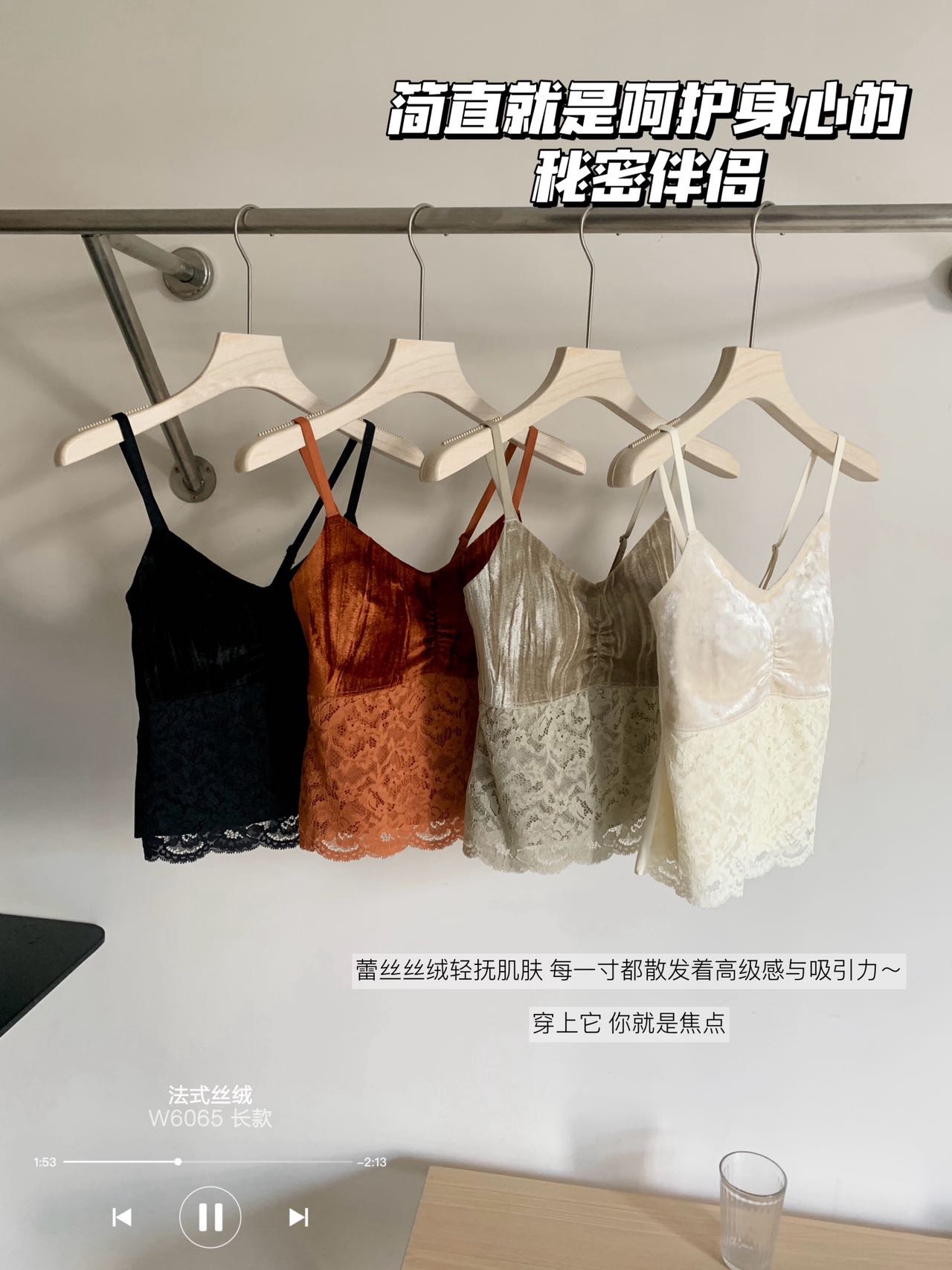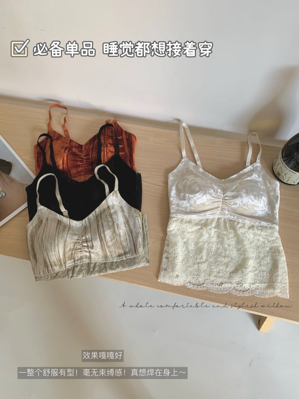 相信吊带衫每个菇凉衣柜都有好多,但这款复古法式丝绒款,一定要拥有!颜色好温柔纯欲, 包容性也炒鸡好~绝美的丝绒材质,软糯灵动,富有奢华gao级光泽感,真的好赞~~