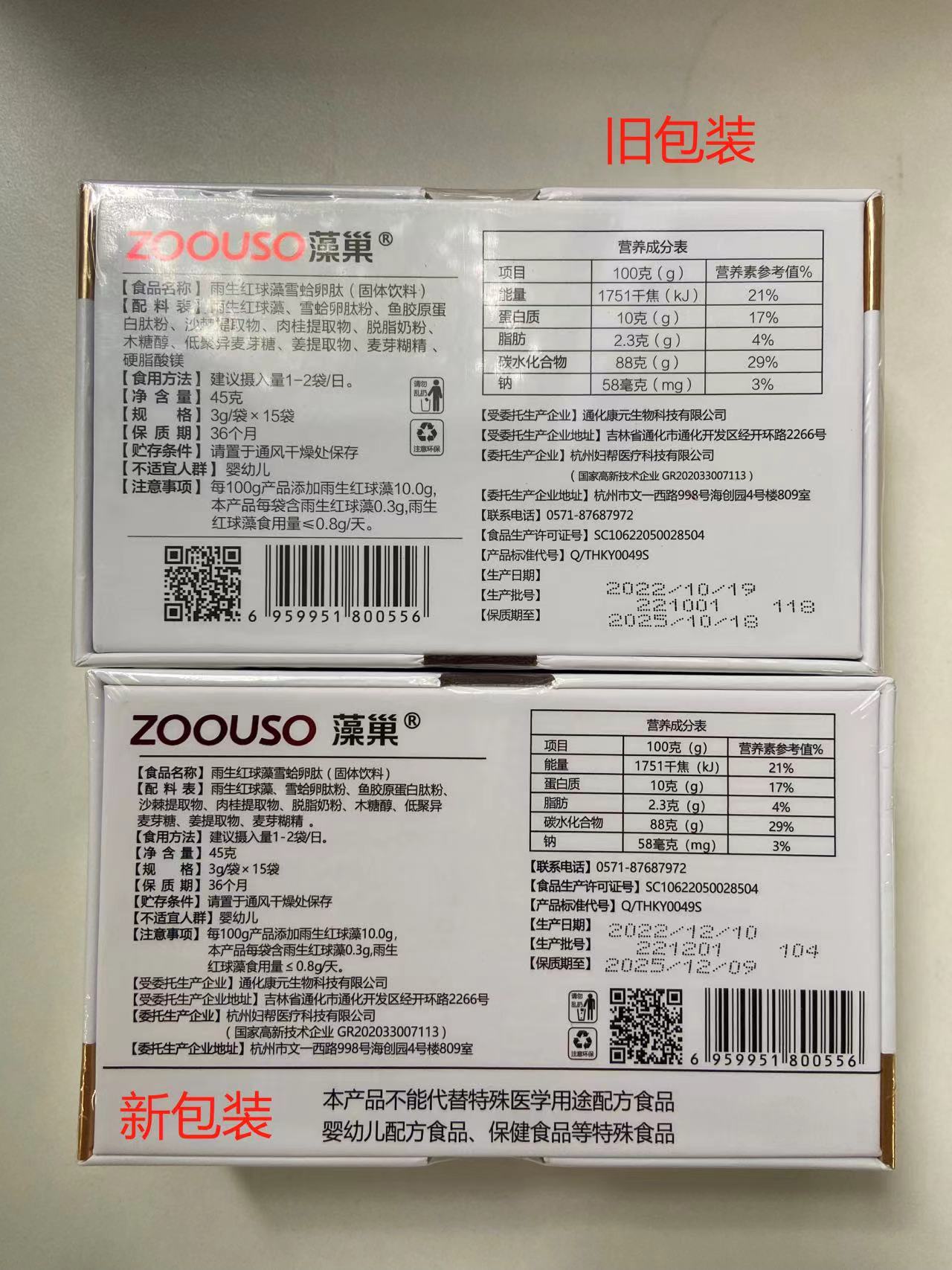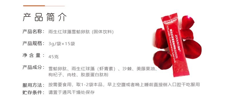 ZOOUSO 雨生红球藻 固体饮料(15包/盒)