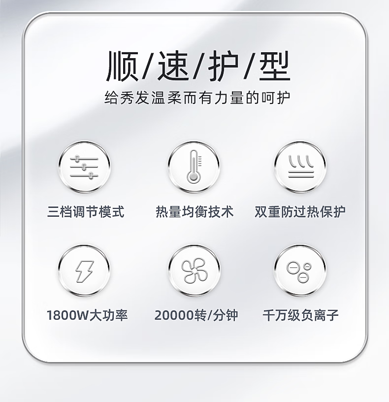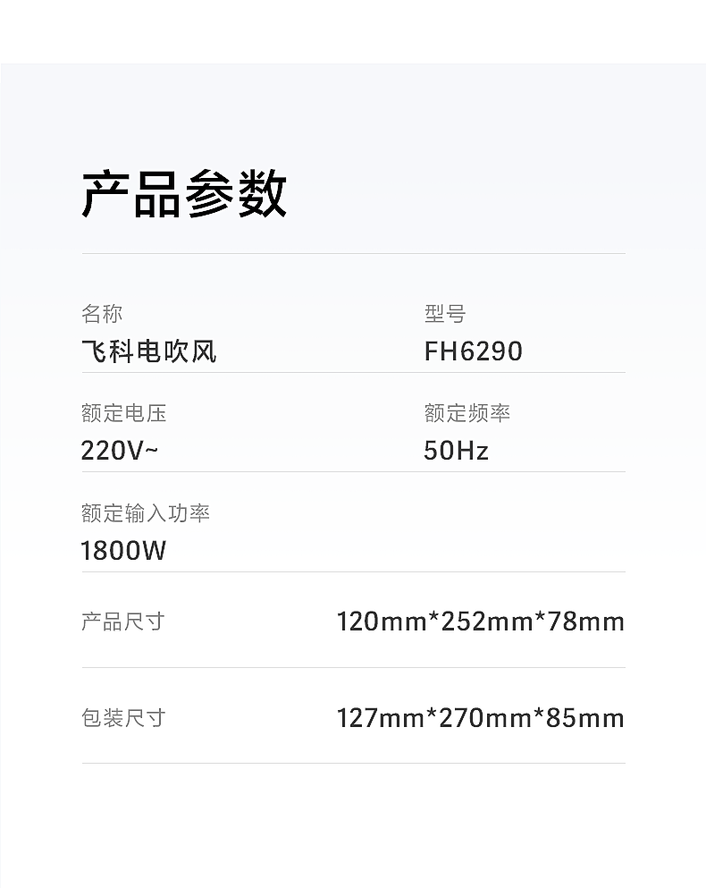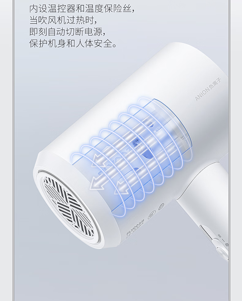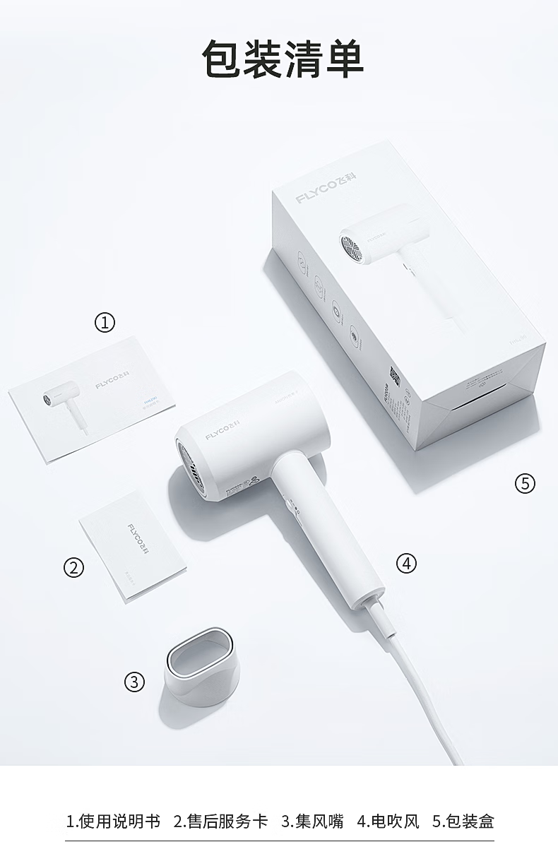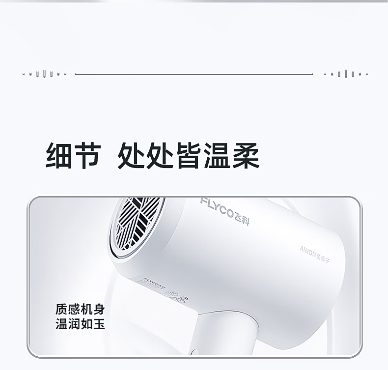 飞科 FLYCO 电吹风机宿舍用 柔风负离子恒温护发 家用冷热大风量快速干发吹风筒FH6290 1800W