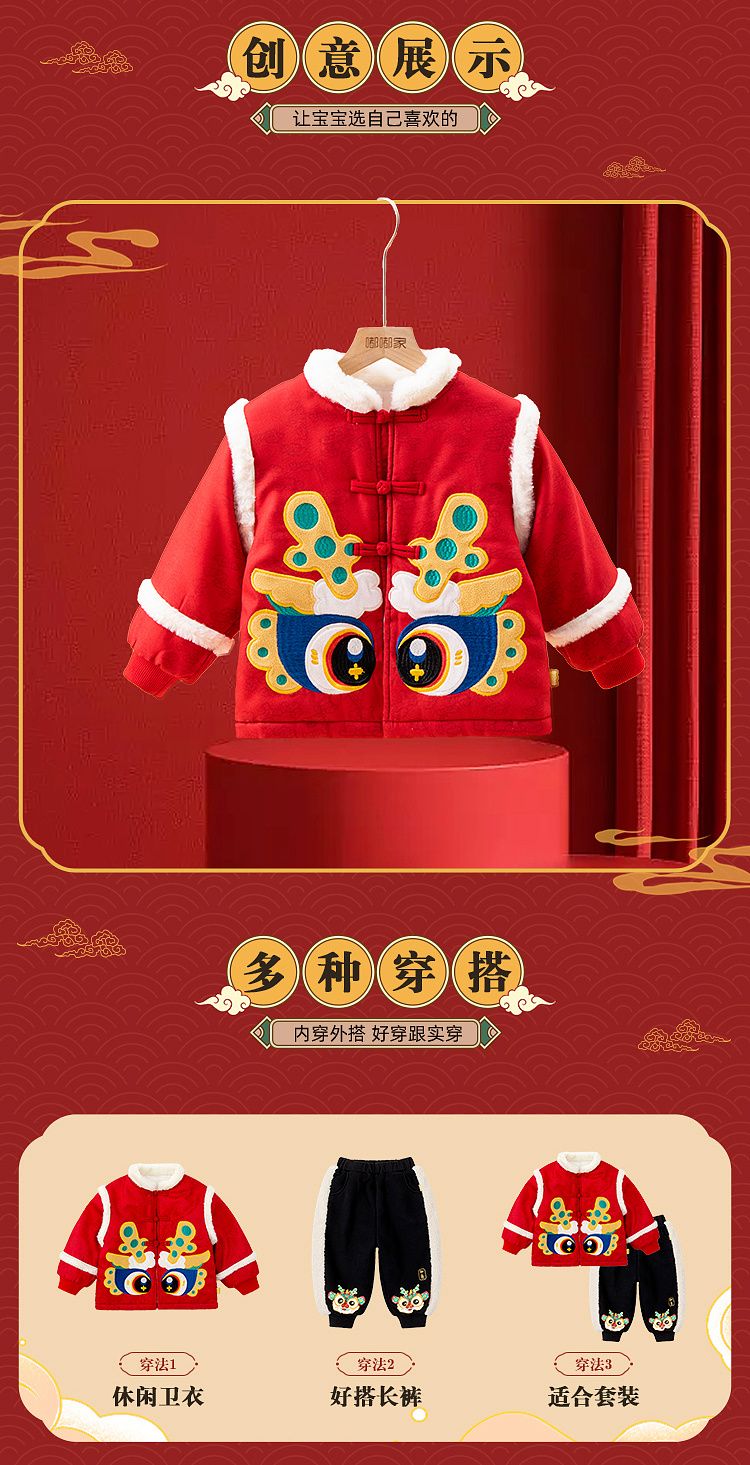 【清仓】嘟嘟家宝宝新年衣服冬季男童加厚拜年服女童过年服儿童中国风童装