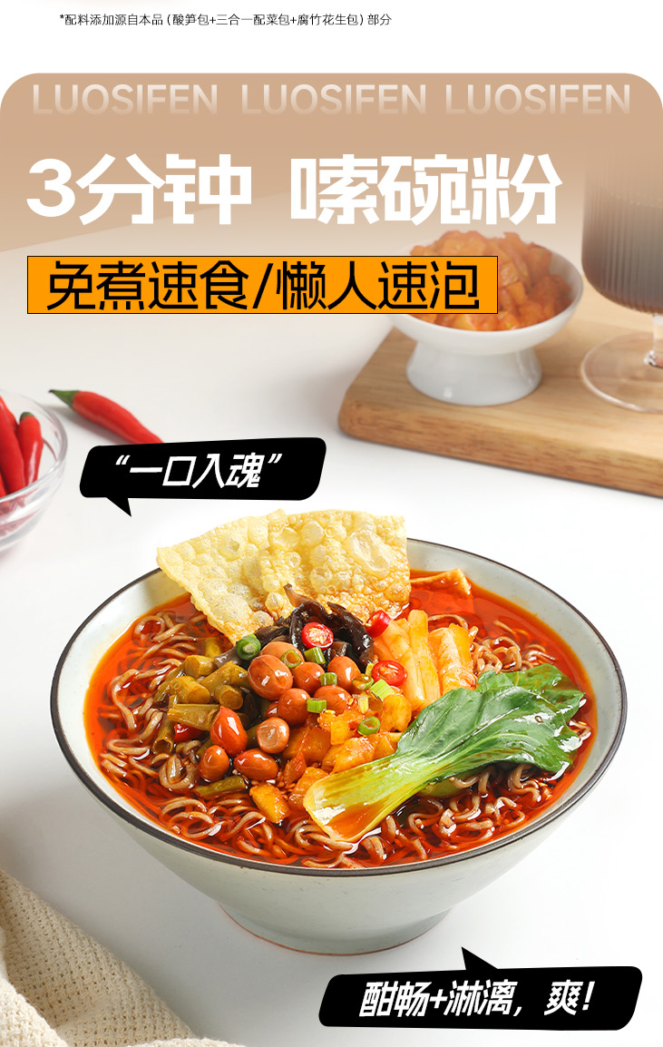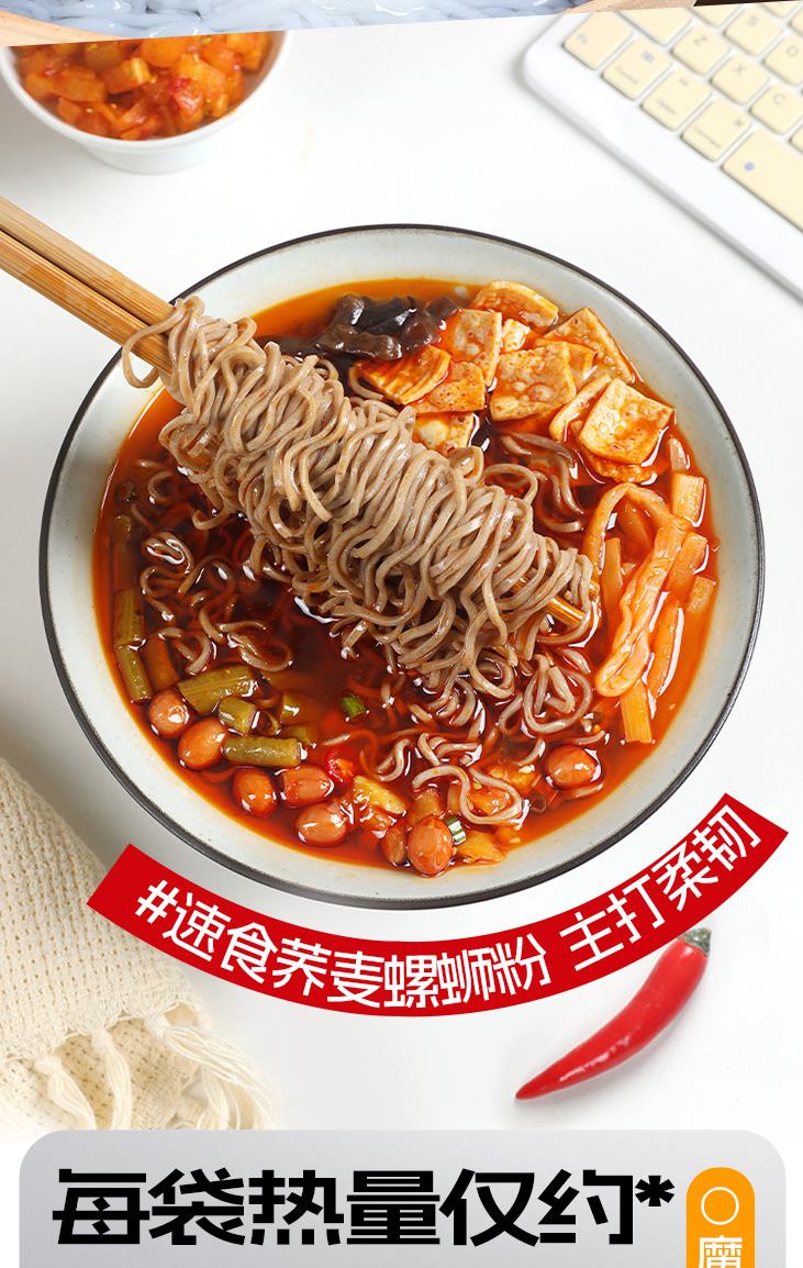 ②将荞麦螺蛳面调料包拆袋倒入盛有荞麦面的碗中,并加入250mL-300mL开水(≥85℃),扣上碗盖静置一至二分钟