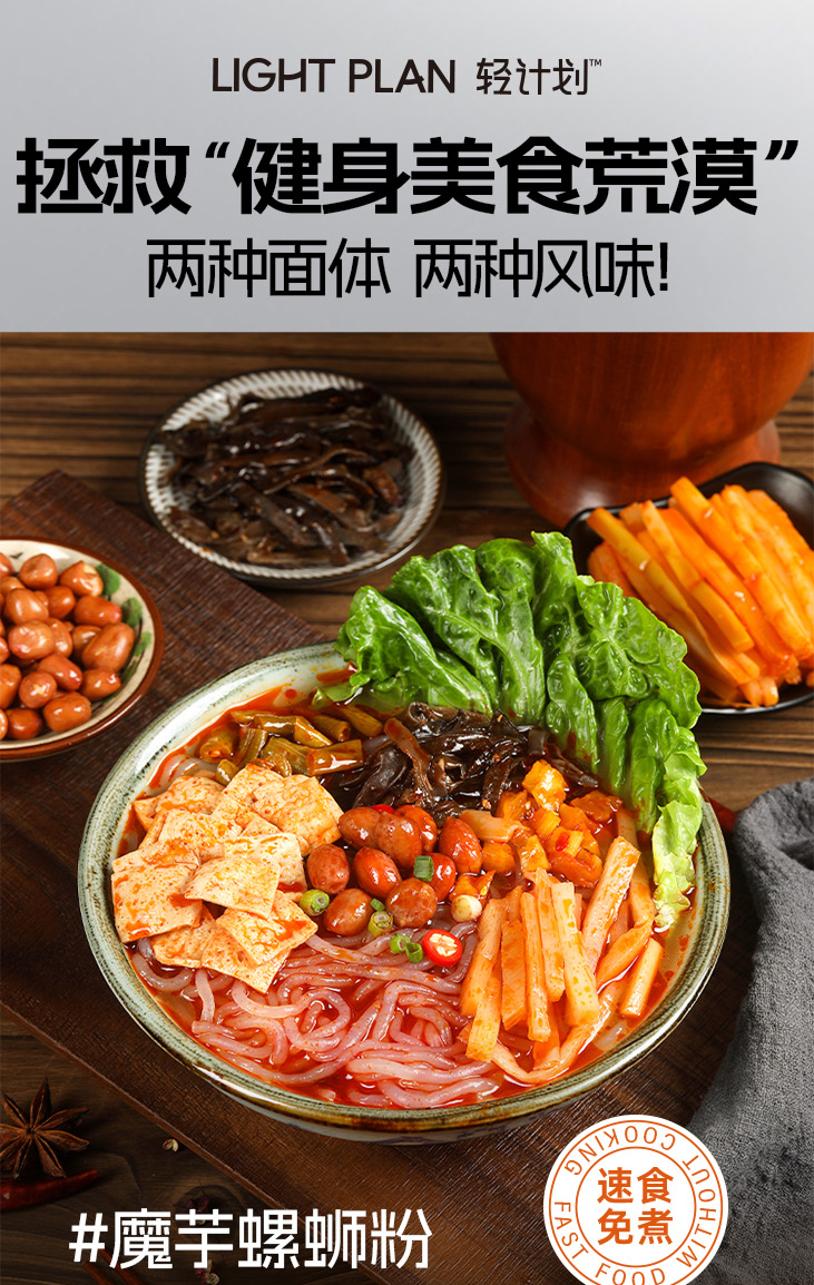 ②将调料包(共计六小袋)拆袋倒入盛有魔芋粉的碗中,并加入约250mL开水(95℃以上)