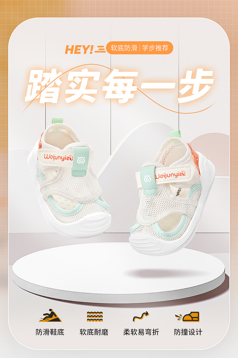 炜俊亿足学步鞋男宝宝凉鞋夏季网面婴儿凉鞋软底岁女童鞋机能凉鞋
