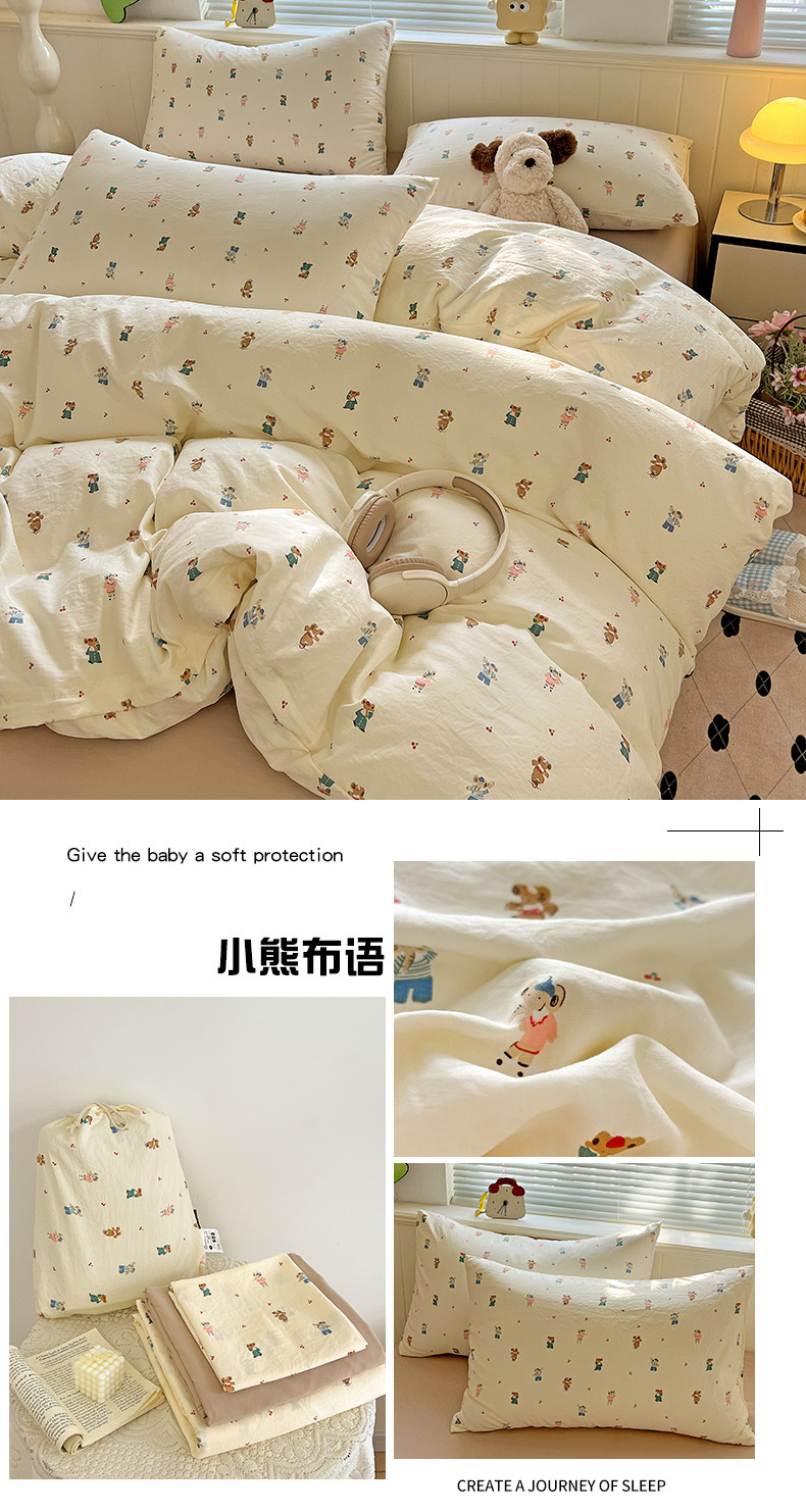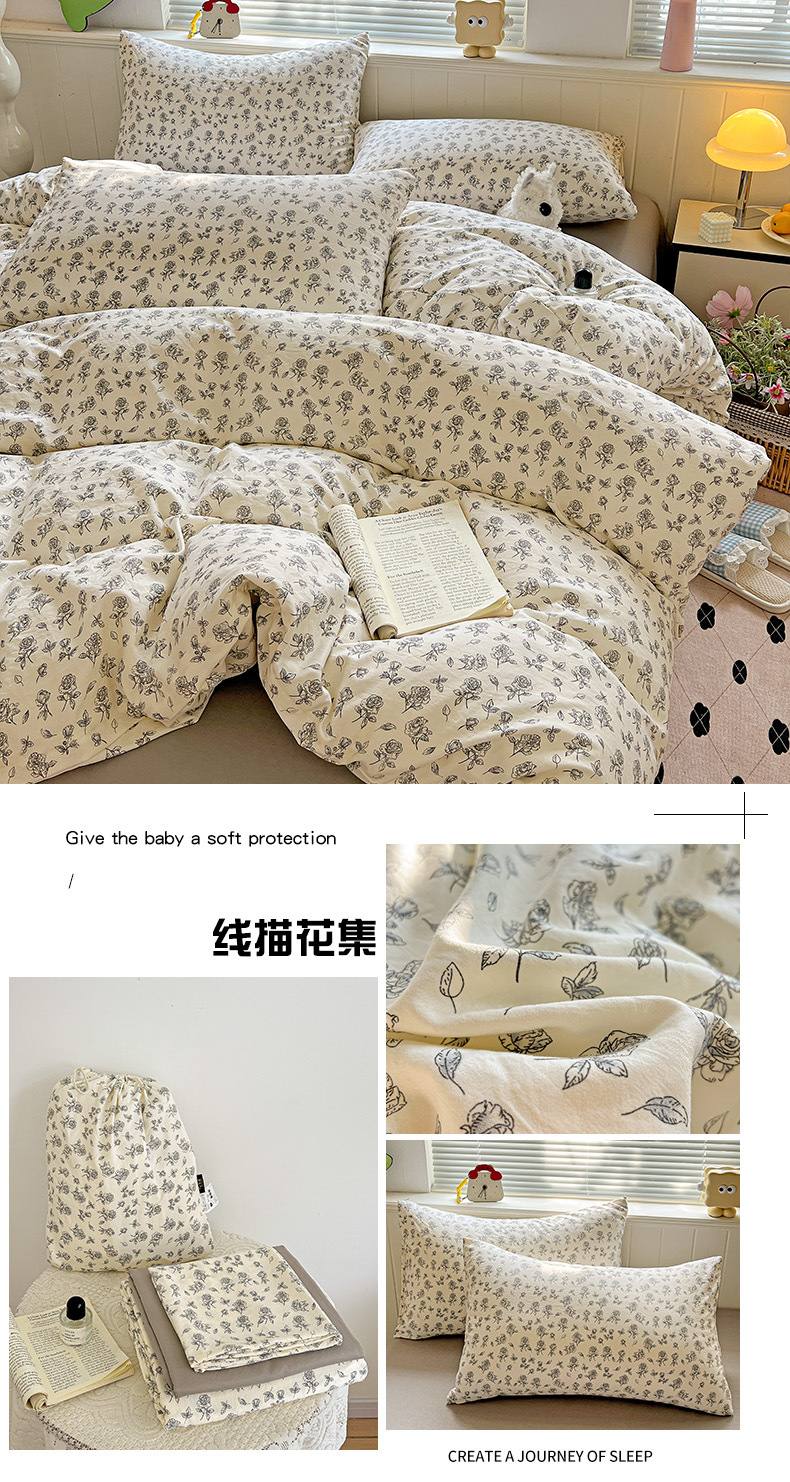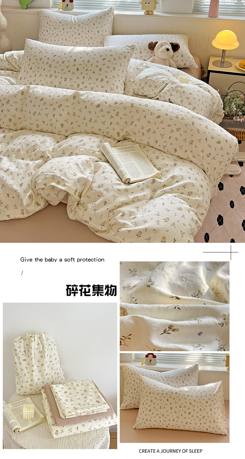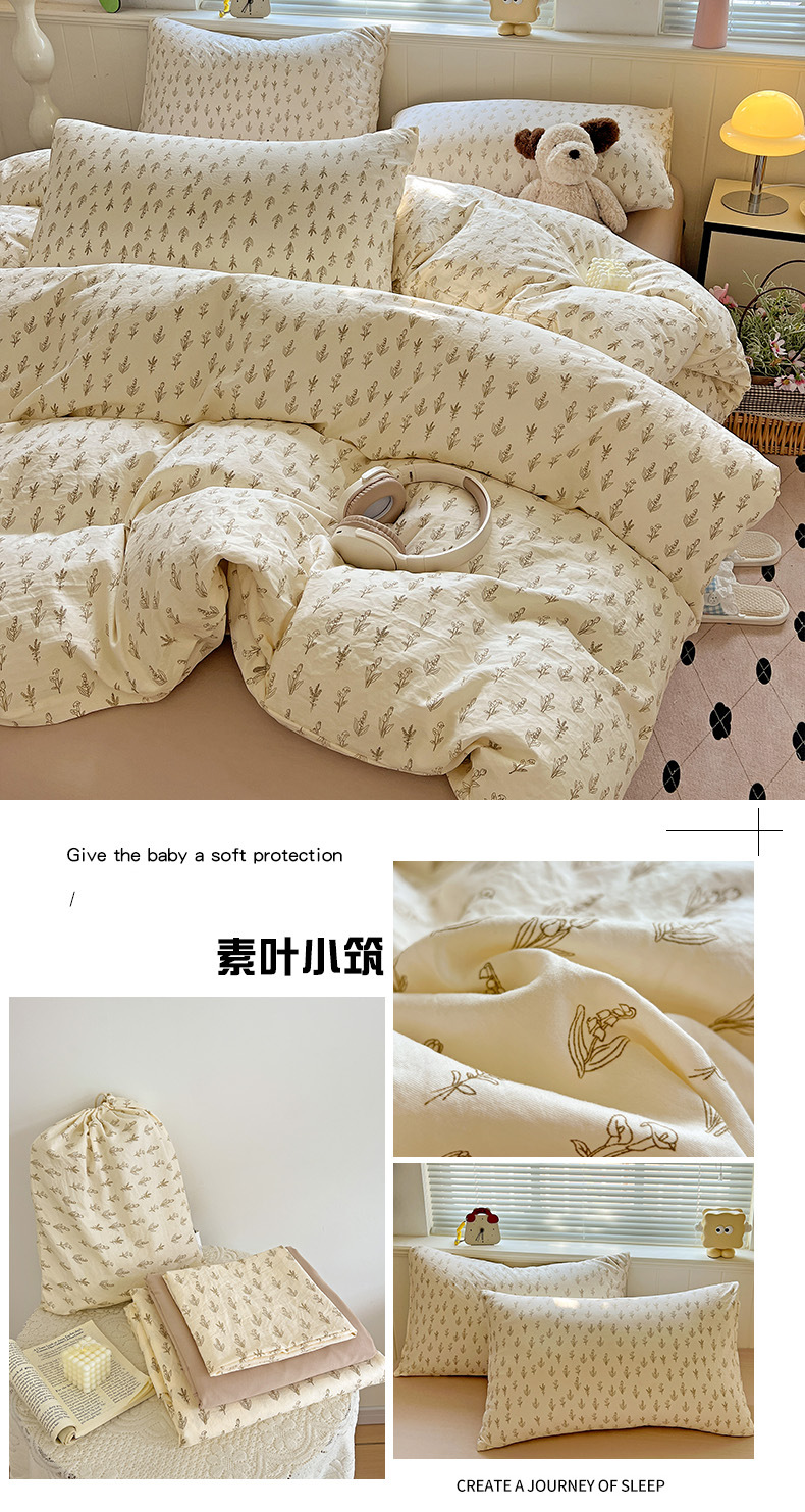 【A类母婴级40支四件套】夏季韩系古法水洗棉四件套被套床单床笠