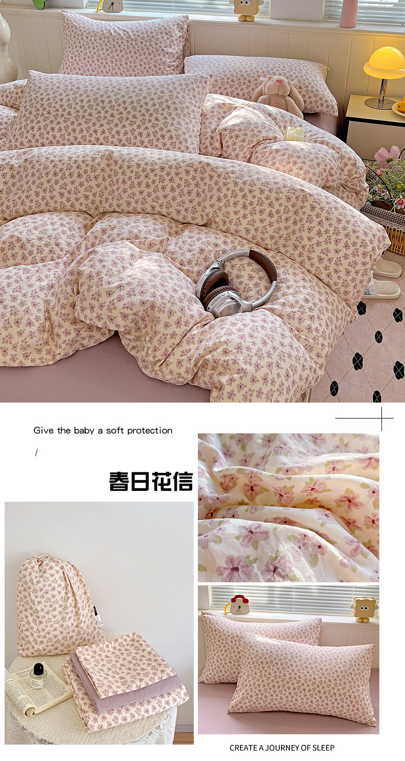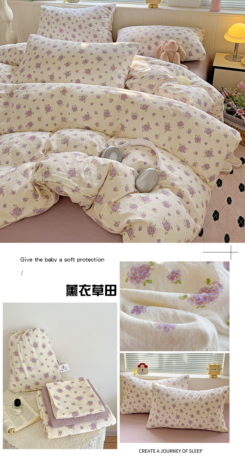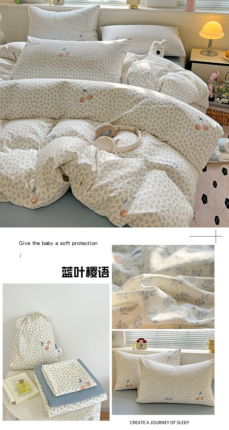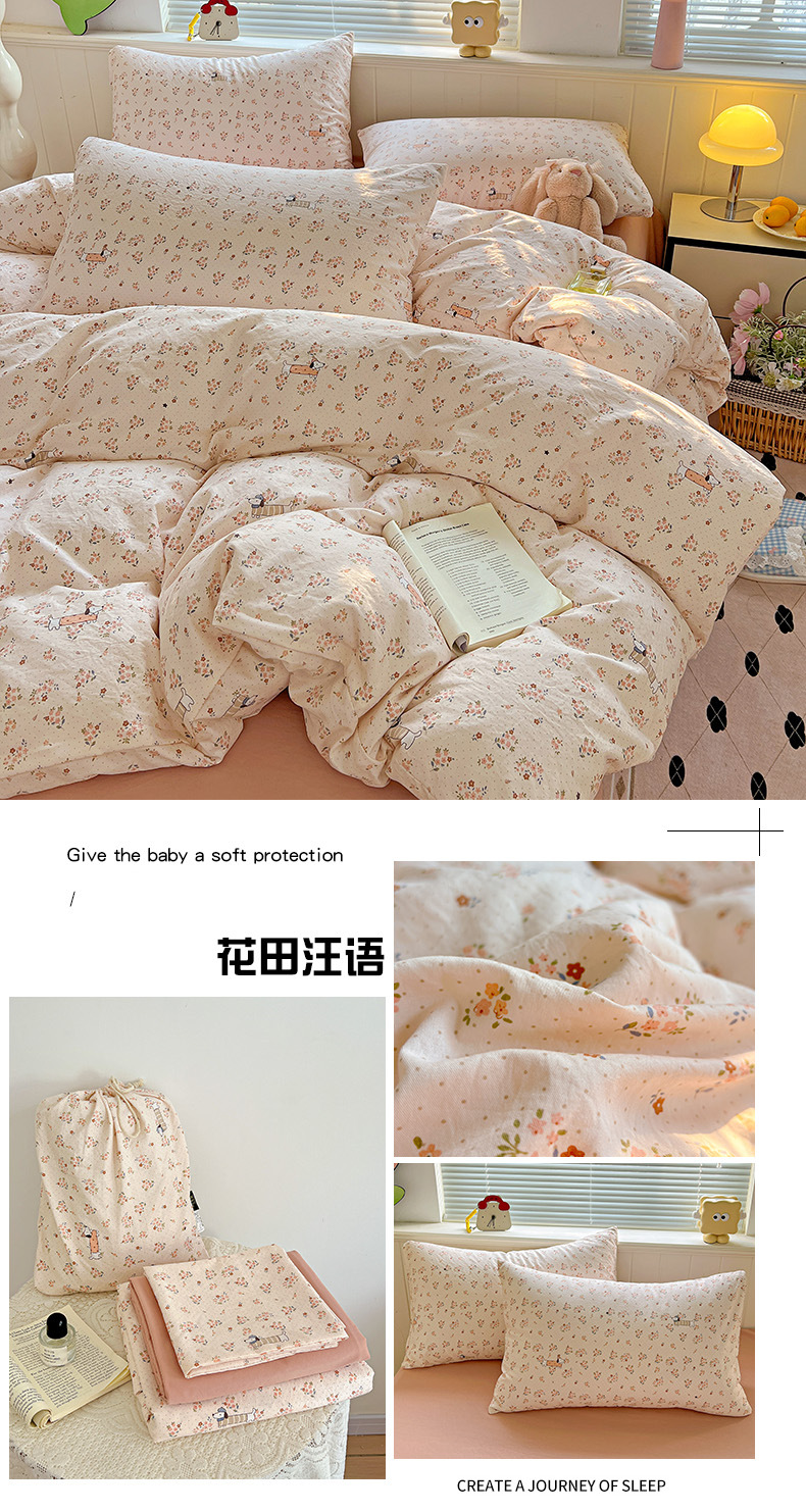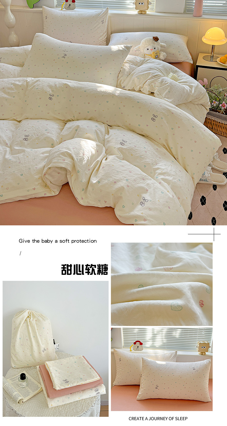 【A类母婴级40支四件套】夏季韩系古法水洗棉四件套被套床单床笠