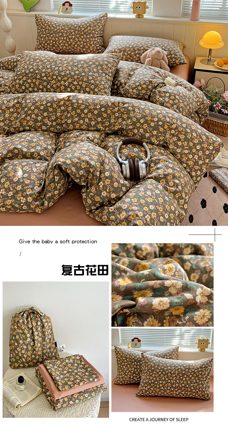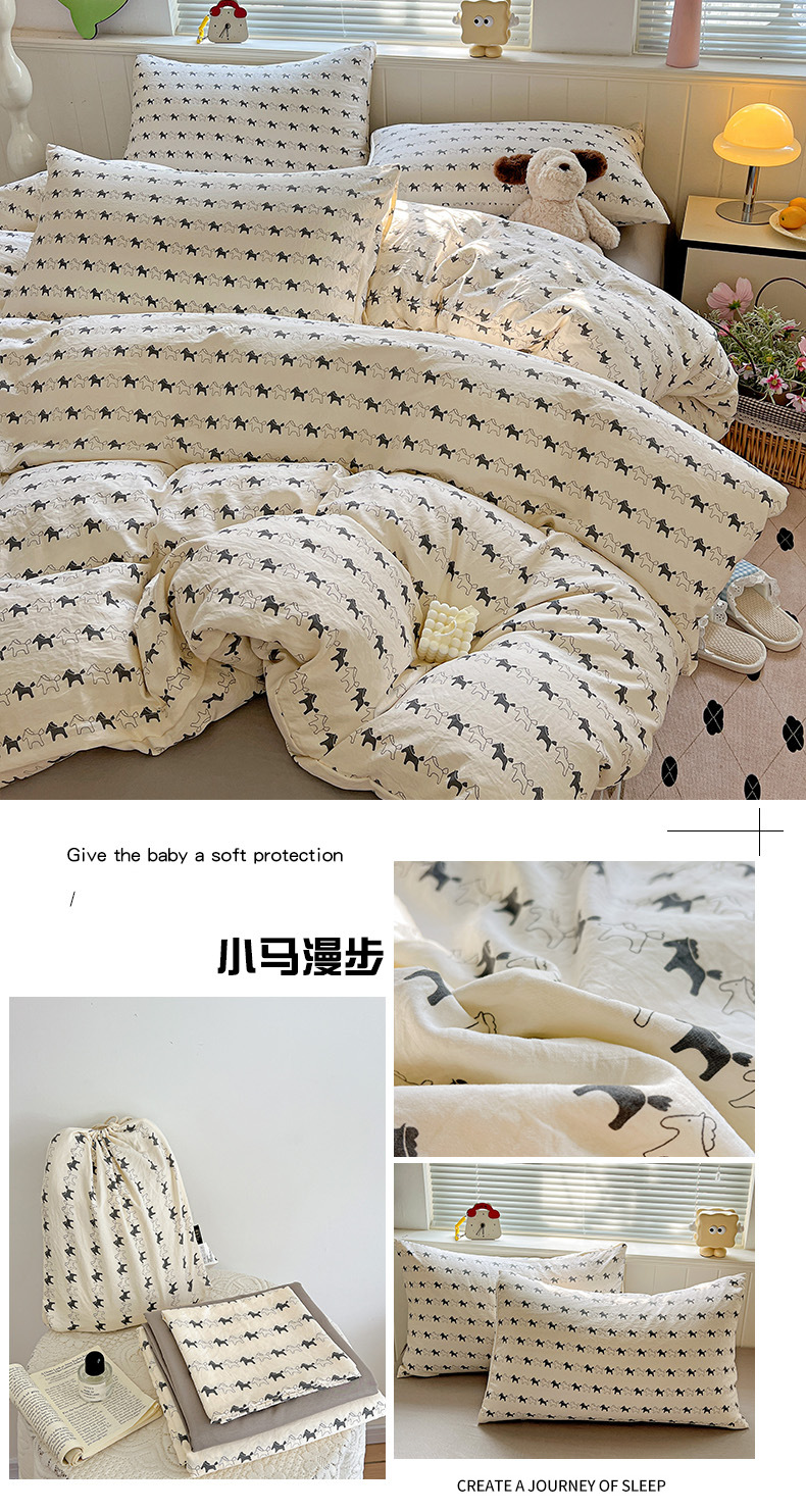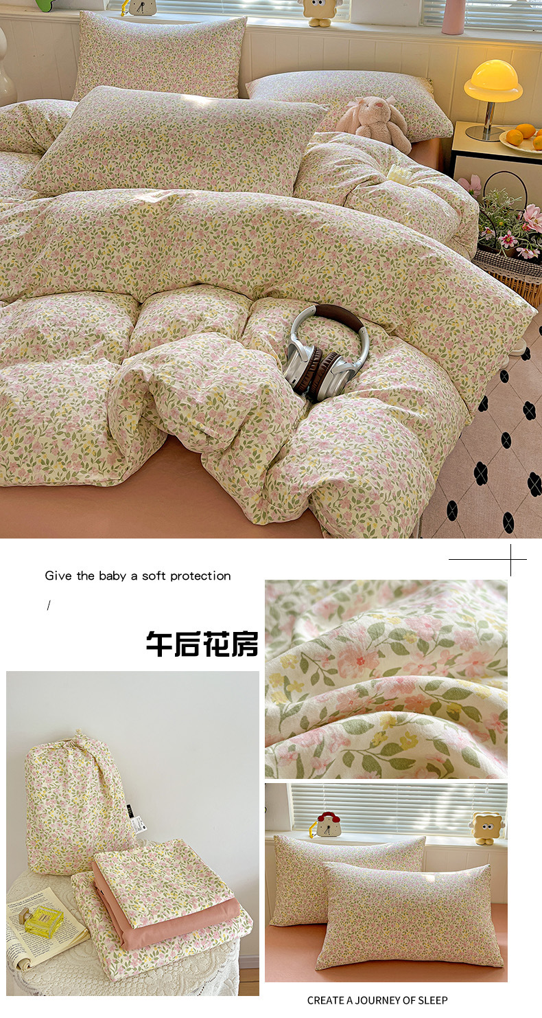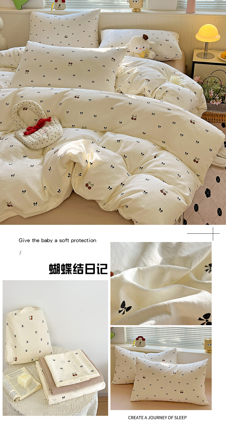【A类母婴级40支四件套】夏季韩系古法水洗棉四件套被套床单床笠