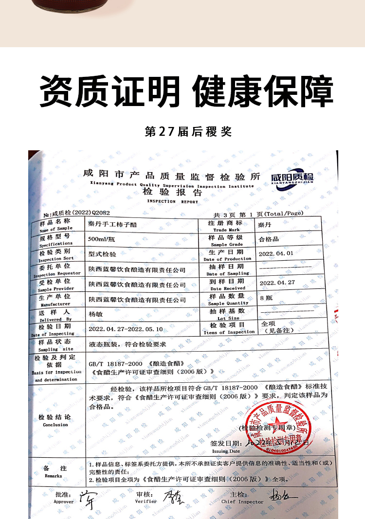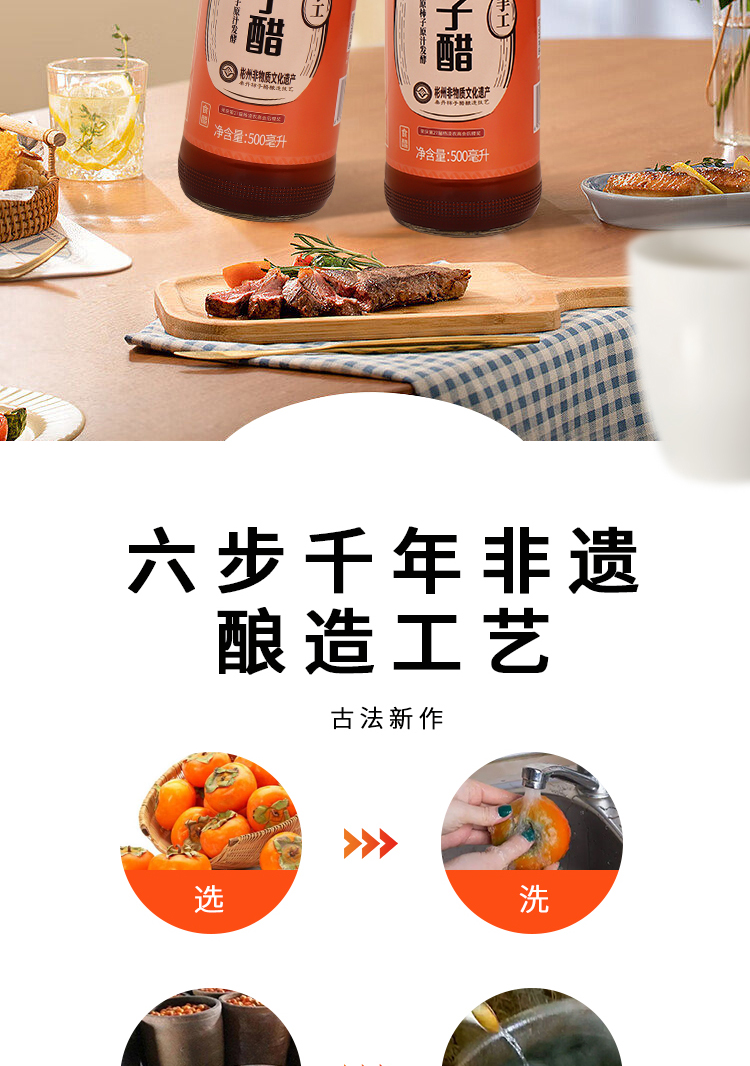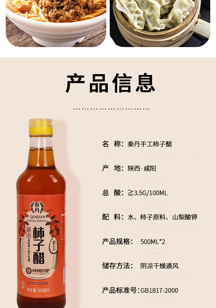 【秦丹】手工柿子醋 非遗酿造技艺 鲜柿酿 绿色营养 500ML*2瓶