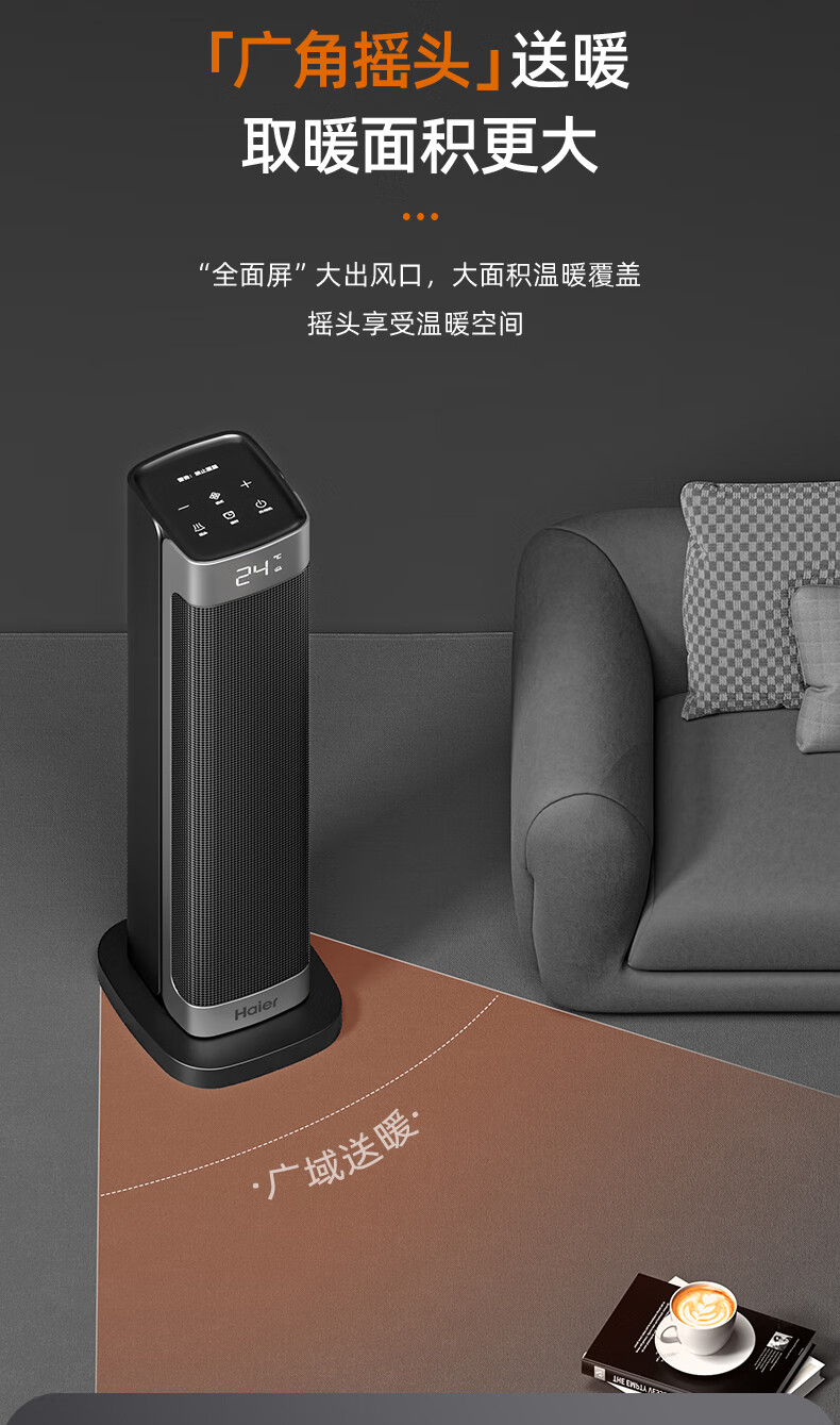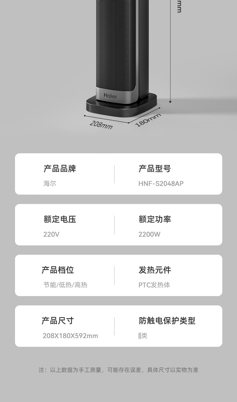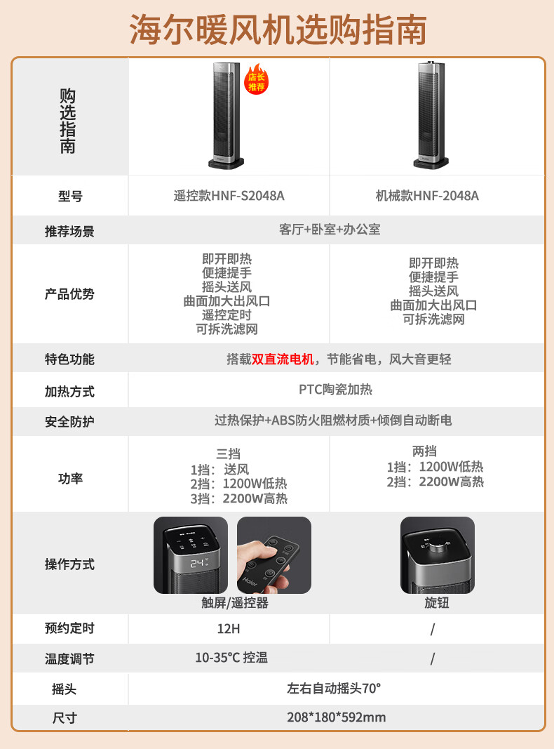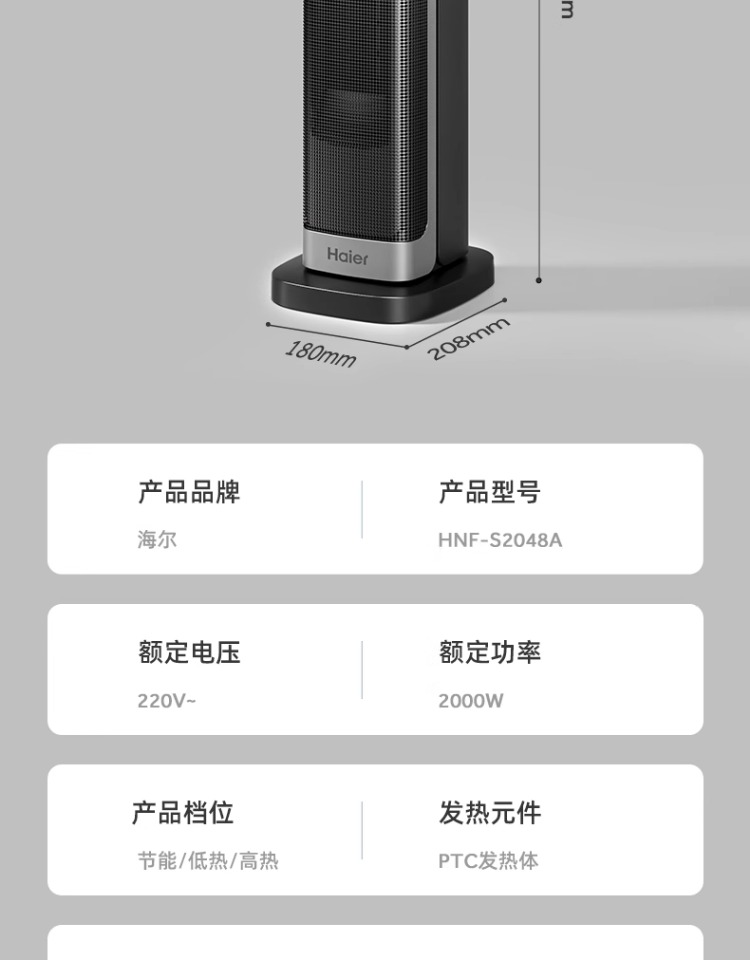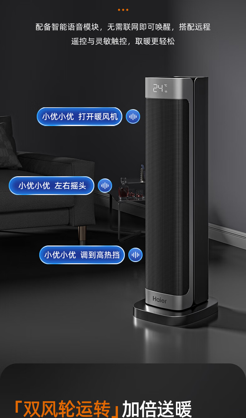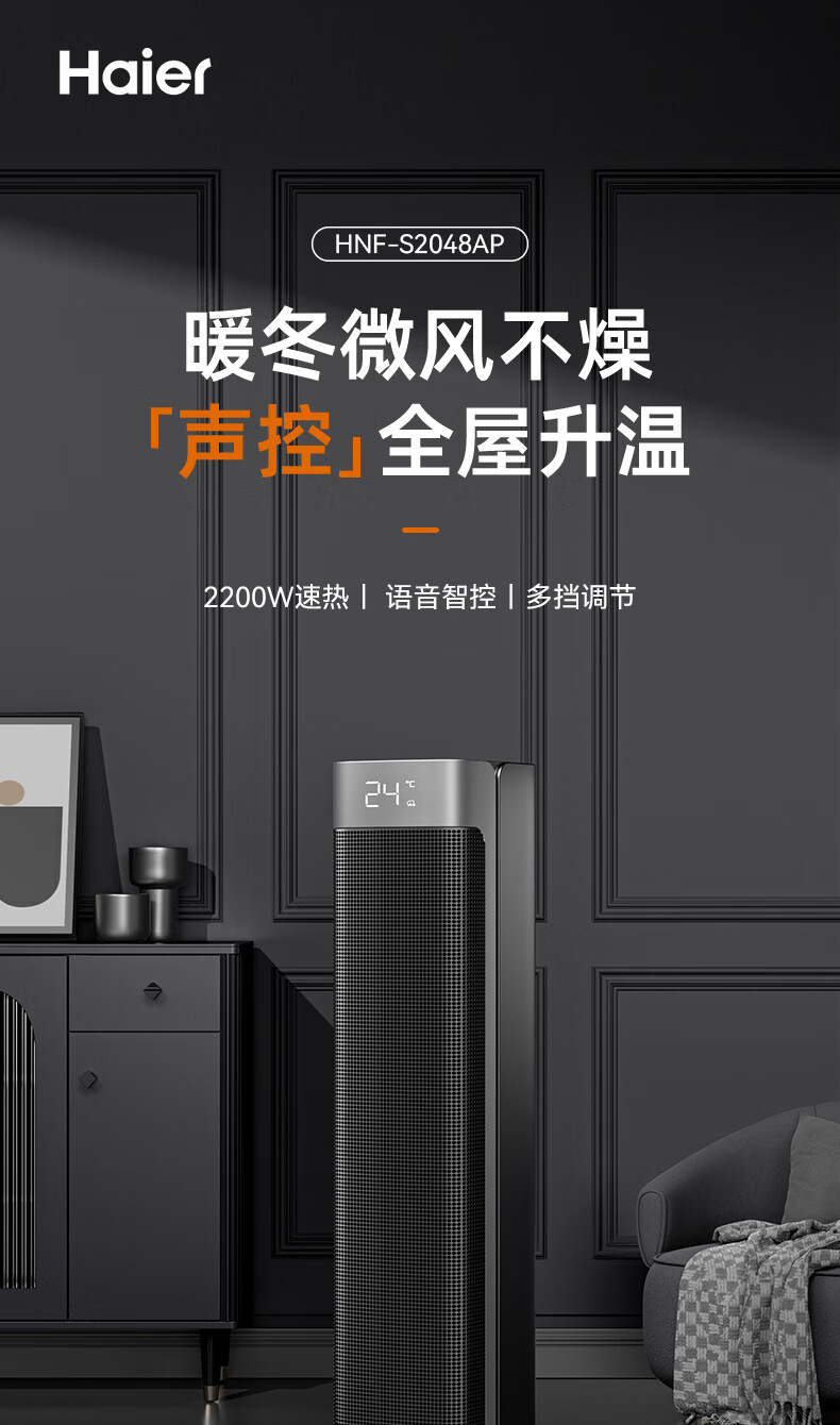 海尔(Haier)取暖器2048A家用立式智能恒温省电暖风机电暖气电暖器小太阳家用烤火器浴室热风机低噪卧室速热婴儿可用 【恒温省电/直流双风机】