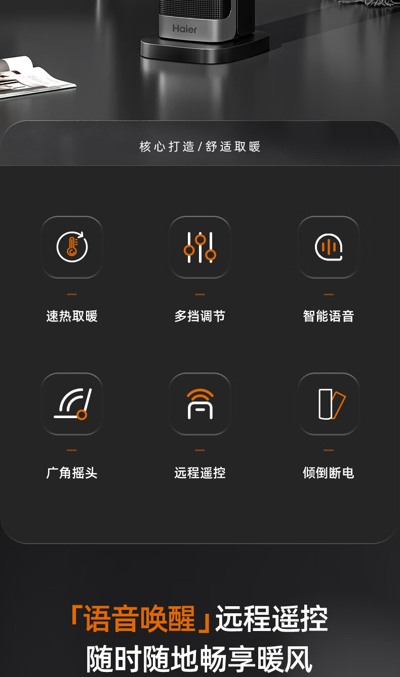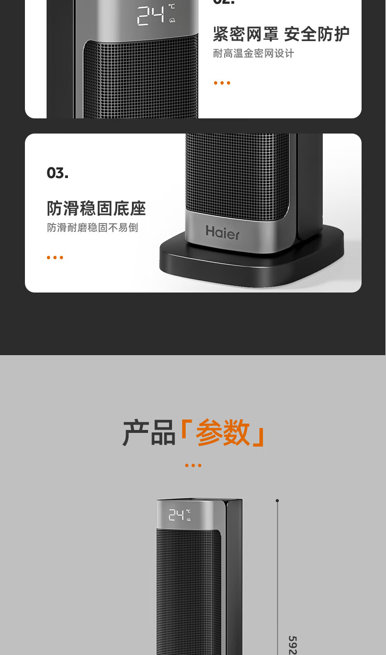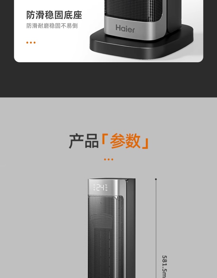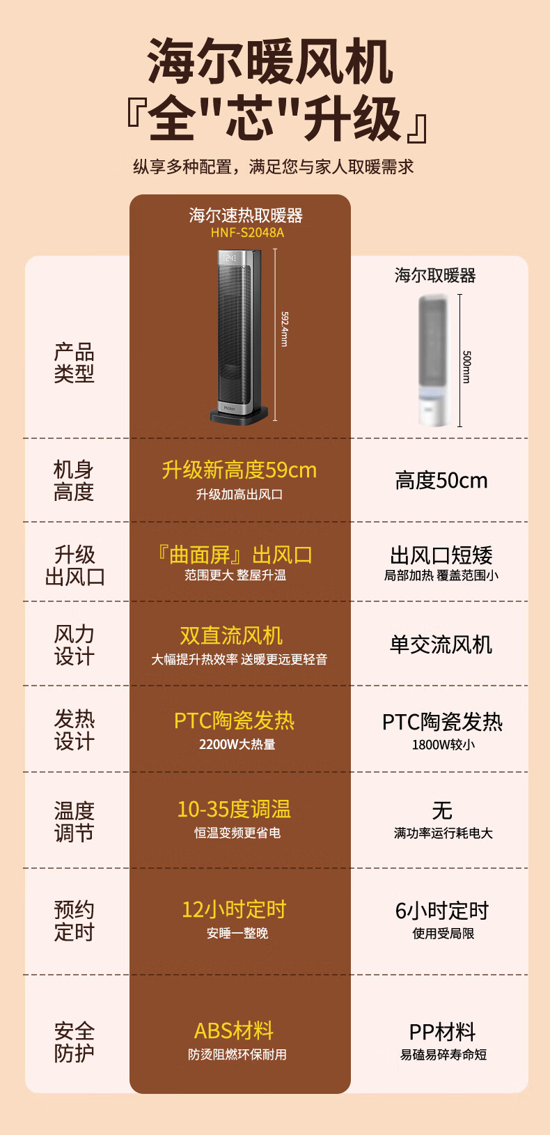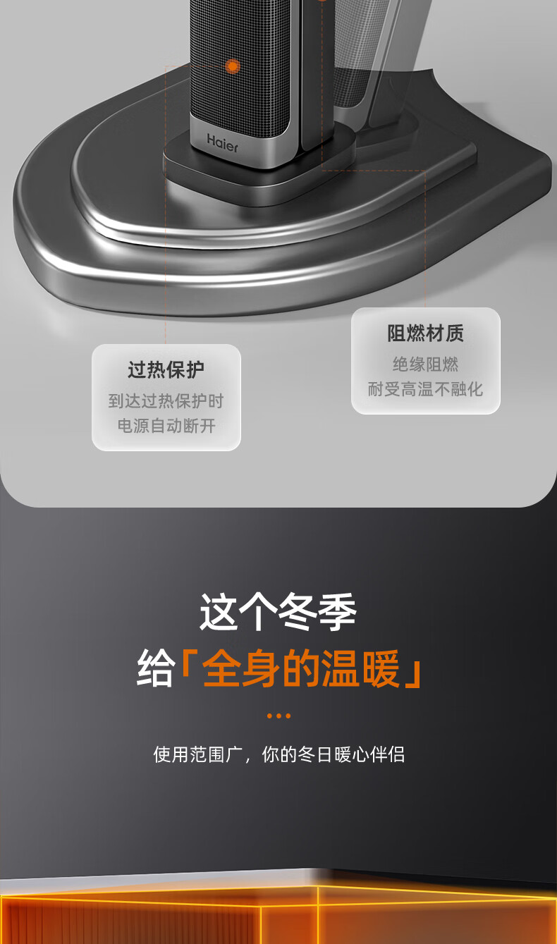 海尔(Haier)取暖器2048A家用立式智能恒温省电暖风机电暖气电暖器小太阳家用烤火器浴室热风机低噪卧室速热婴儿可用 【恒温省电/直流双风机】
