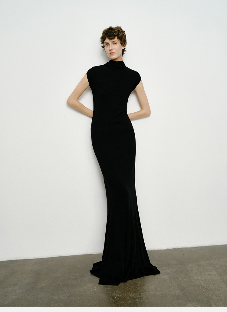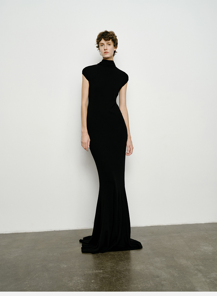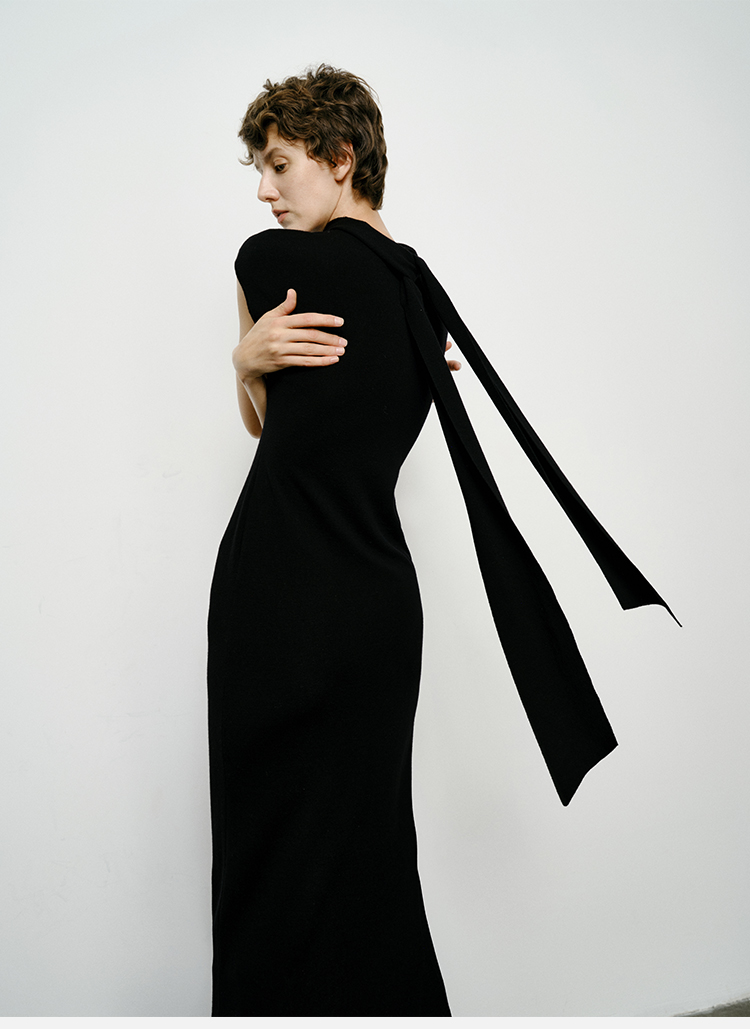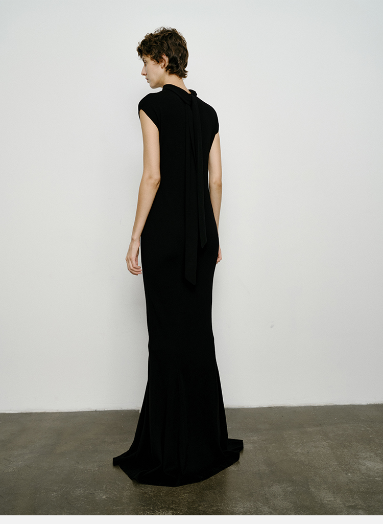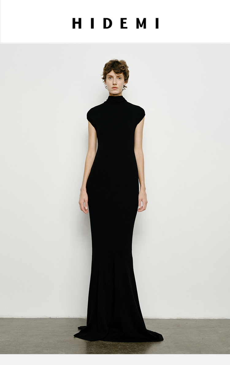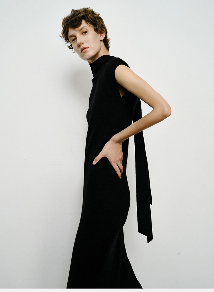 HIDEMI 澳洲美利奴羊毛弹力显瘦收身设计感围巾系带式连衣裙长裙