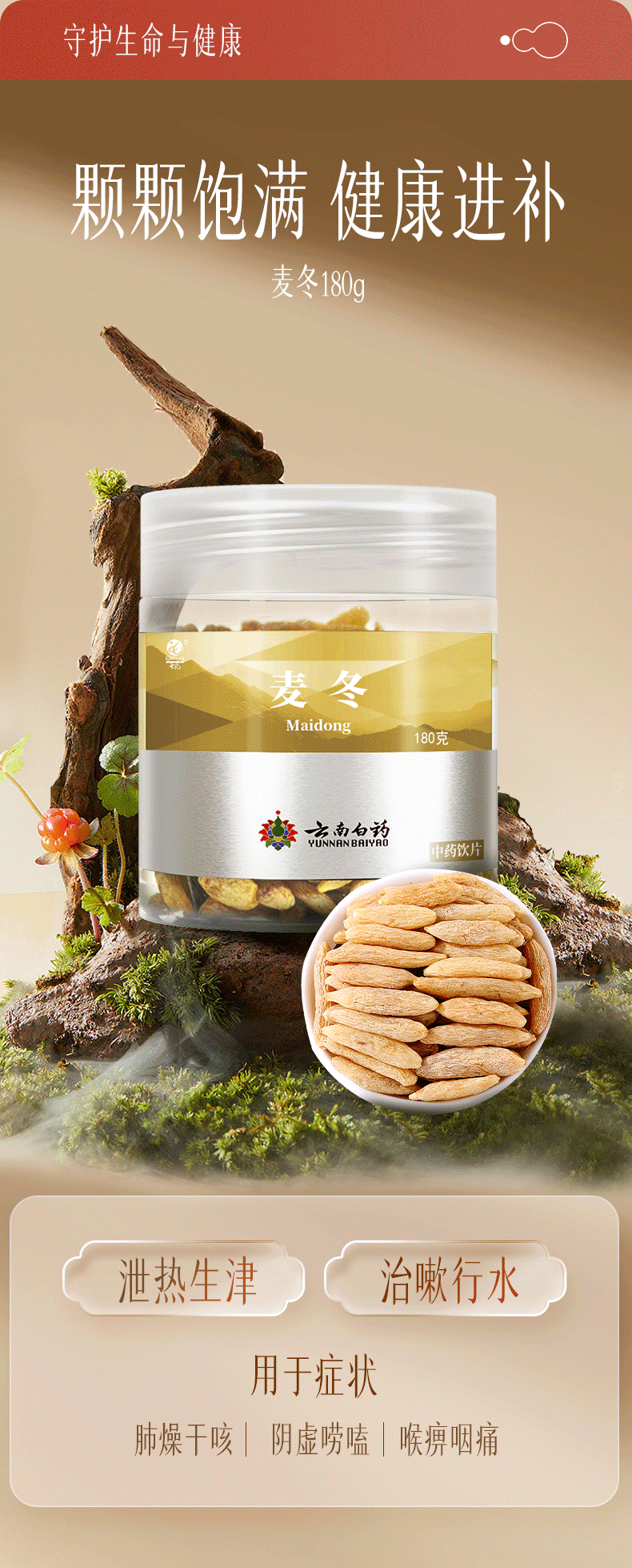 【官方正品】云南白药七花麦冬180g道地中药材饱满厚实大粒泡水煲汤清心