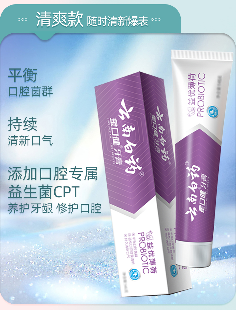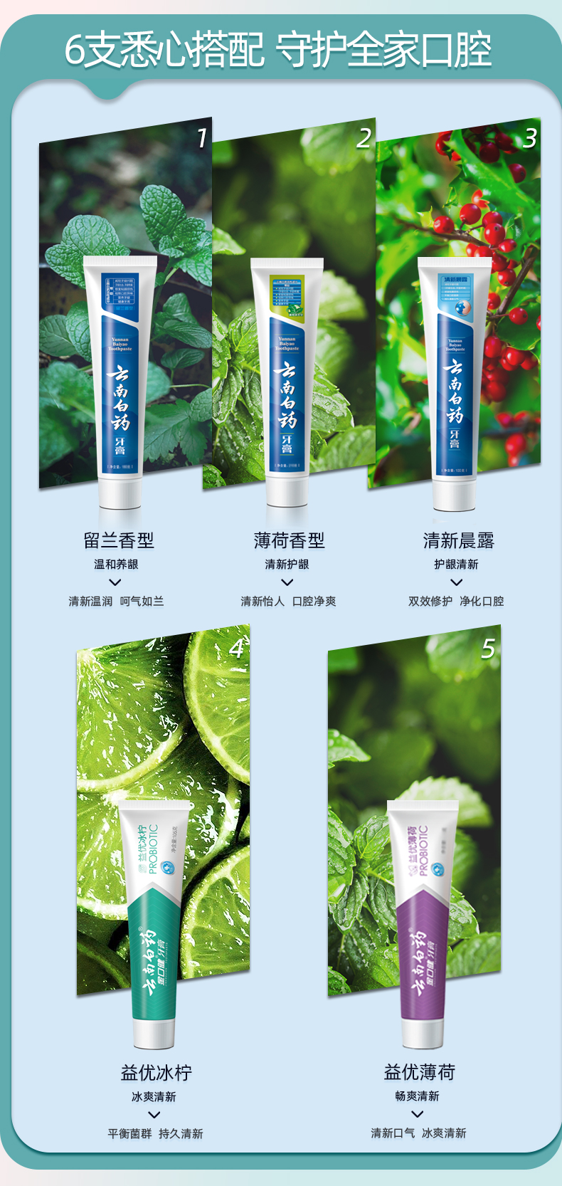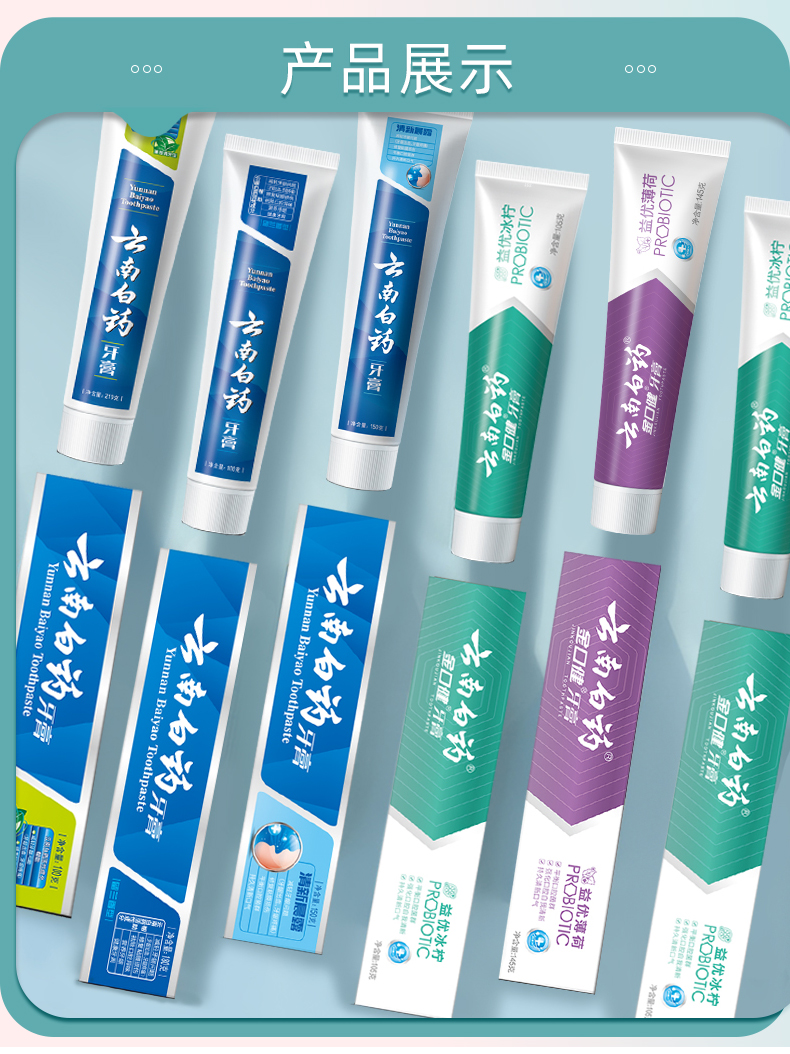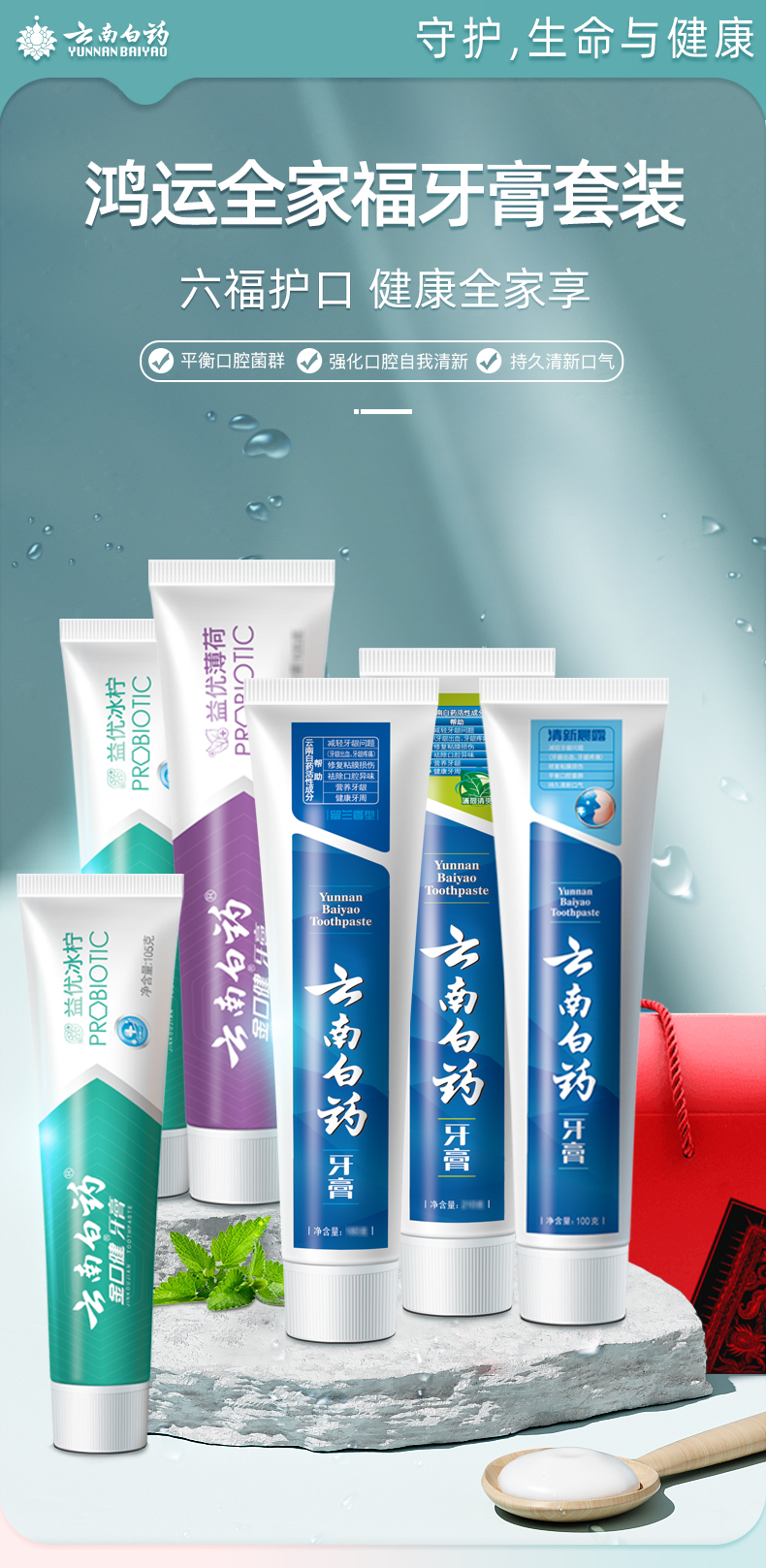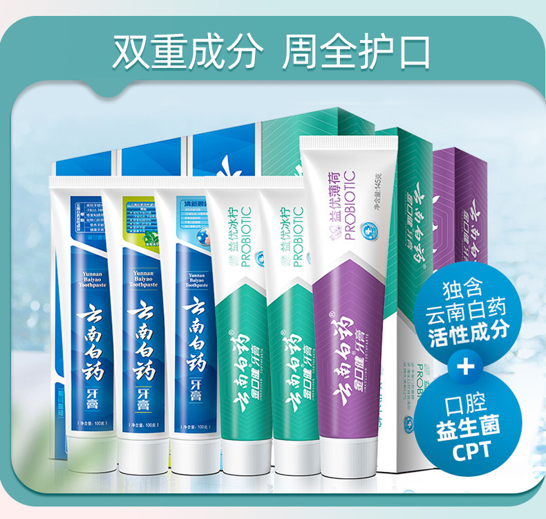 【官方正品】云南白药牙膏全家福套装多支组合囤货留兰薄荷清新晨露益生菌缓解口腔问题护龈健齿清新口气