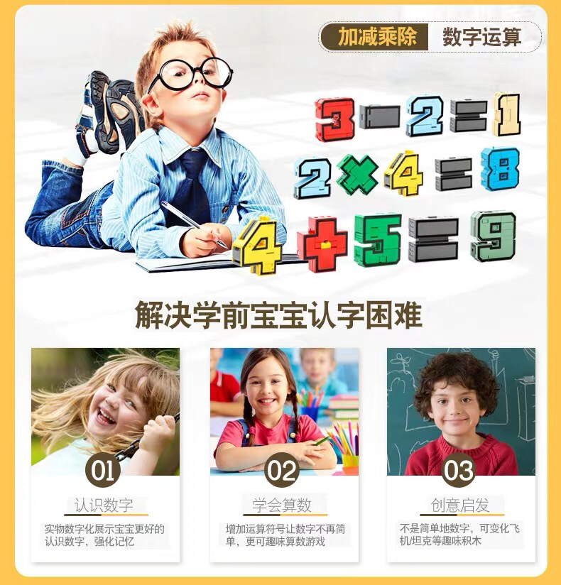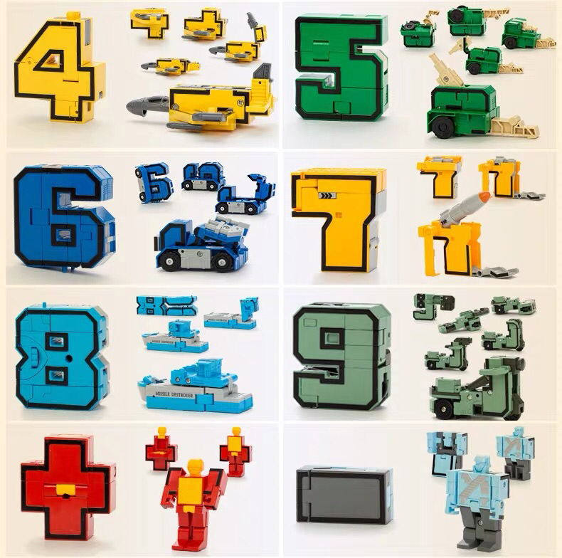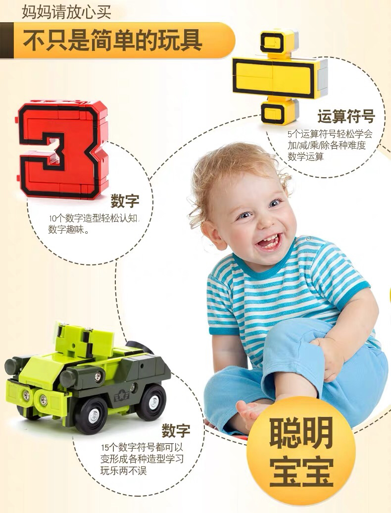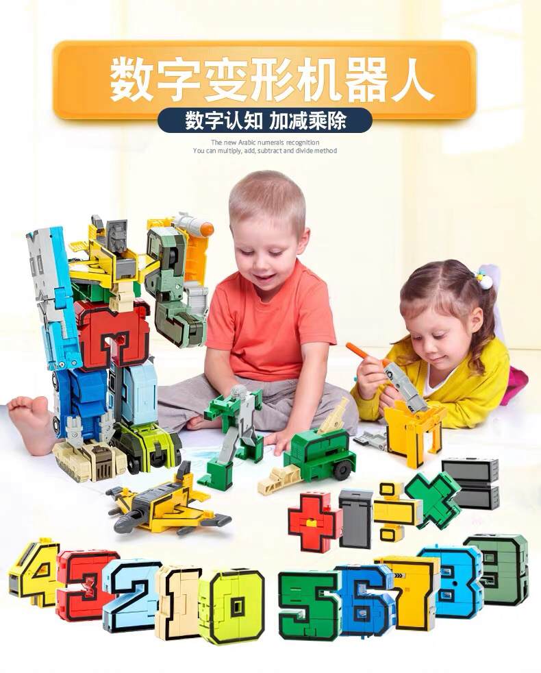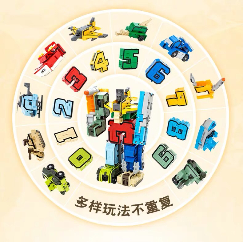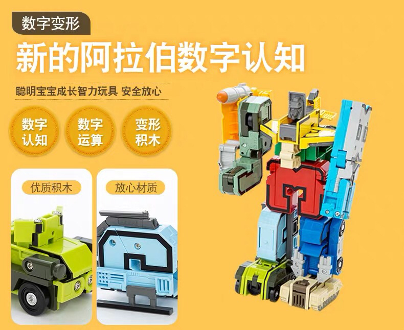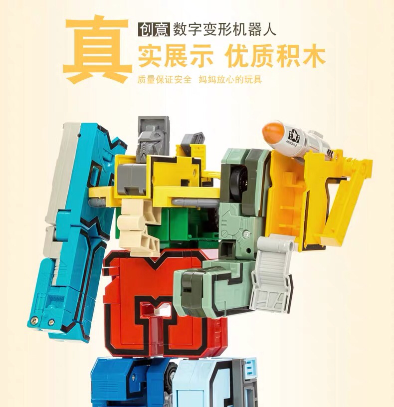 【智力启发,数字变形】新乐新积木玩具金刚合体益智机器人男孩全套装儿童0-9字母10战队汽车恐龙