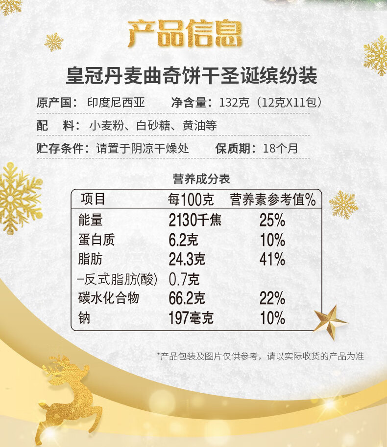 皇冠丹麦曲奇缤纷装132g/盒(红绿蓝三色随机发货)