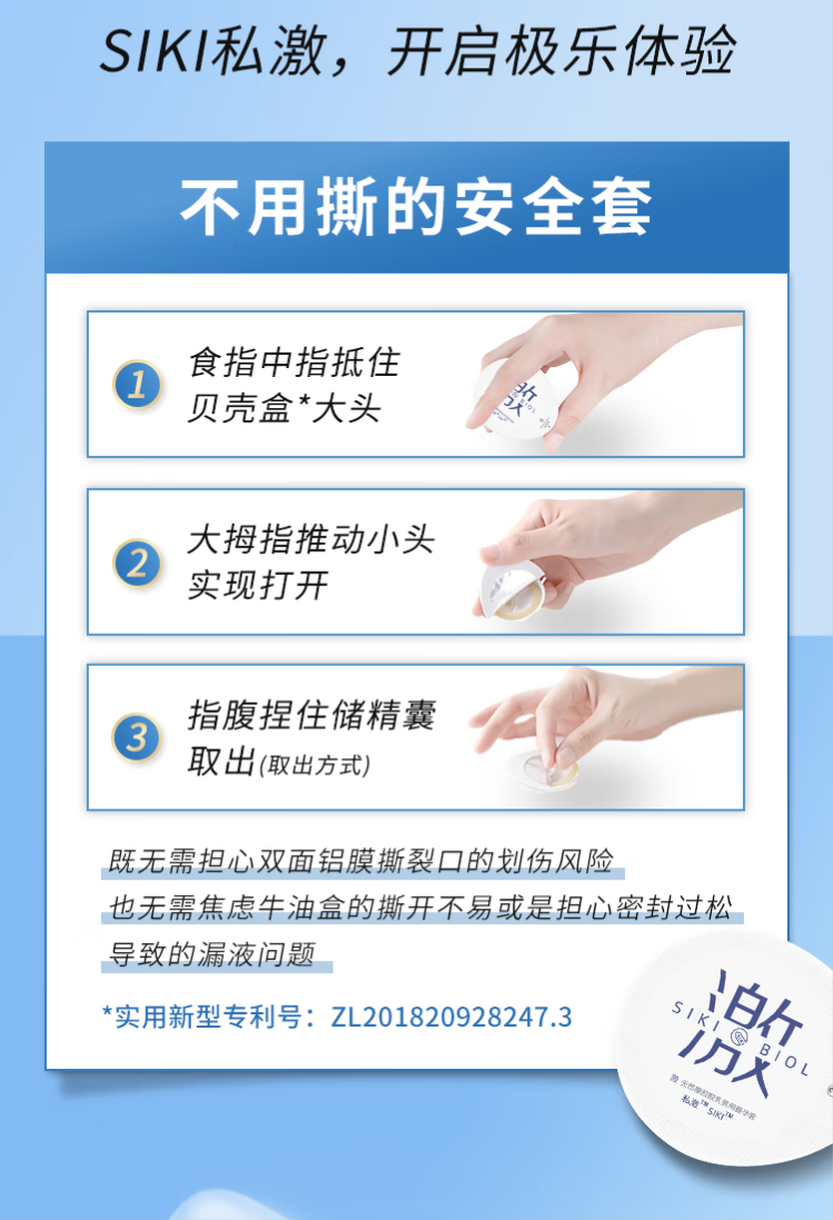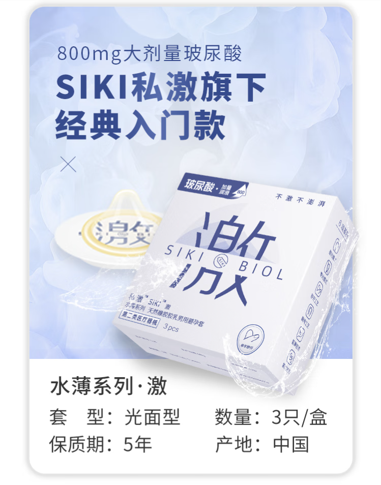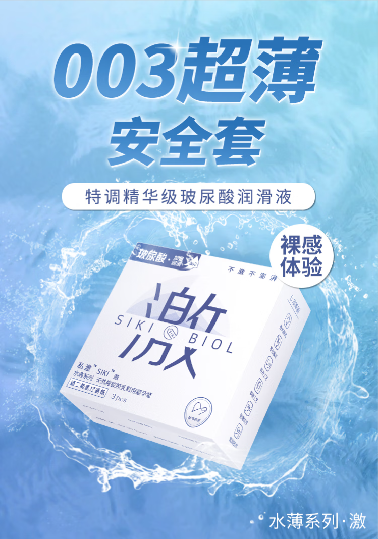 SIKI私激避孕套超薄顺滑TT男用玻尿酸安全套免洗无硅油003情趣3只装