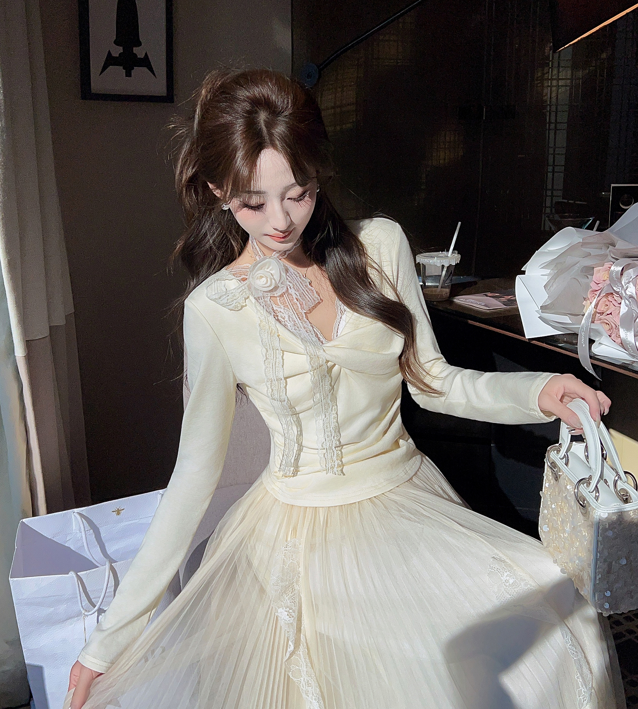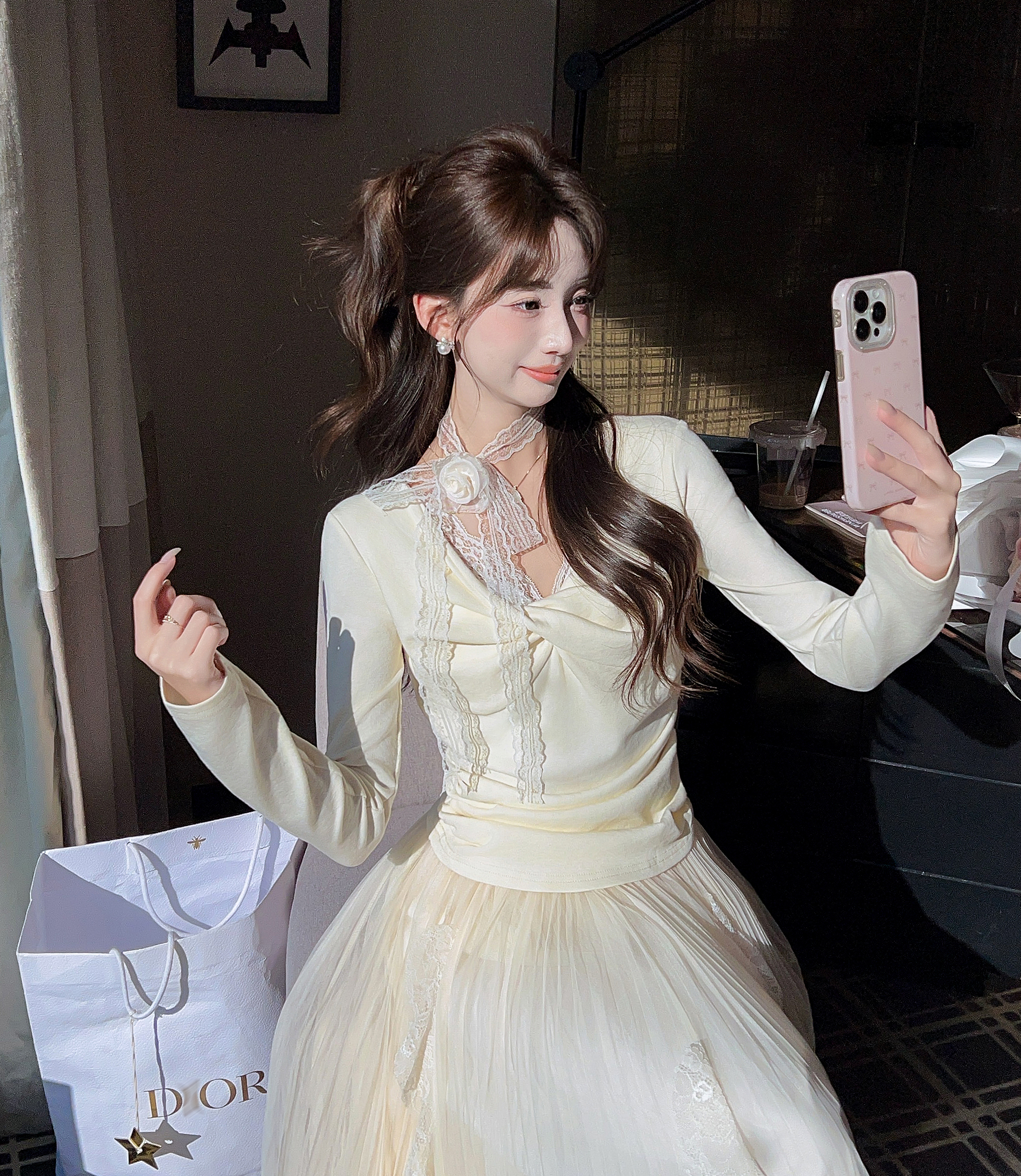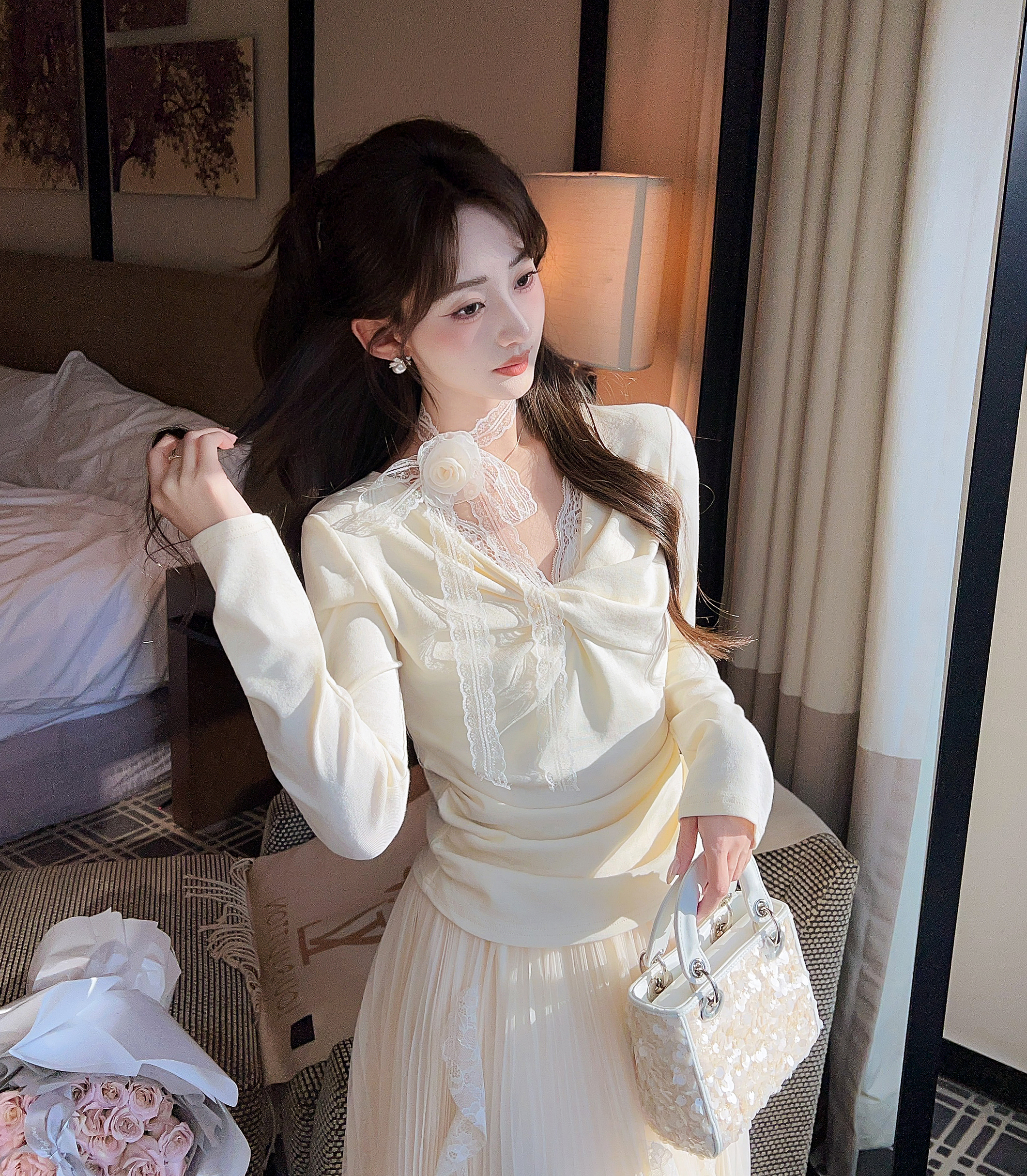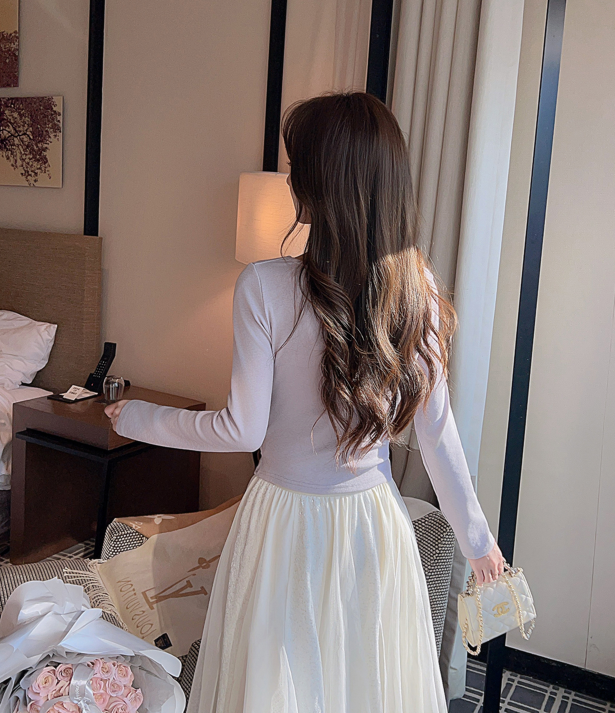 张心子【扭结T】纯欲风设计感上衣法式长袖一字肩 U2602003