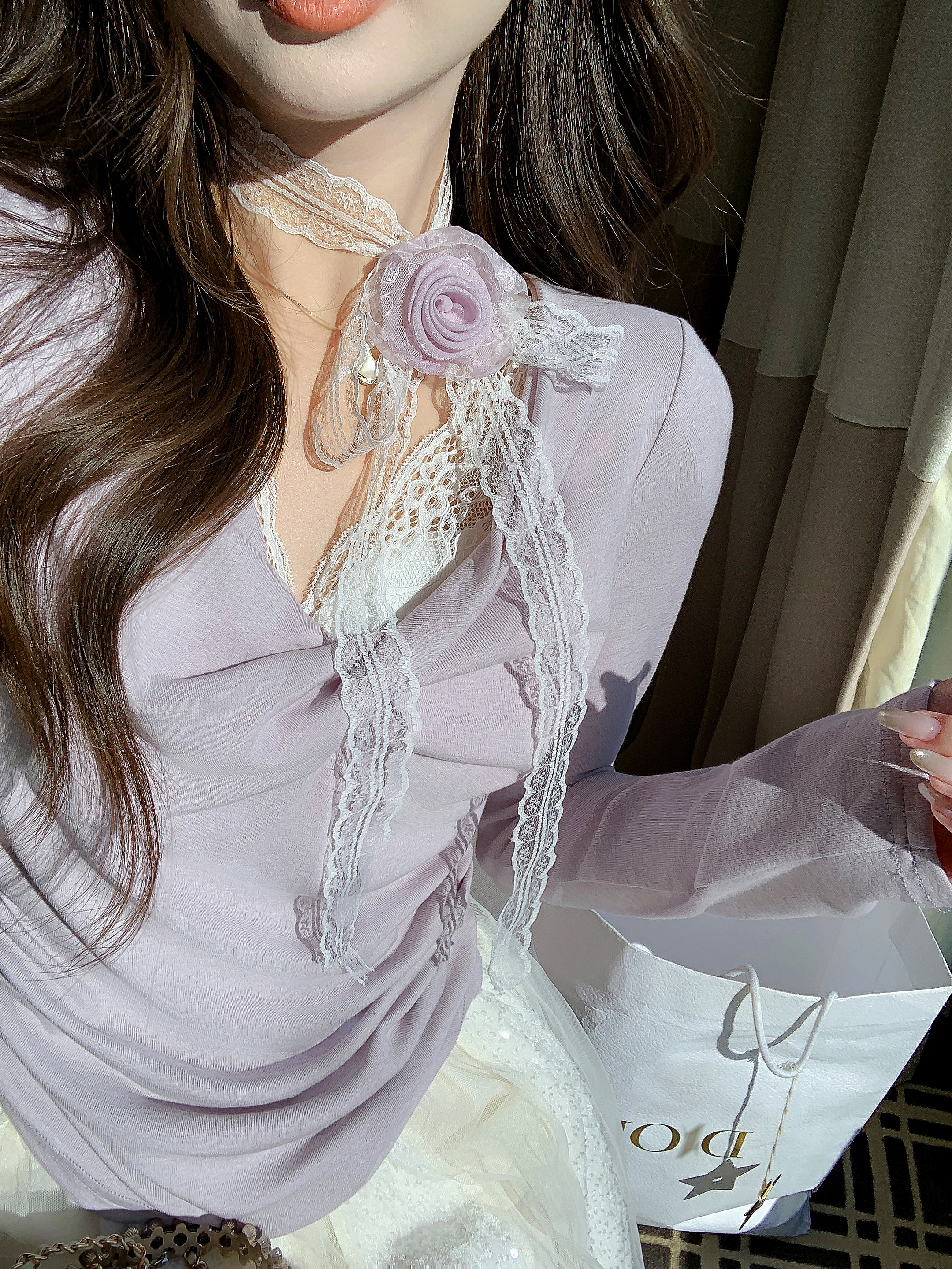 张心子【简易舒适区】圆领立体花小众设计T恤上衣 U2603003