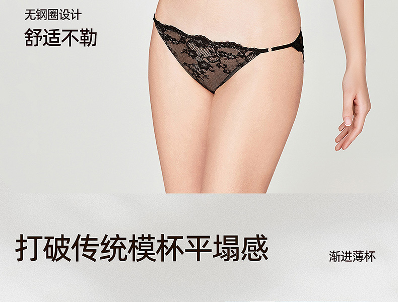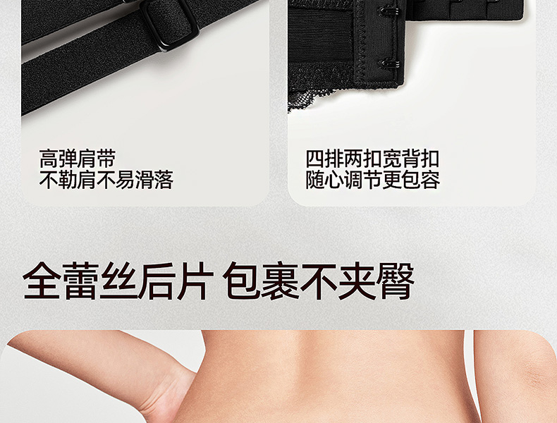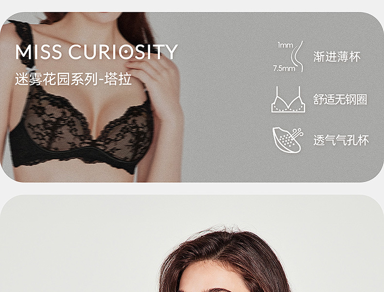 好奇蜜斯蕾丝法式内衣女无钢圈文胸罩套装黑大胸显小性感防下垂薄 Tara 塔拉