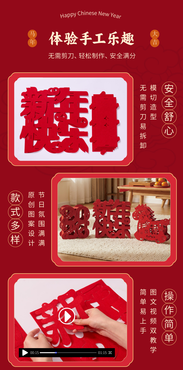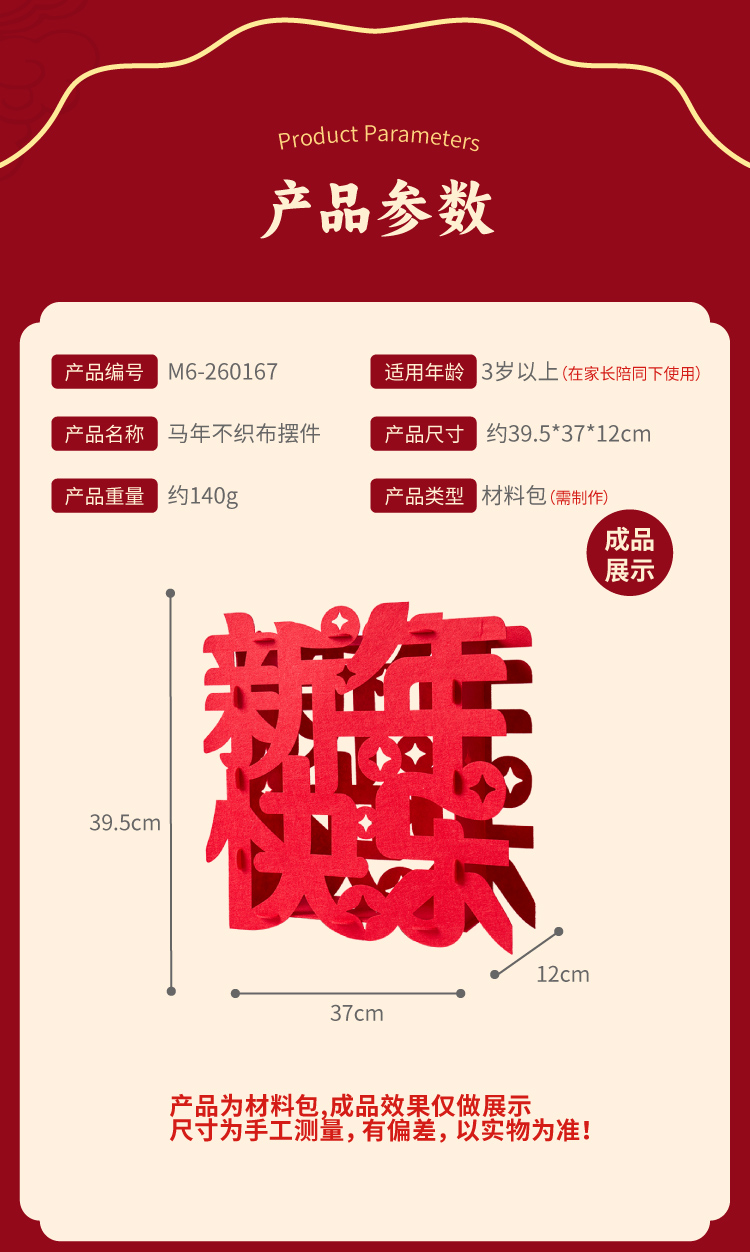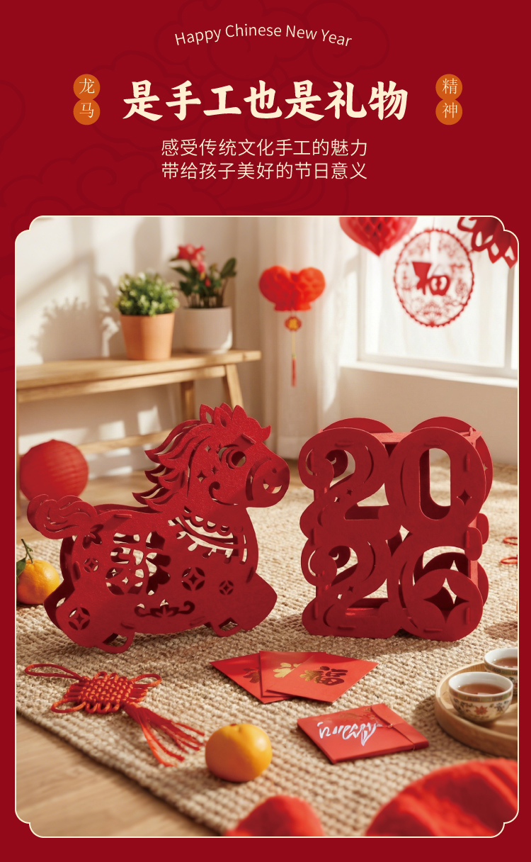 新年春节元宵马年不织布摆件手工diy儿童制作材料幼儿园环创装饰