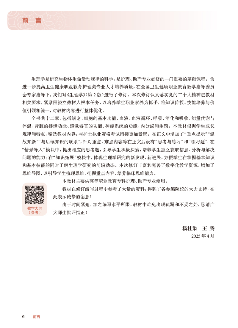 生理学 第3版 高职护理配增值 杨桂染 王腾 十四五规划教材全国高等职业教育专科教材 供护理助产专业9787117373388人民卫生出版社