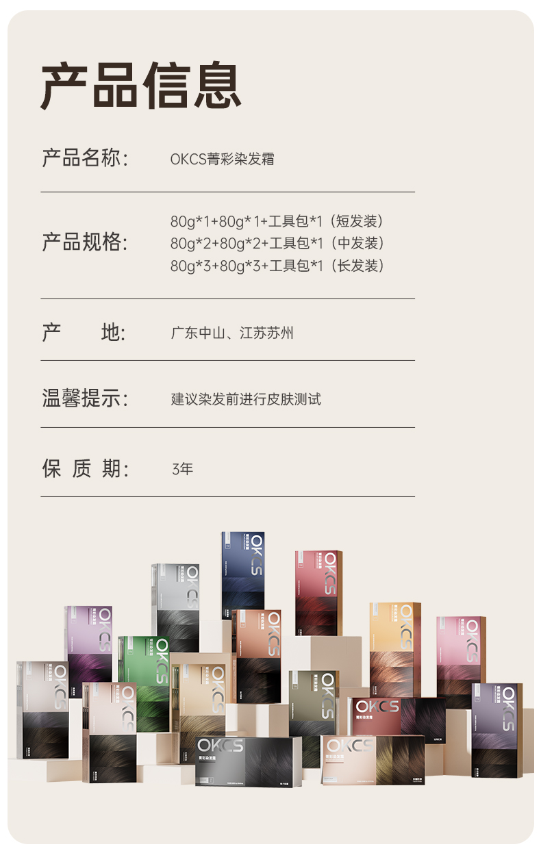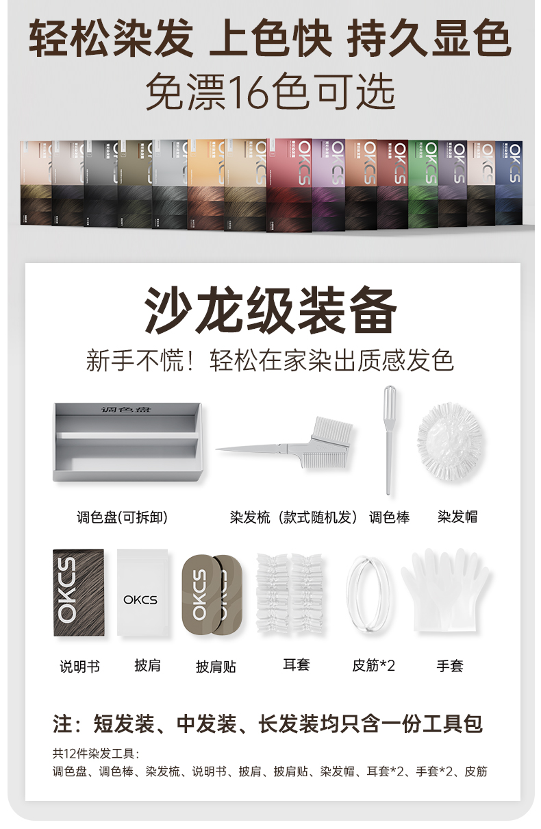 OKCS染发膏彩染多色染护合一持色3个月