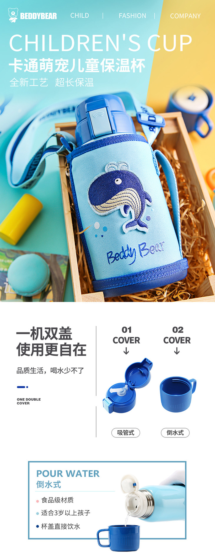【一般贸易】杯具熊复古浮雕儿童保温杯 浮雕鲸鱼款 600ml