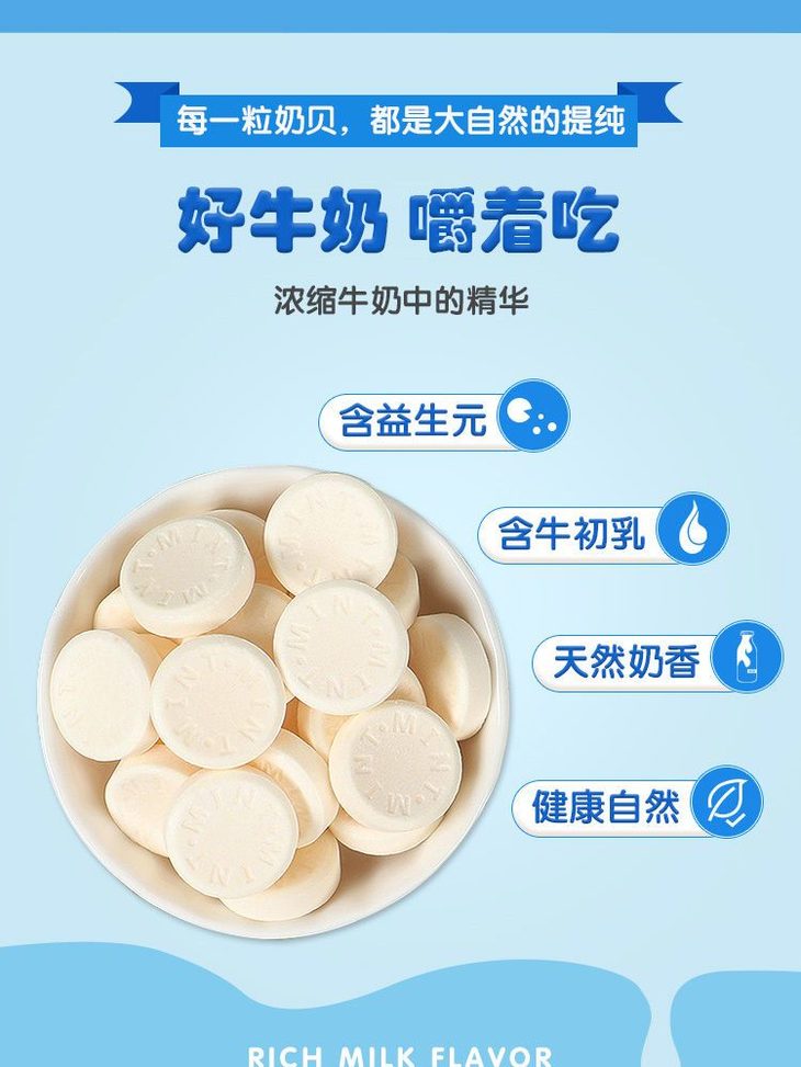 【益生元奶贝!新西兰进口奶源】甄选品质原料制作,甜而不腻好吃不粘牙,干吃奶片奶贝,糖果休闲小零食牛奶片