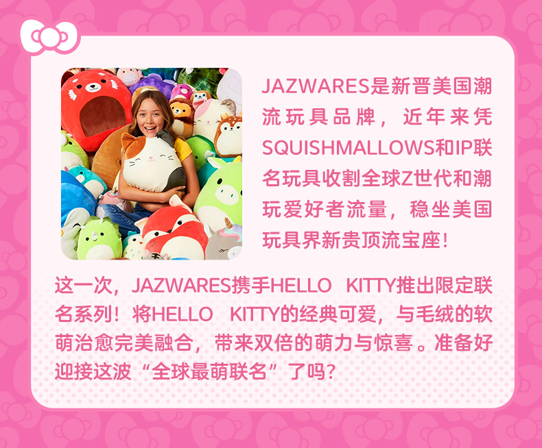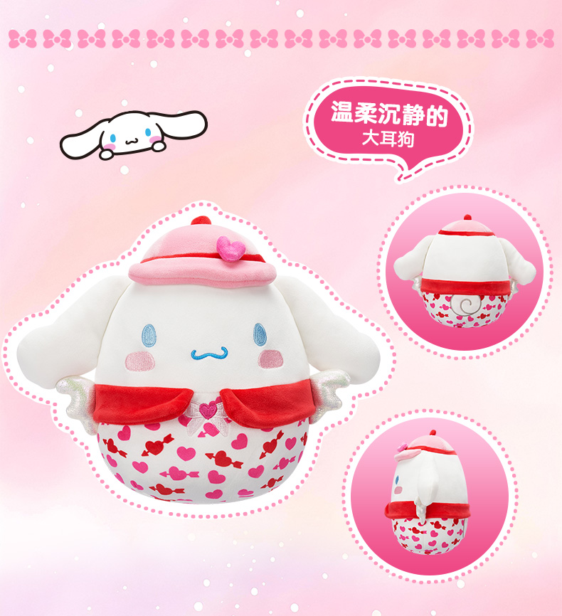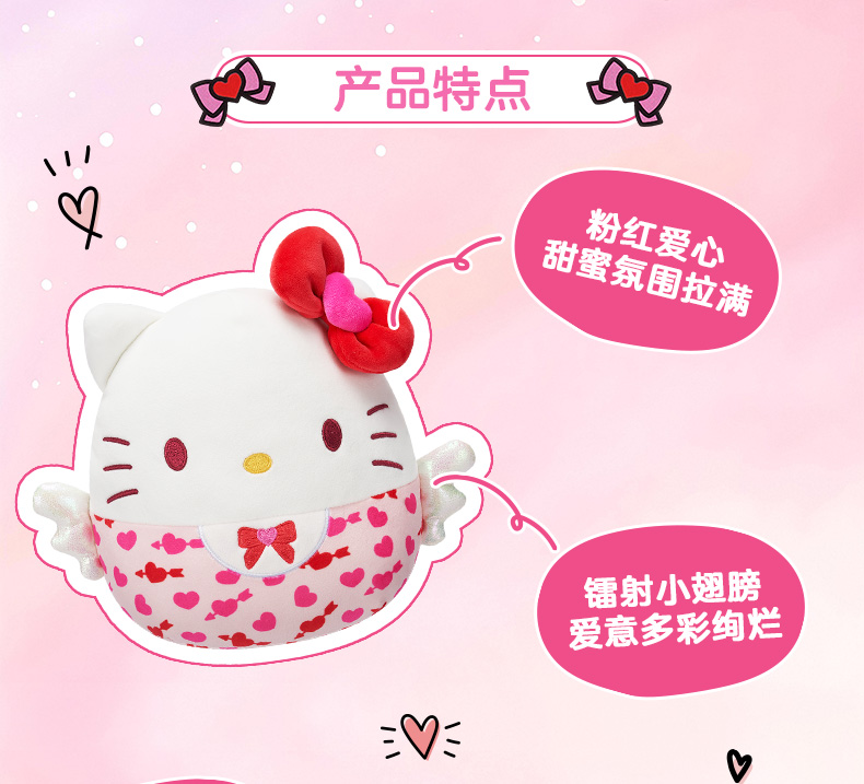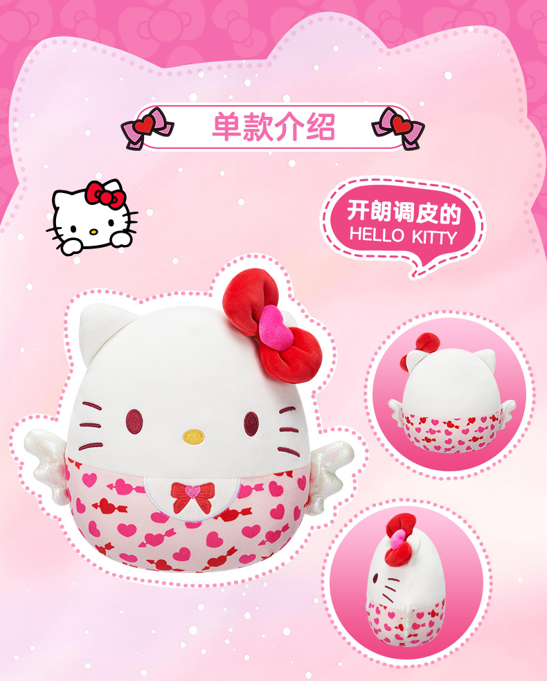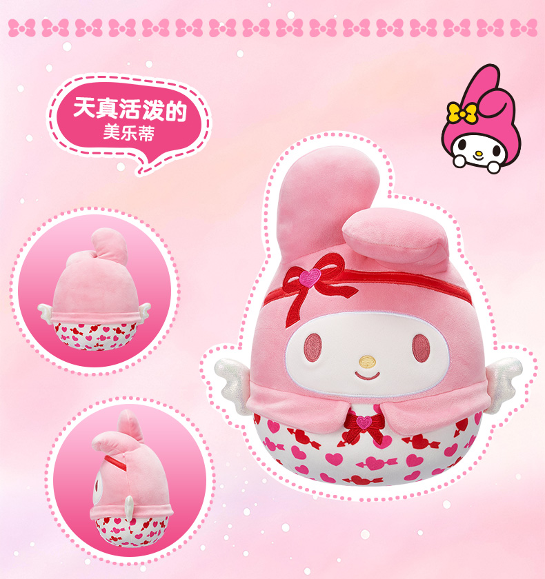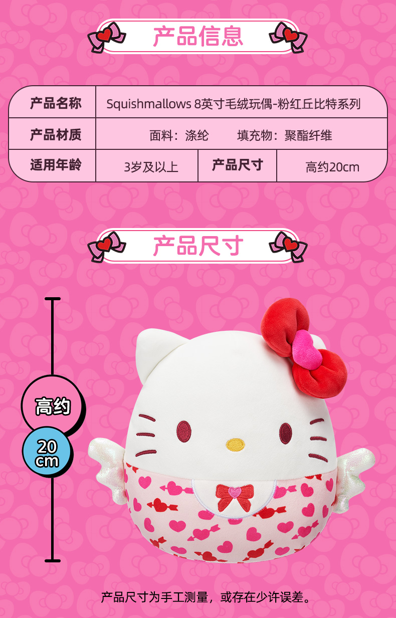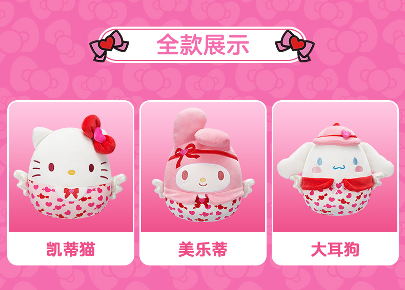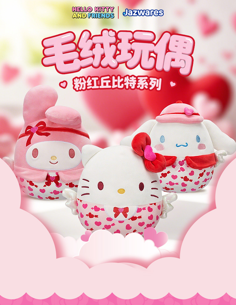 Jazwares 8英寸毛绒玩偶粉红丘比特系列凯蒂猫美乐蒂
