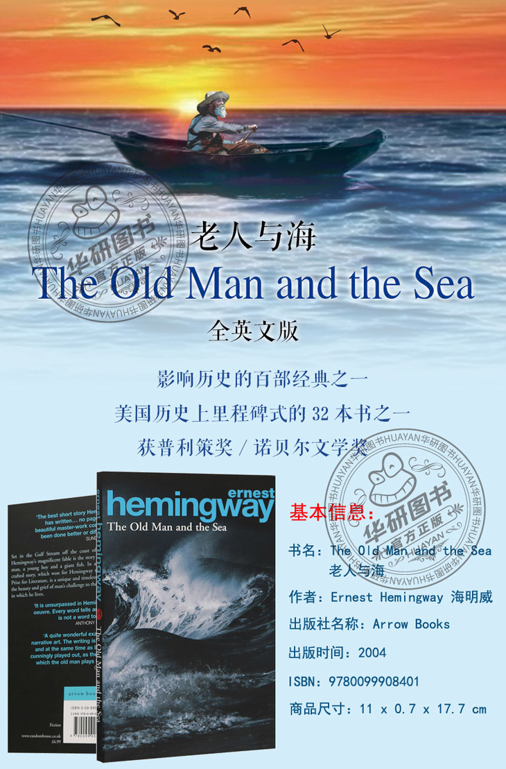 华研原版 老人与海 英文原版小说 The Old Man and the Sea 海明威原著 Hemingway经典名著可搭追风筝的人The Kite Runner福尔摩斯