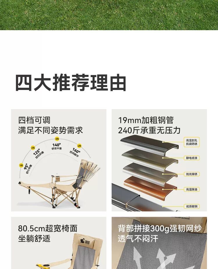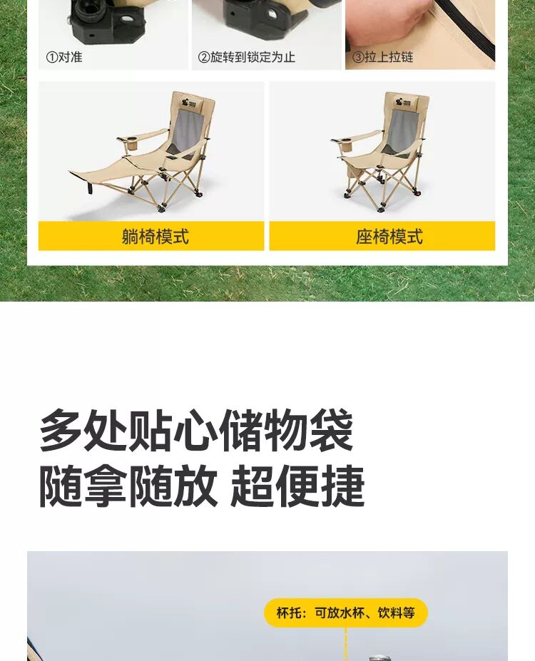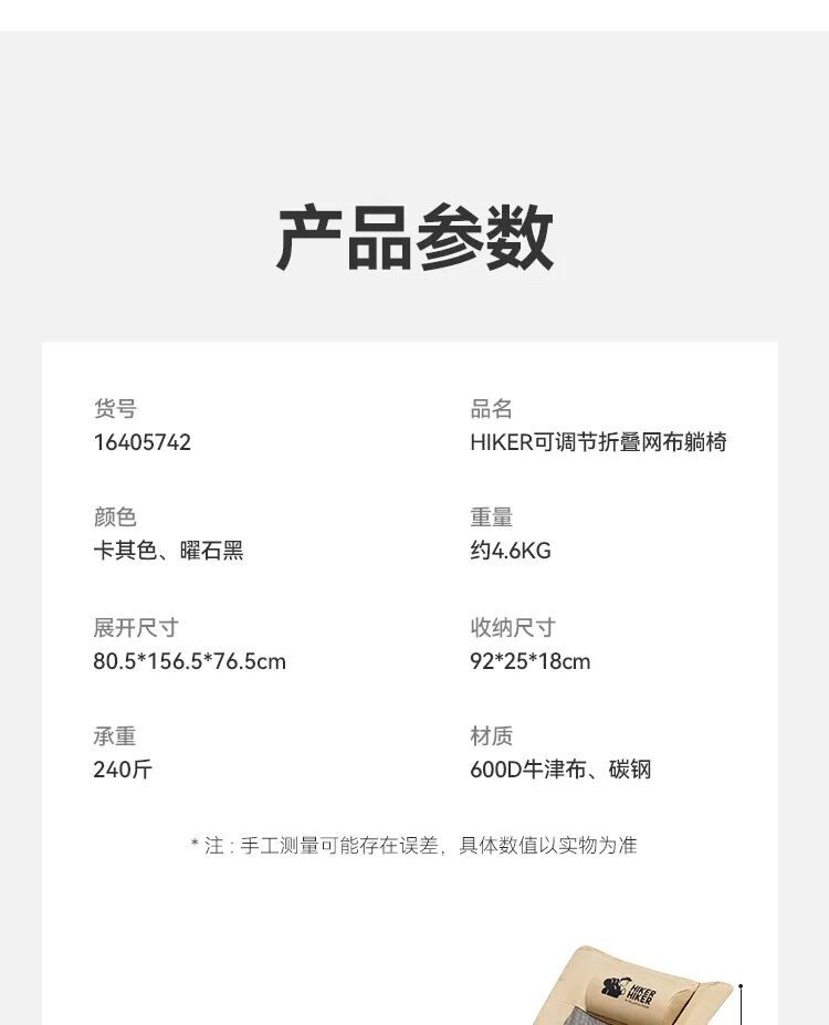 【HIKER】伯希和户外躺椅露营午休折叠月亮椅便携式沙滩懒人椅子
