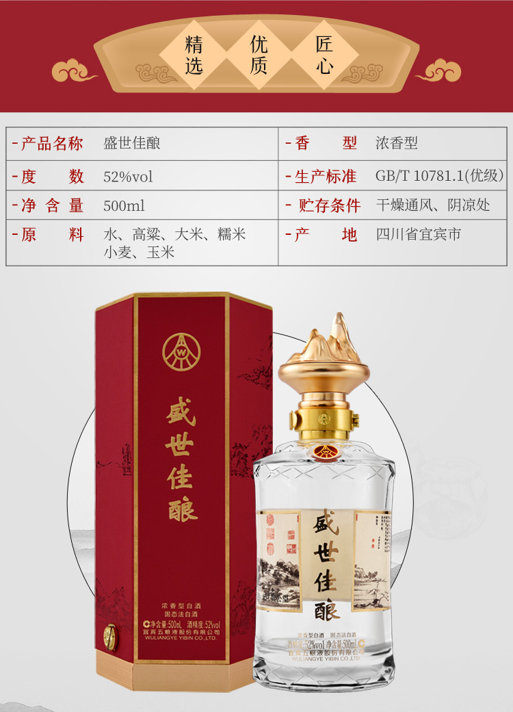 五粮液股份有限公司盛世佳酿 卷藏山河浓香型白酒 52度 整箱装500mL 6瓶