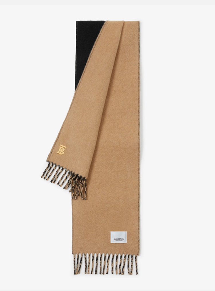 BURBERRY 巴宝莉 女士双面两用专属标识羊绒围巾 黑色 8060094 A7129